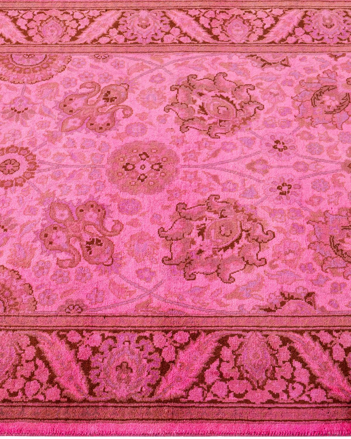 Contemporary Hand-Knotted Pink Runner 2' 7" x 13' 10"
