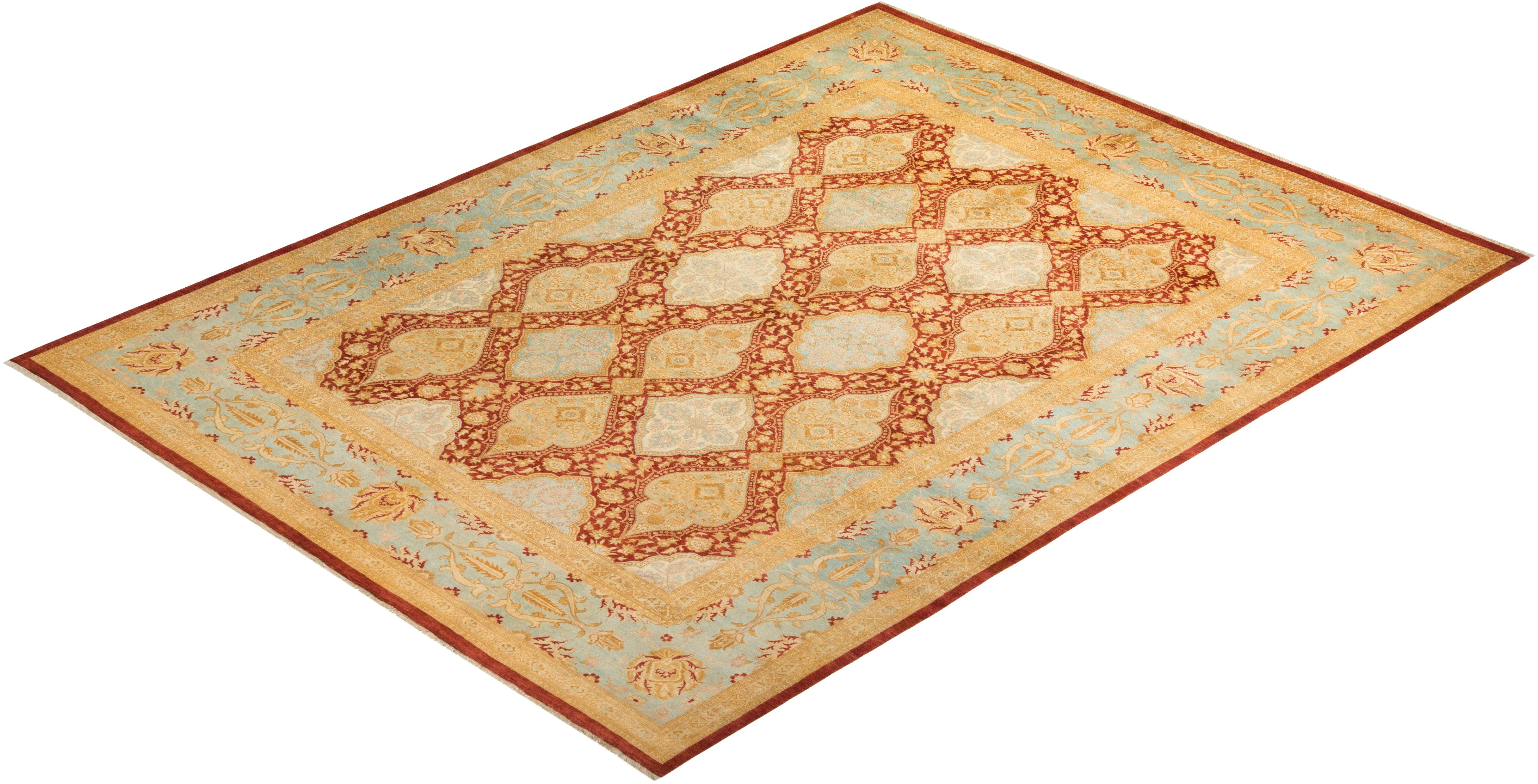 Contemporary Hand Knotted Eclectic Floral Red Area Rug 10' 1" x 13' 3"