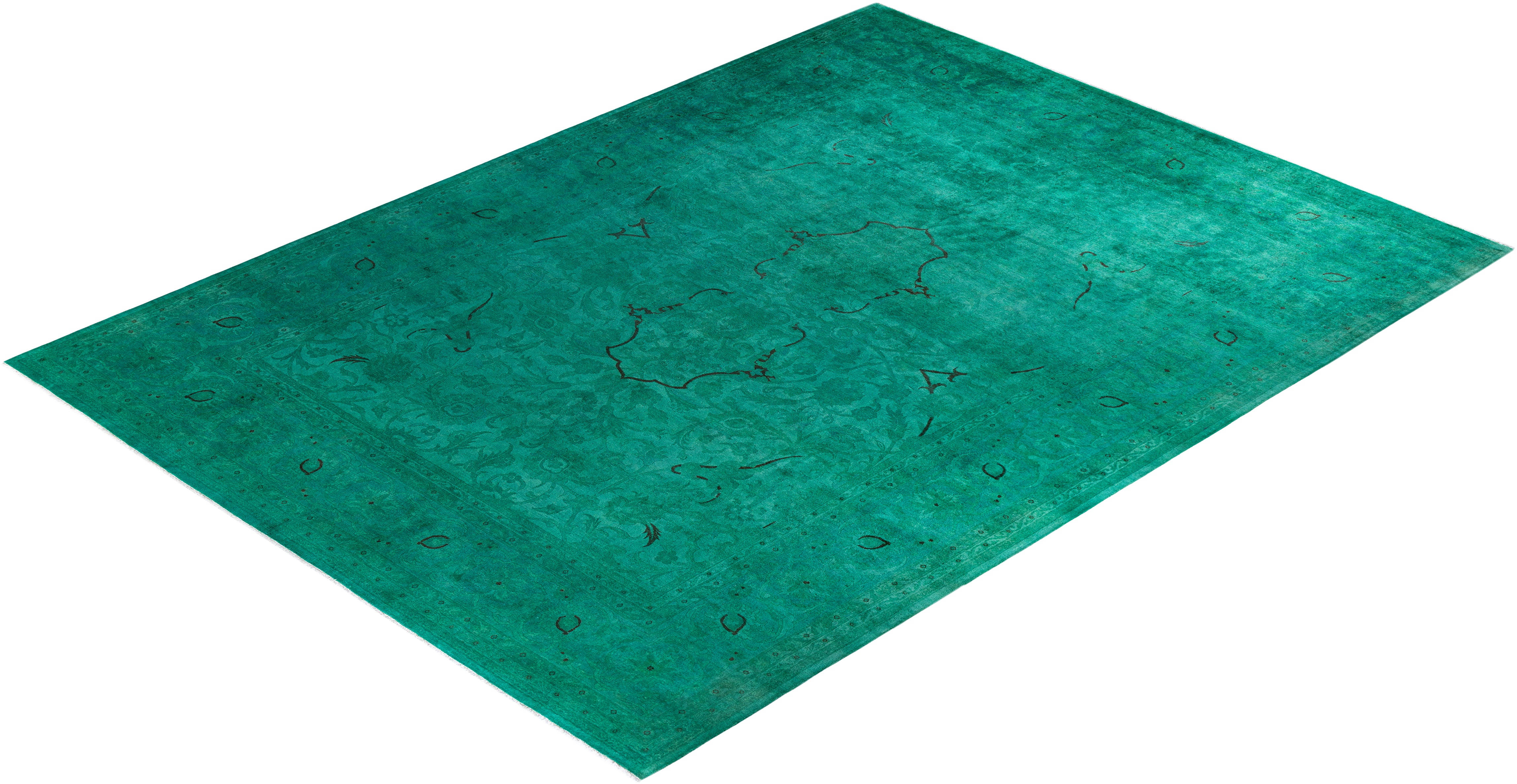 Contemporary Hand-Knotted Overdyed Green Area Rug 10' 1" x 13' 7"
