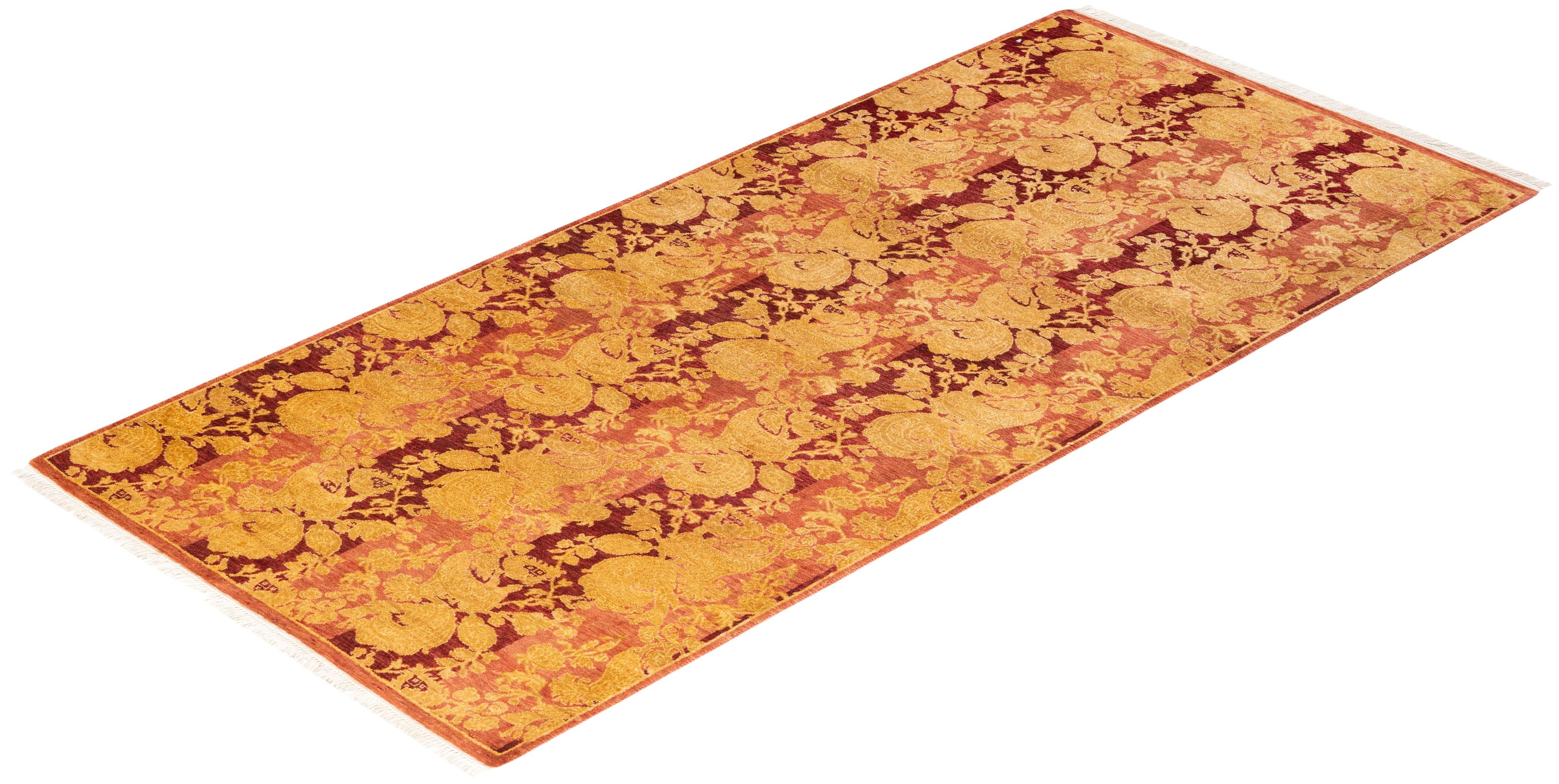 Traditional Hand Knotted Mogul Abstract Pink Runner 2' 8" x 5' 9"