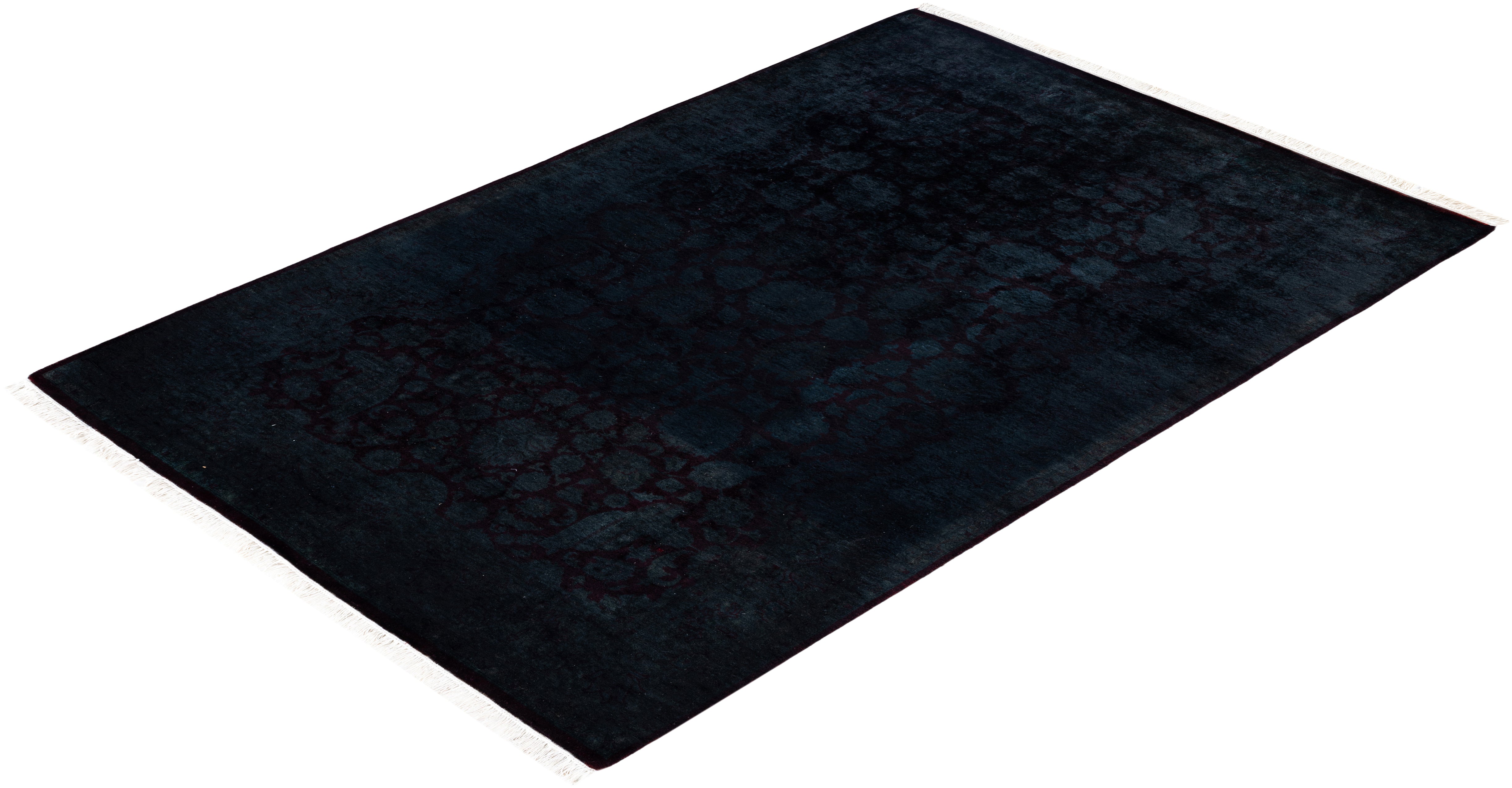 Contemporary Overdyed Wool Hand Knotted Black Area Rug 4' 2" x 6' 3"