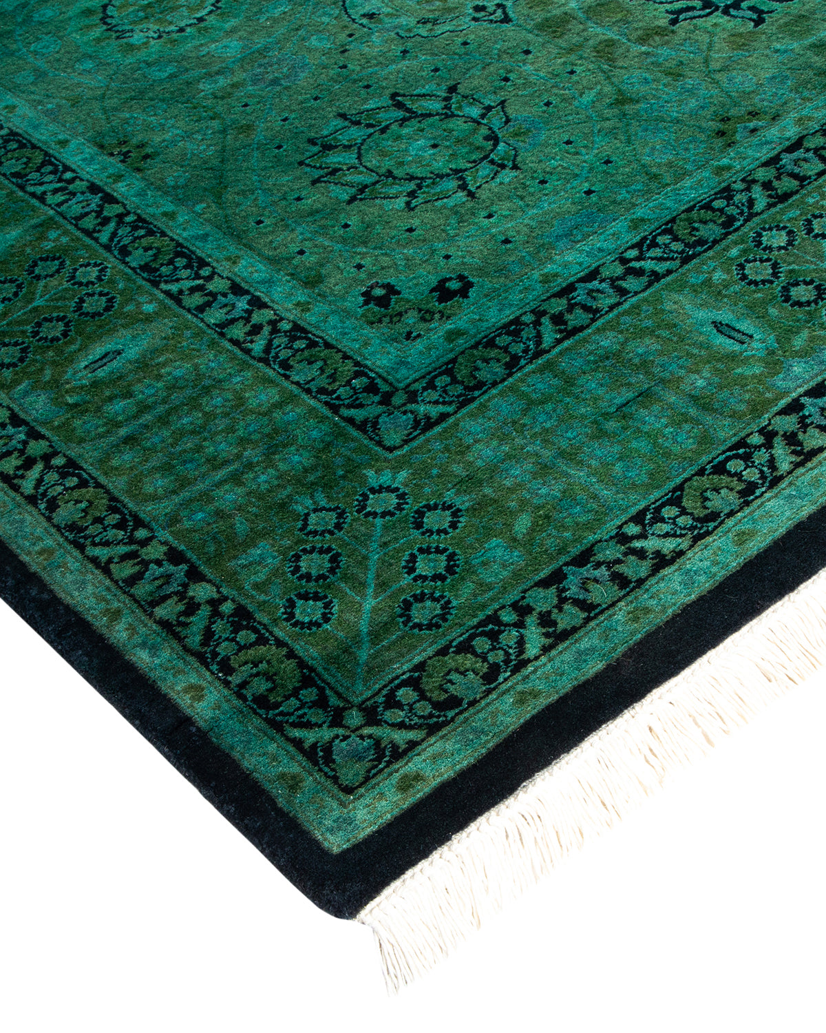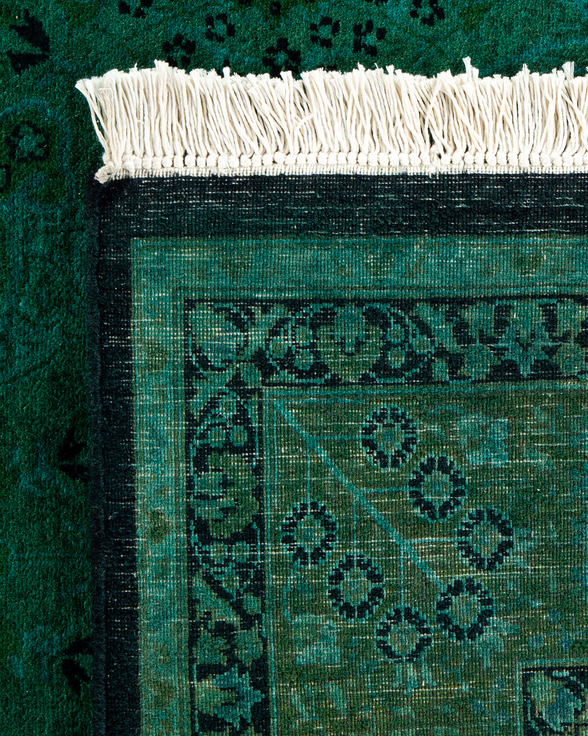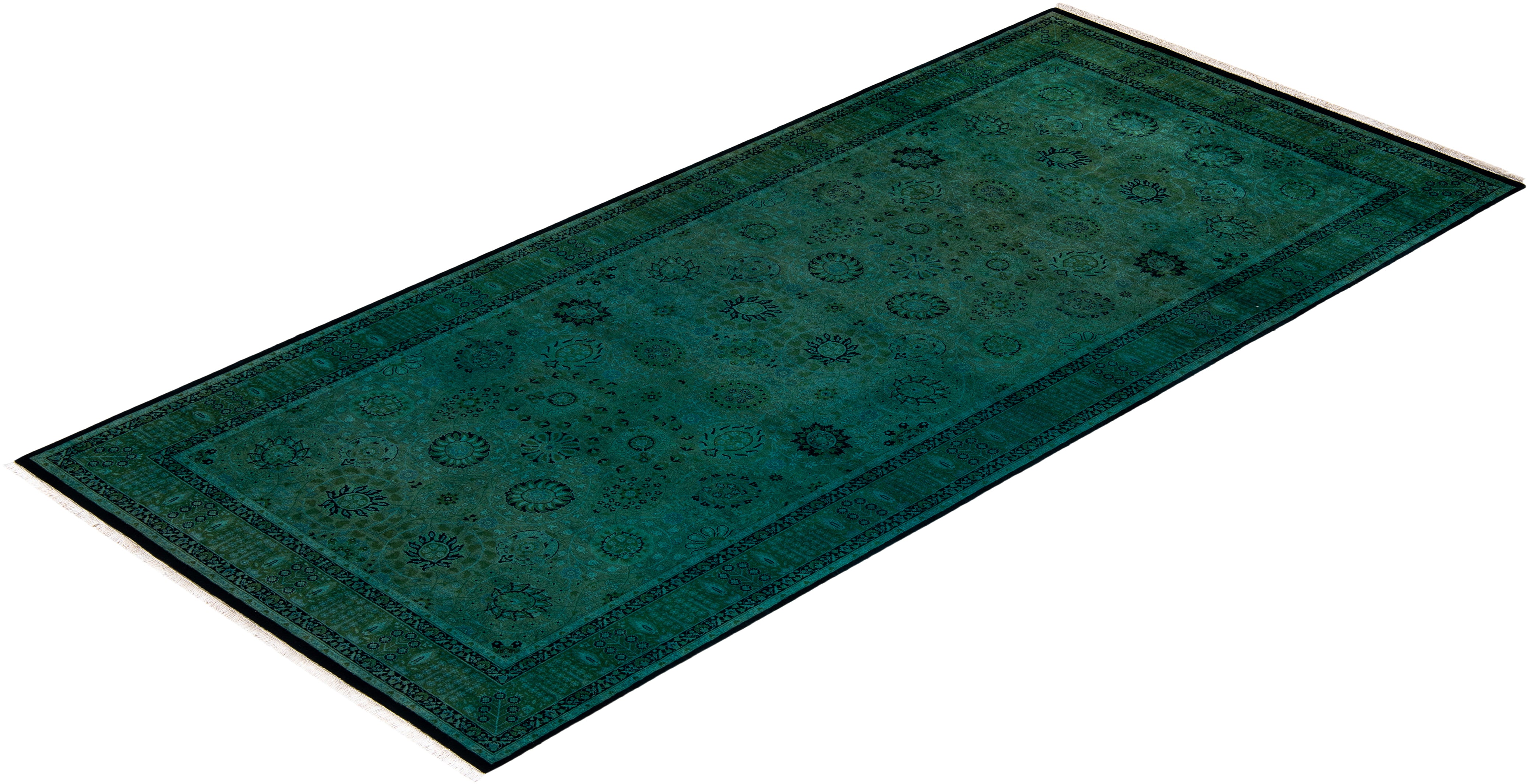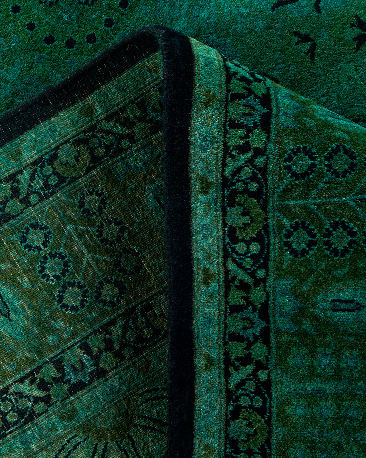 Contemporary Hand-Knotted Overdyed Green Area Rug 5' 2" x 11' 3"