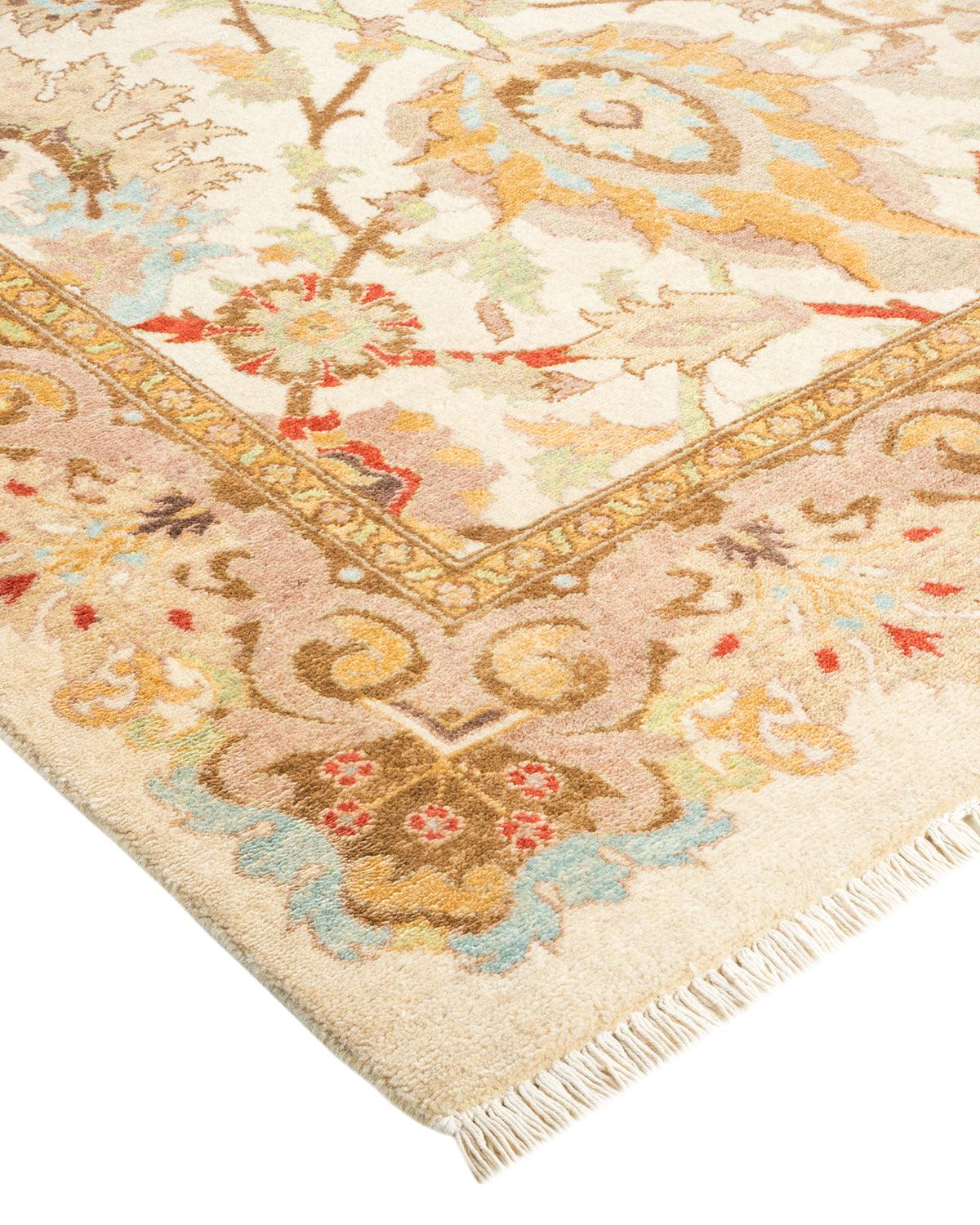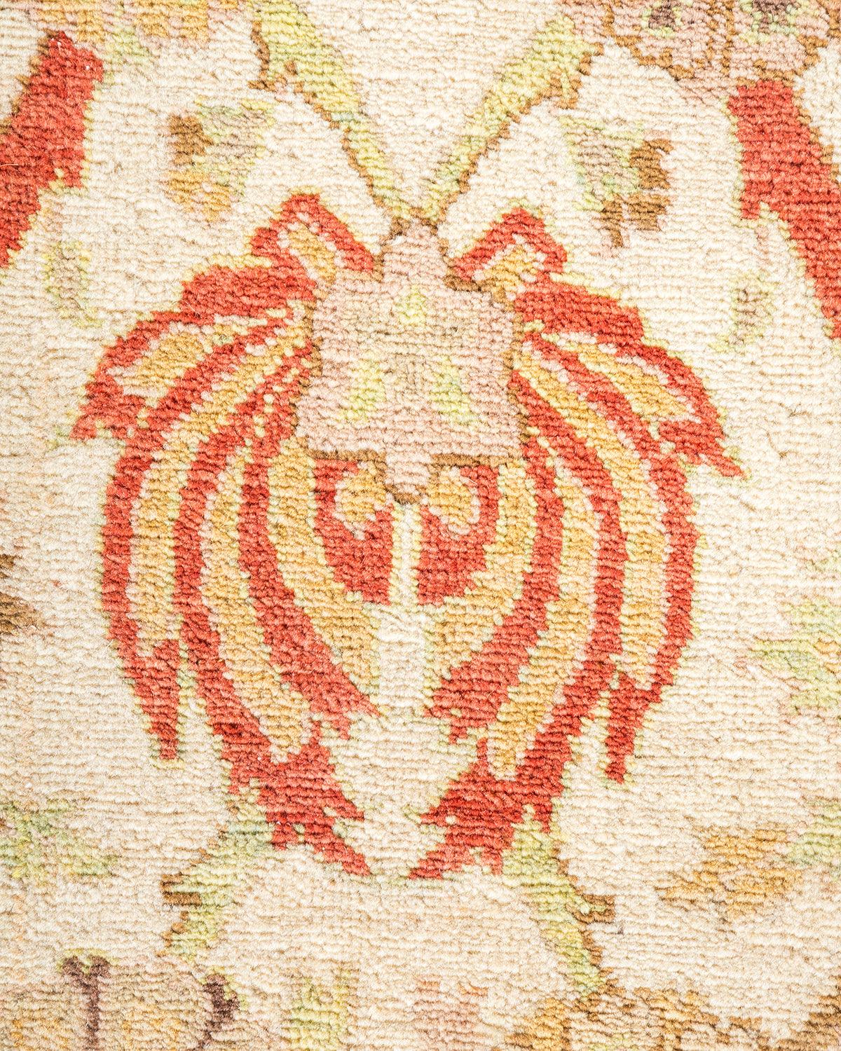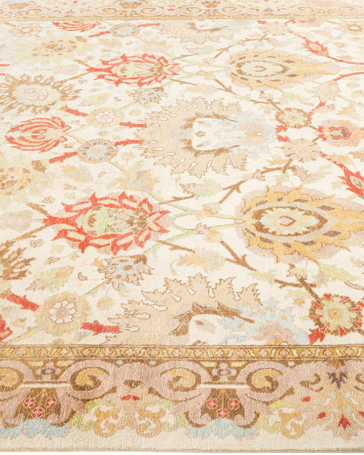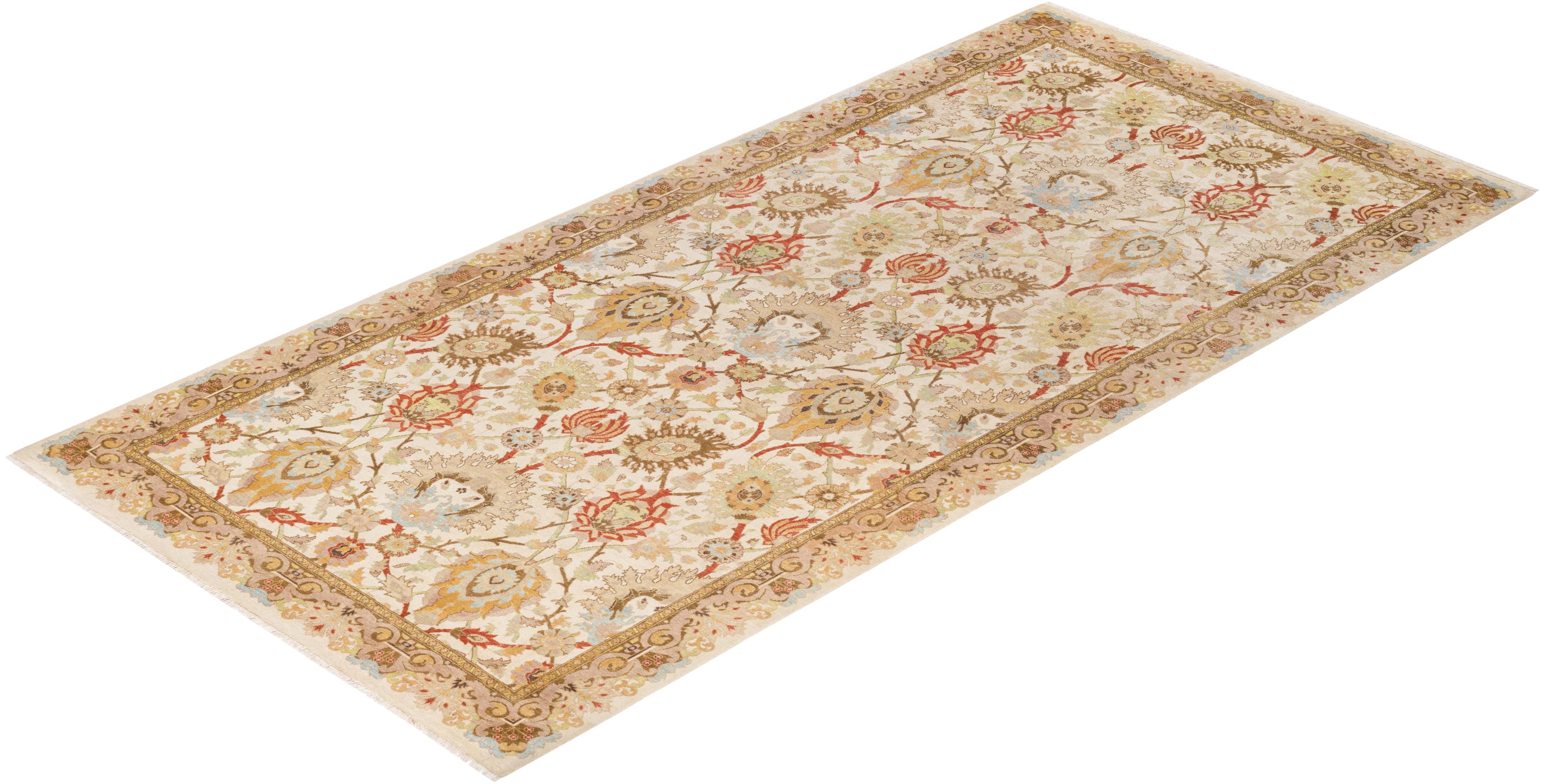 Contemporary Hand Knotted Eclectic Floral Ivory Runner 6' 0" x 12' 7"
