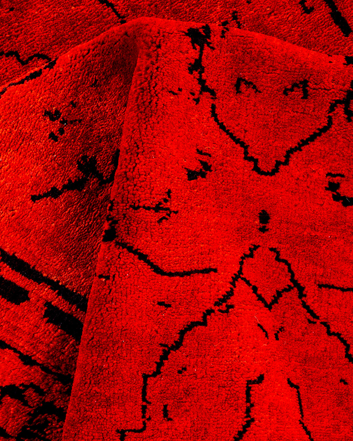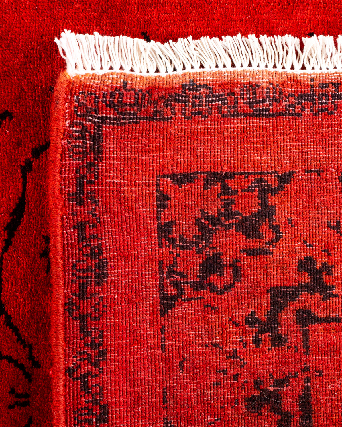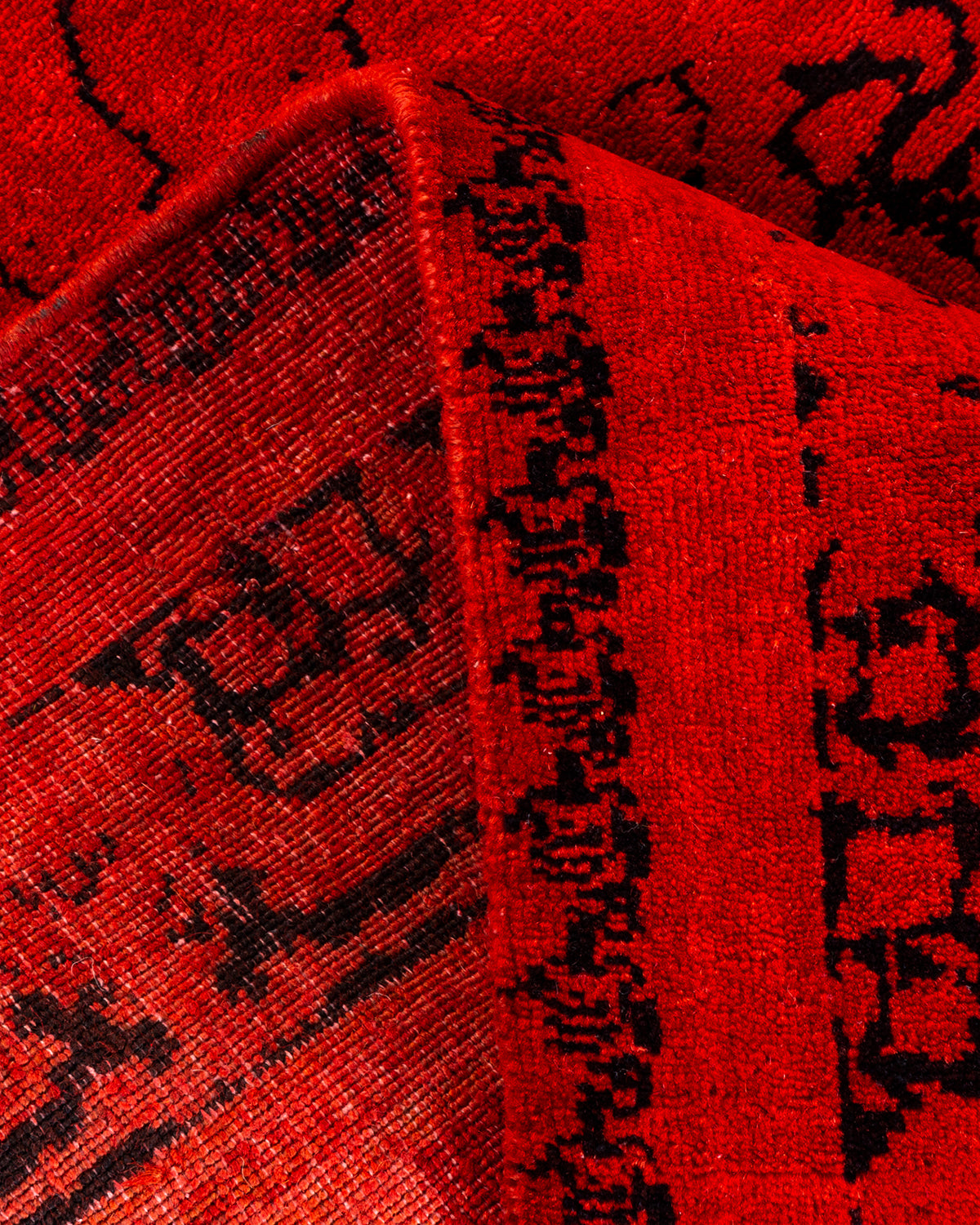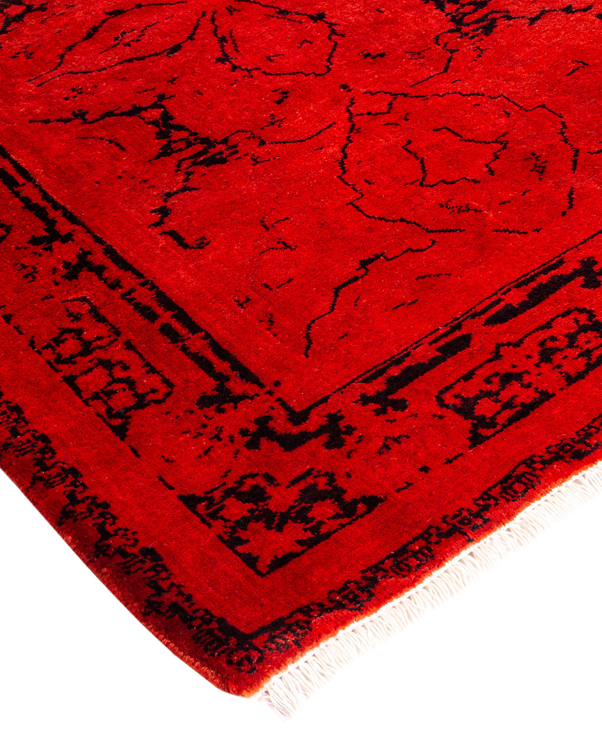 Contemporary Hand-Knotted Overdyed Red Runner 2' 8" x 3' 10"