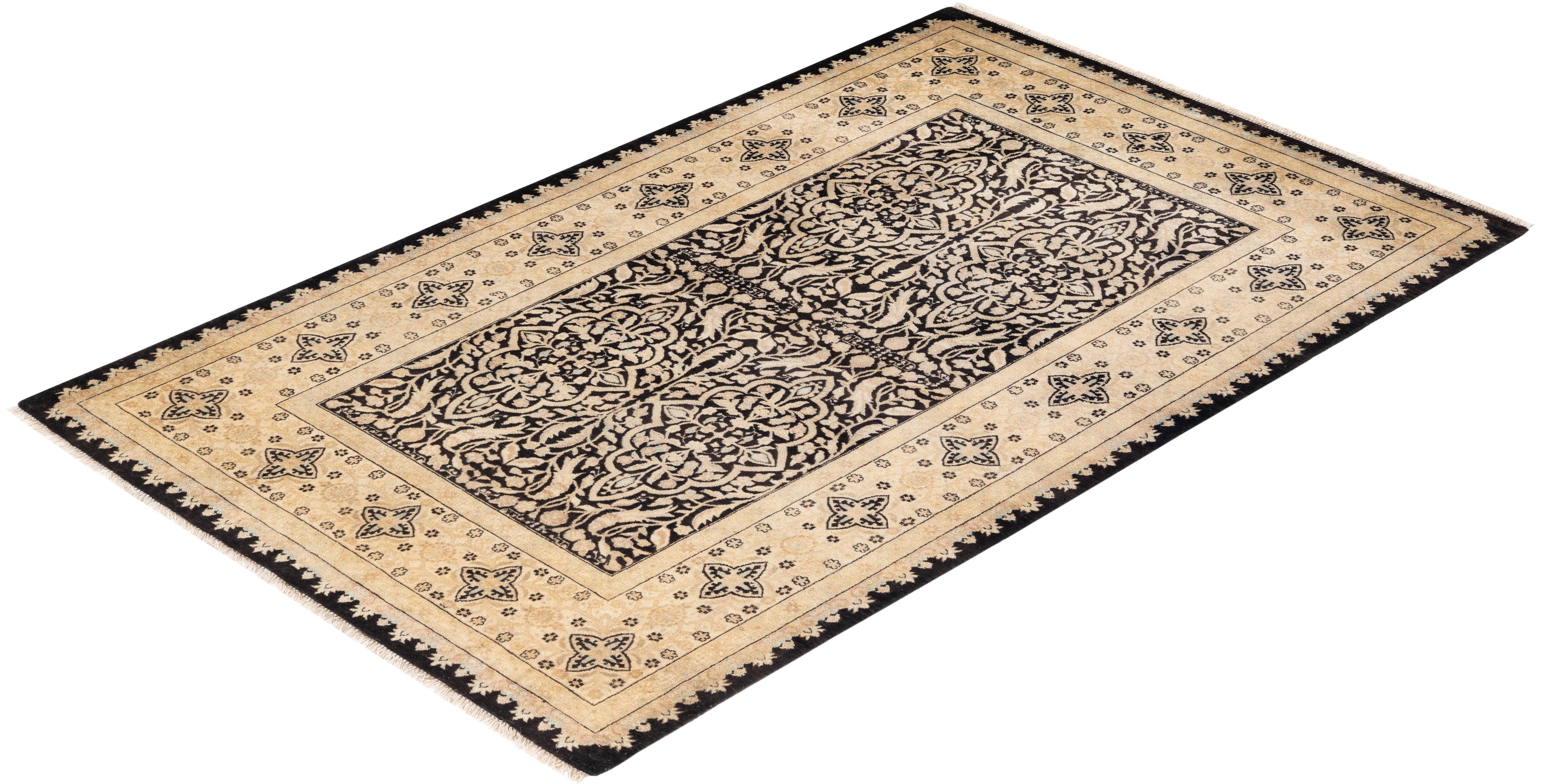 Traditional Hand Knotted Mogul Oriental Black Area Rug 4' 2" x 6' 7"