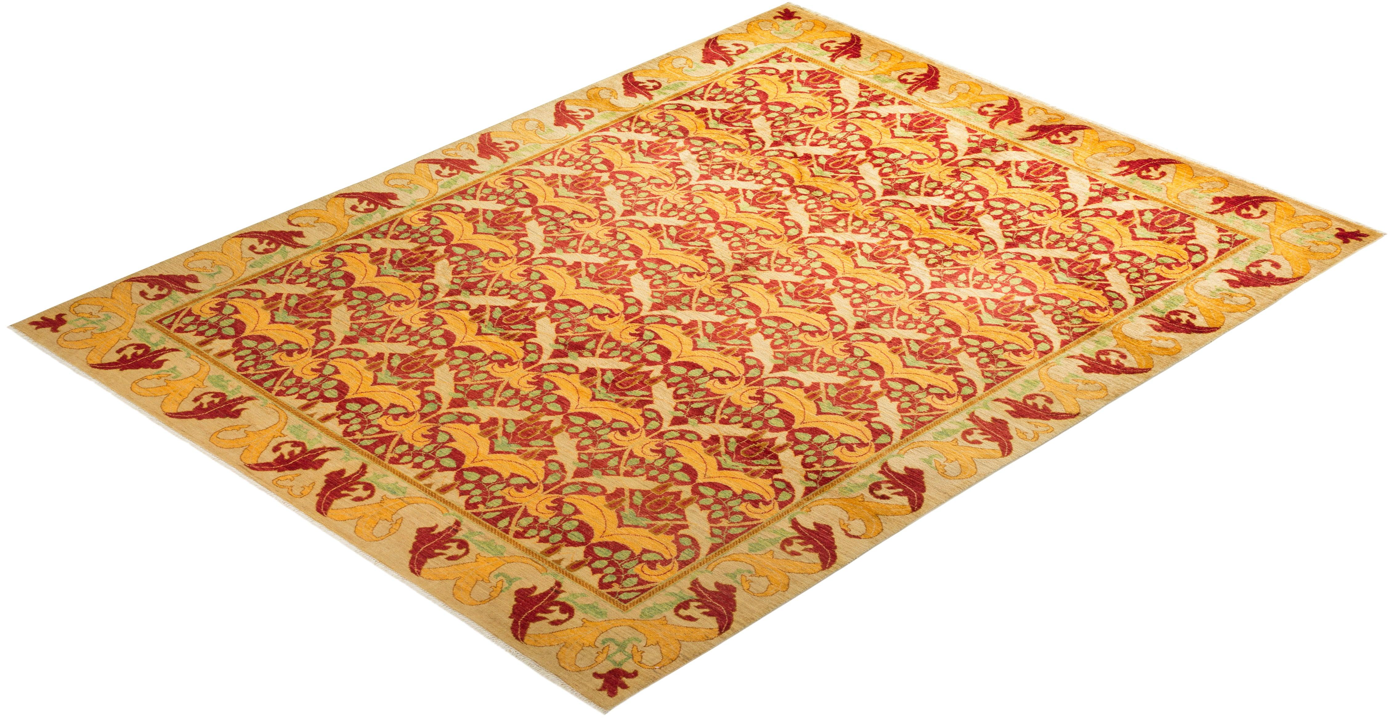 Contemporary Hand Knotted Arts & Crafts Floral Red Area Rug 7' 10" x 10' 2"