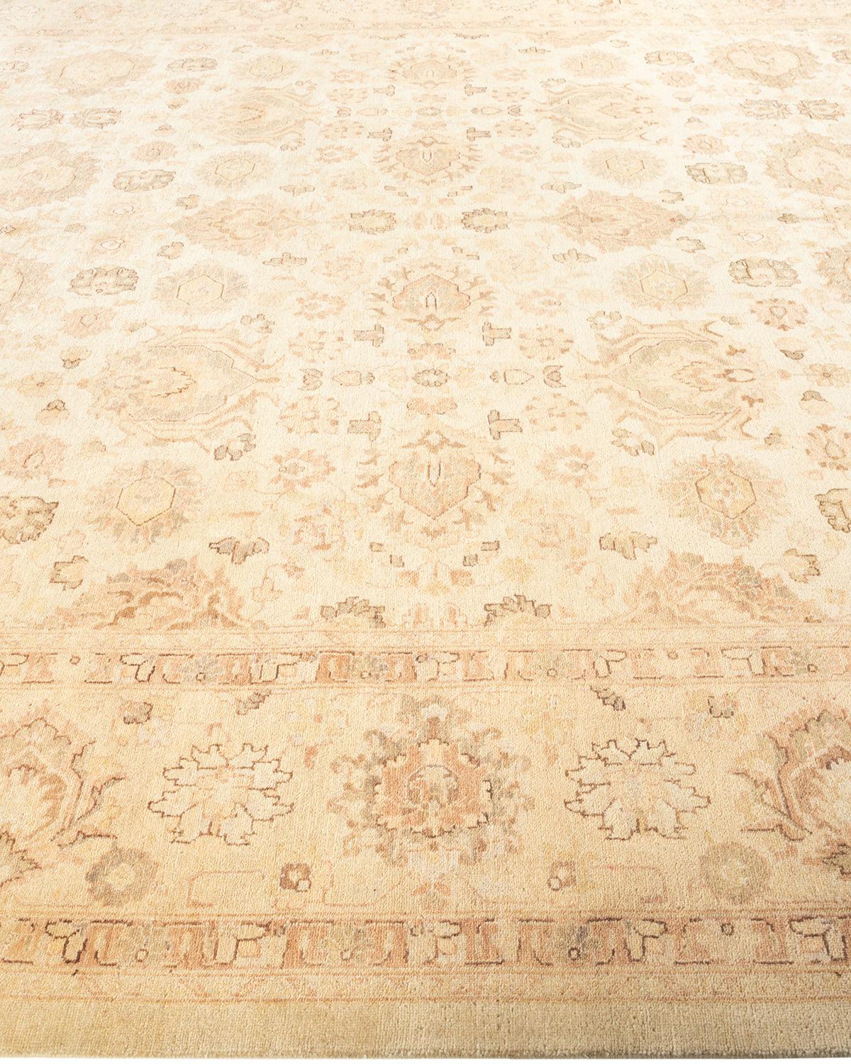 Contemporary Hand Knotted Eclectic Oriental Ivory Area Rug 10' 1" x 13' 10"