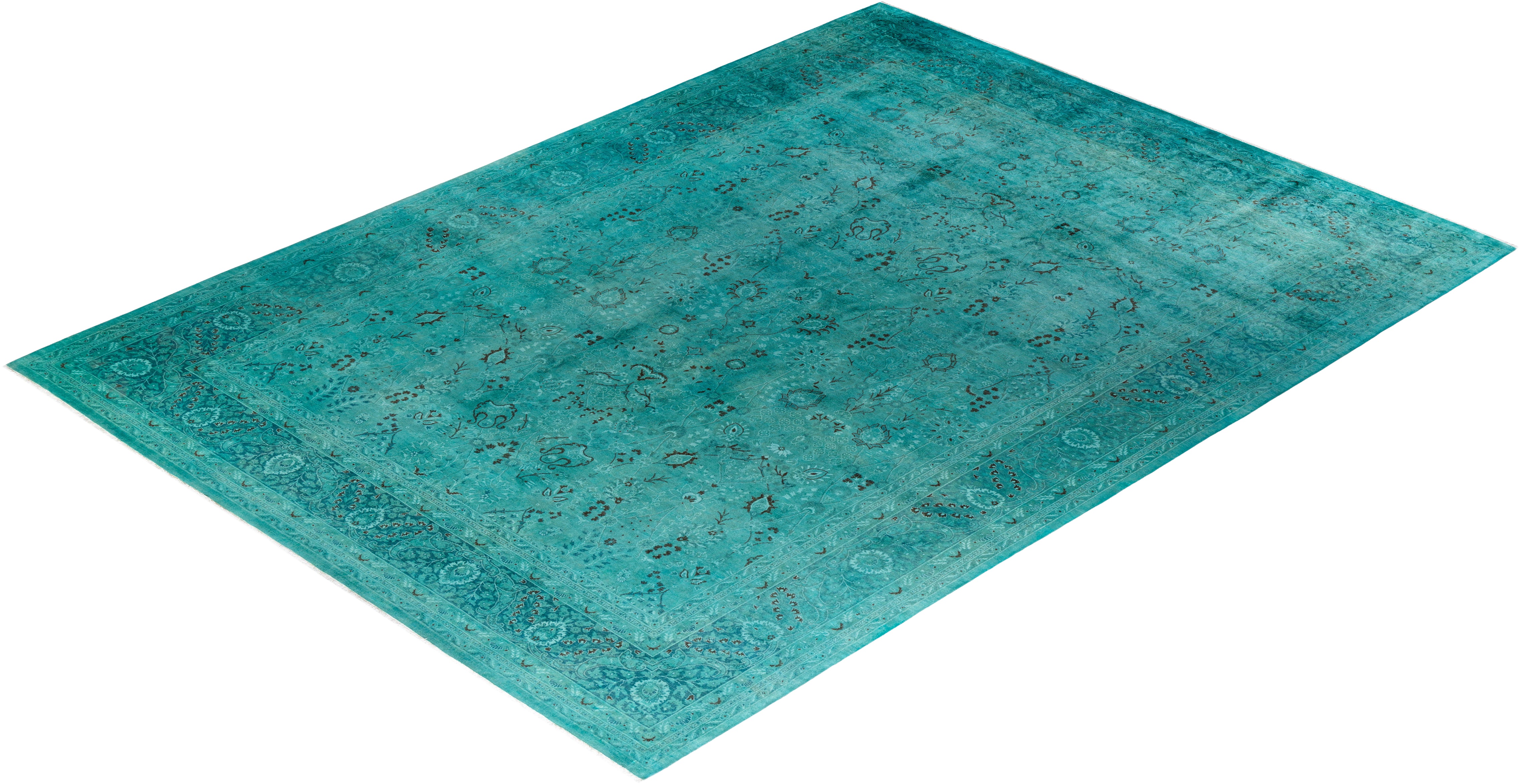 Contemporary Hand-Knotted Overdyed Blue Area Rug 10' 3" x 14' 0"