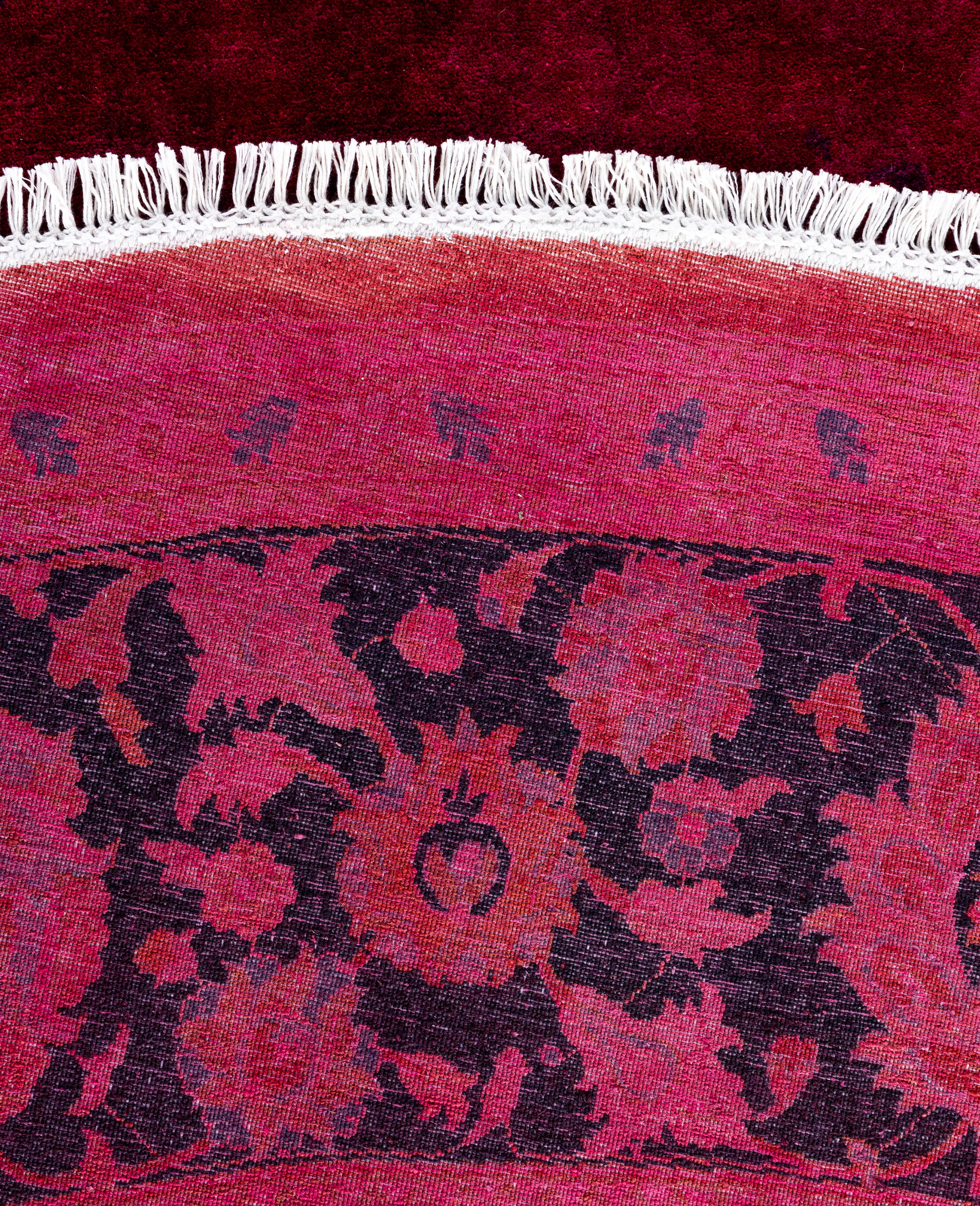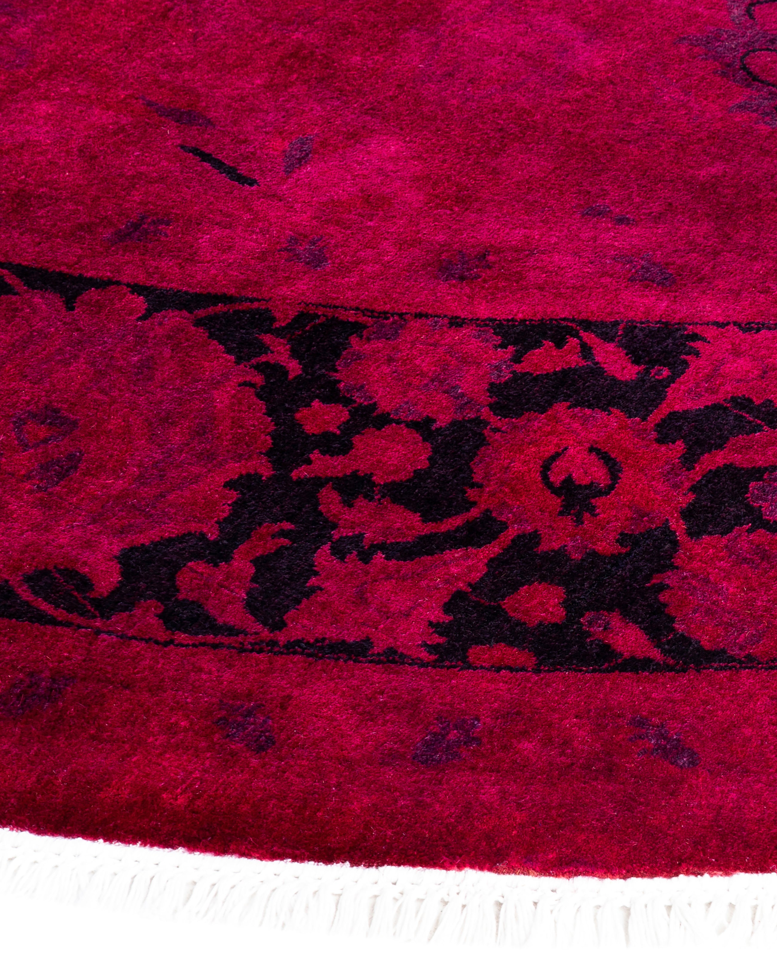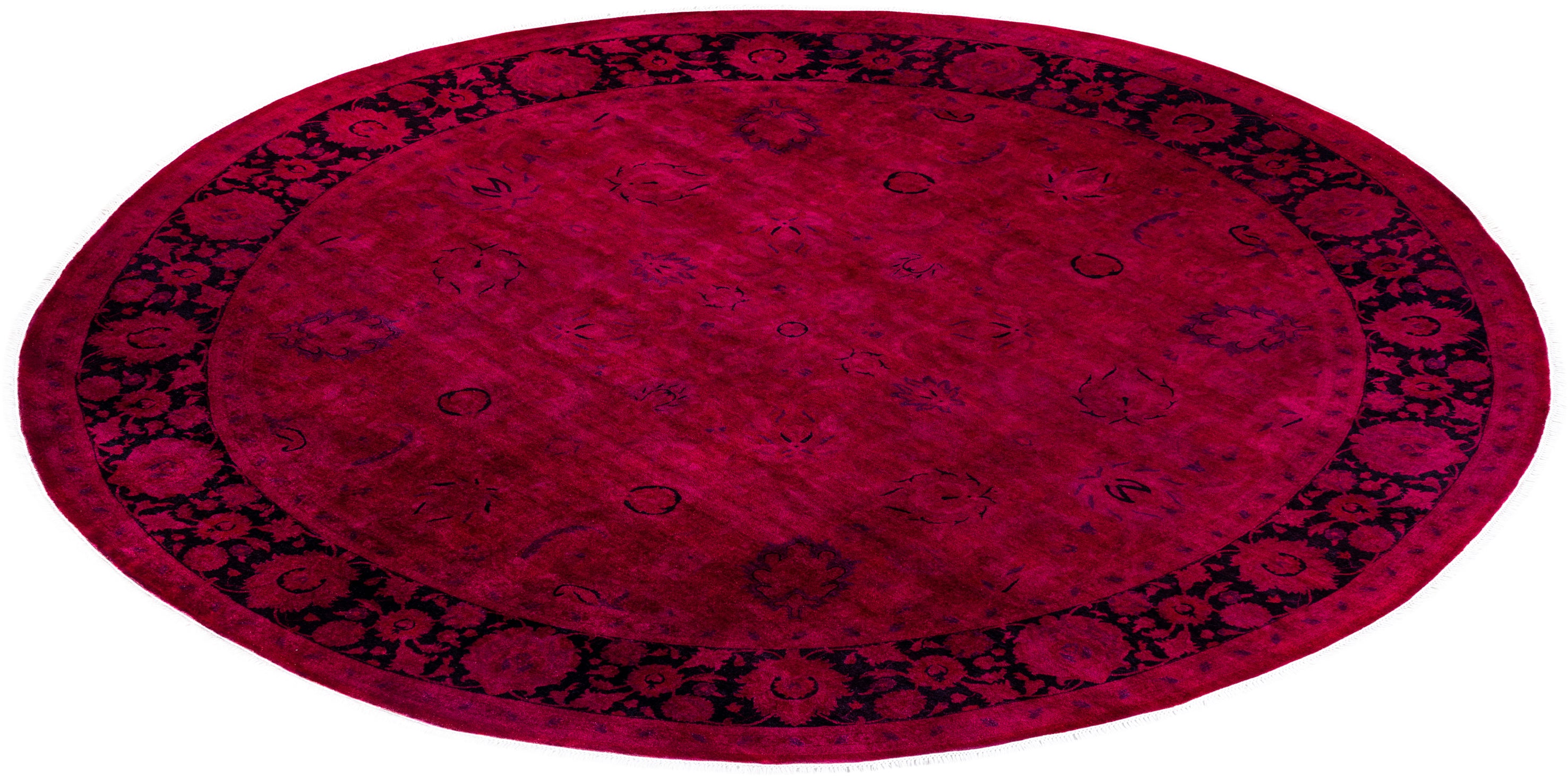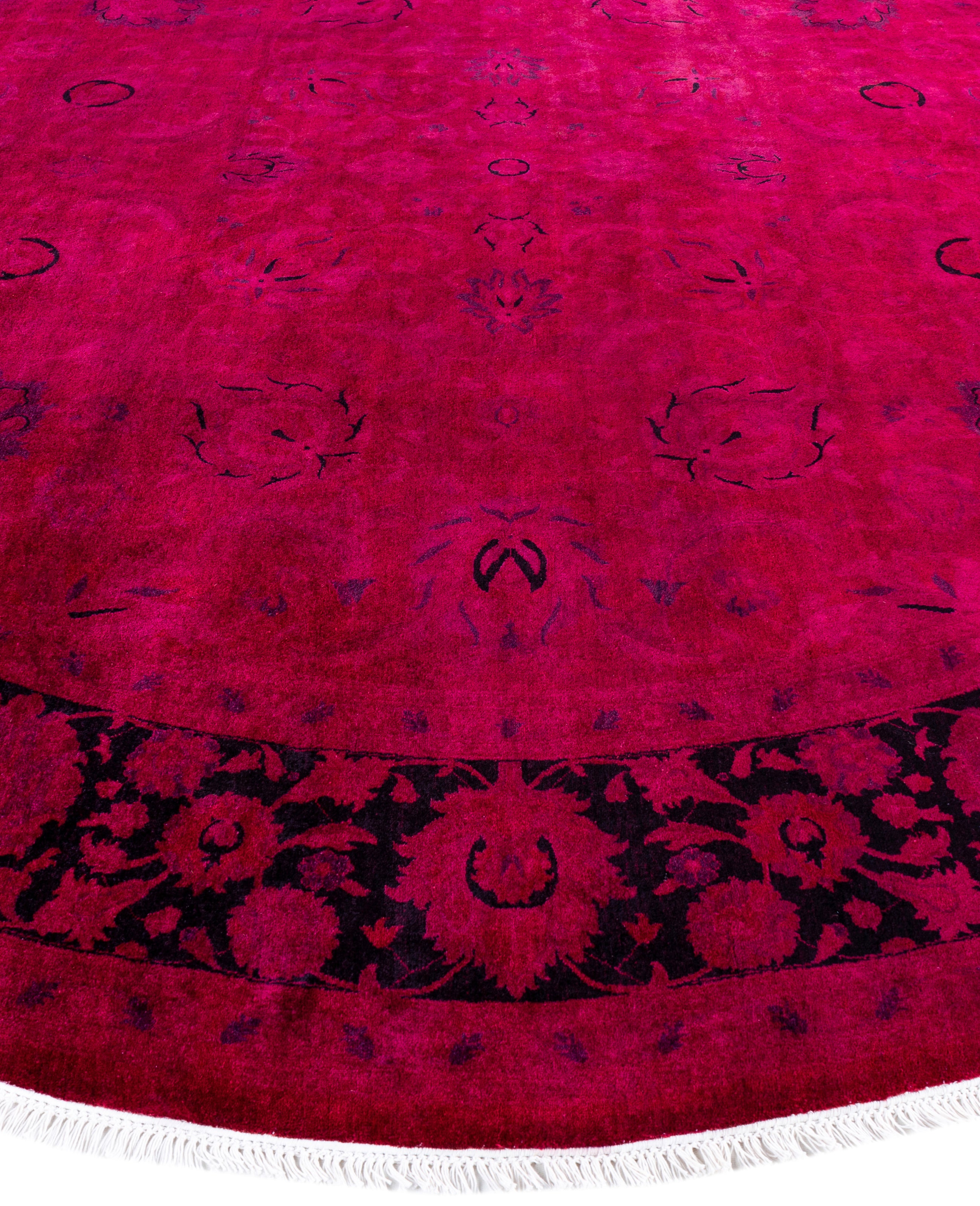 Contemporary Overdyed Wool Hand Knotted Pink Round Area Rug 9' 1" x 9' 1"