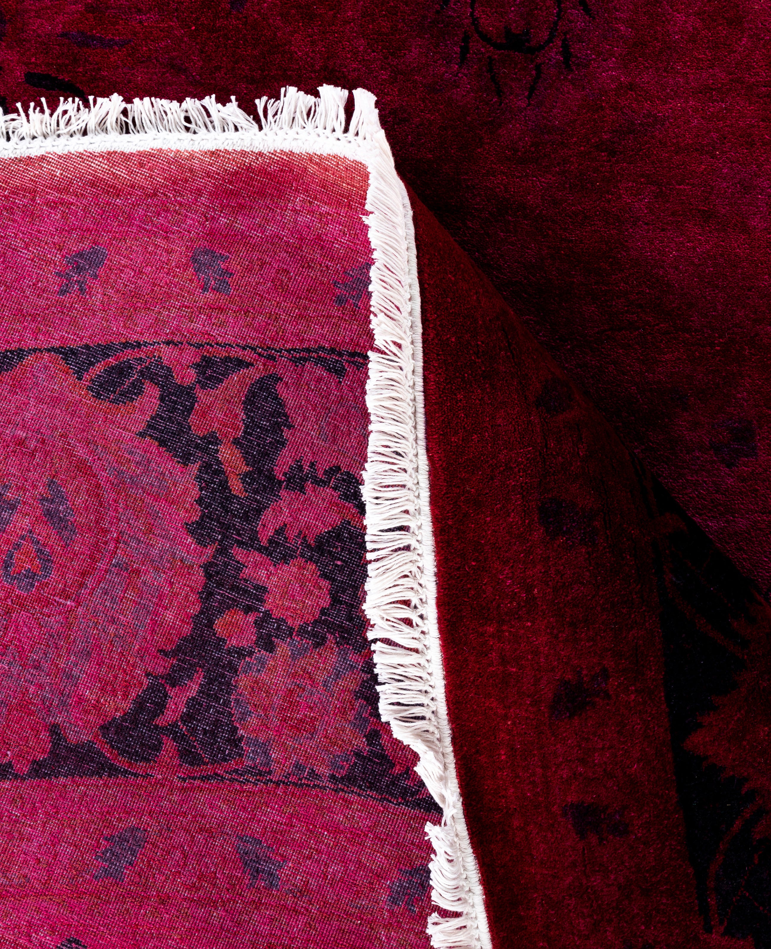 Over-dyed area rugs are created by taking vintage or traditional rugs and applying a vibrant, monochromatic dye over the existing patterns. This technique results in a bold, modern aesthetic while preserving the intricate designs beneath, blending the old with the new. The rugs are often faded and distressed before dyeing, which adds texture and depth to their appearance. The over-dye process breathes new life into worn or antique rugs, giving them a contemporary twist with rich, saturated colors like deep blues, purples, or bright reds. These rugs work well in both eclectic and modern spaces, offering a unique, artistic flair to any room. They provide a dynamic focal point, balancing between traditional craftsmanship and contemporary design trends. Over-dyed rugs are perfect for those looking to add a pop of color and character to their home decor.