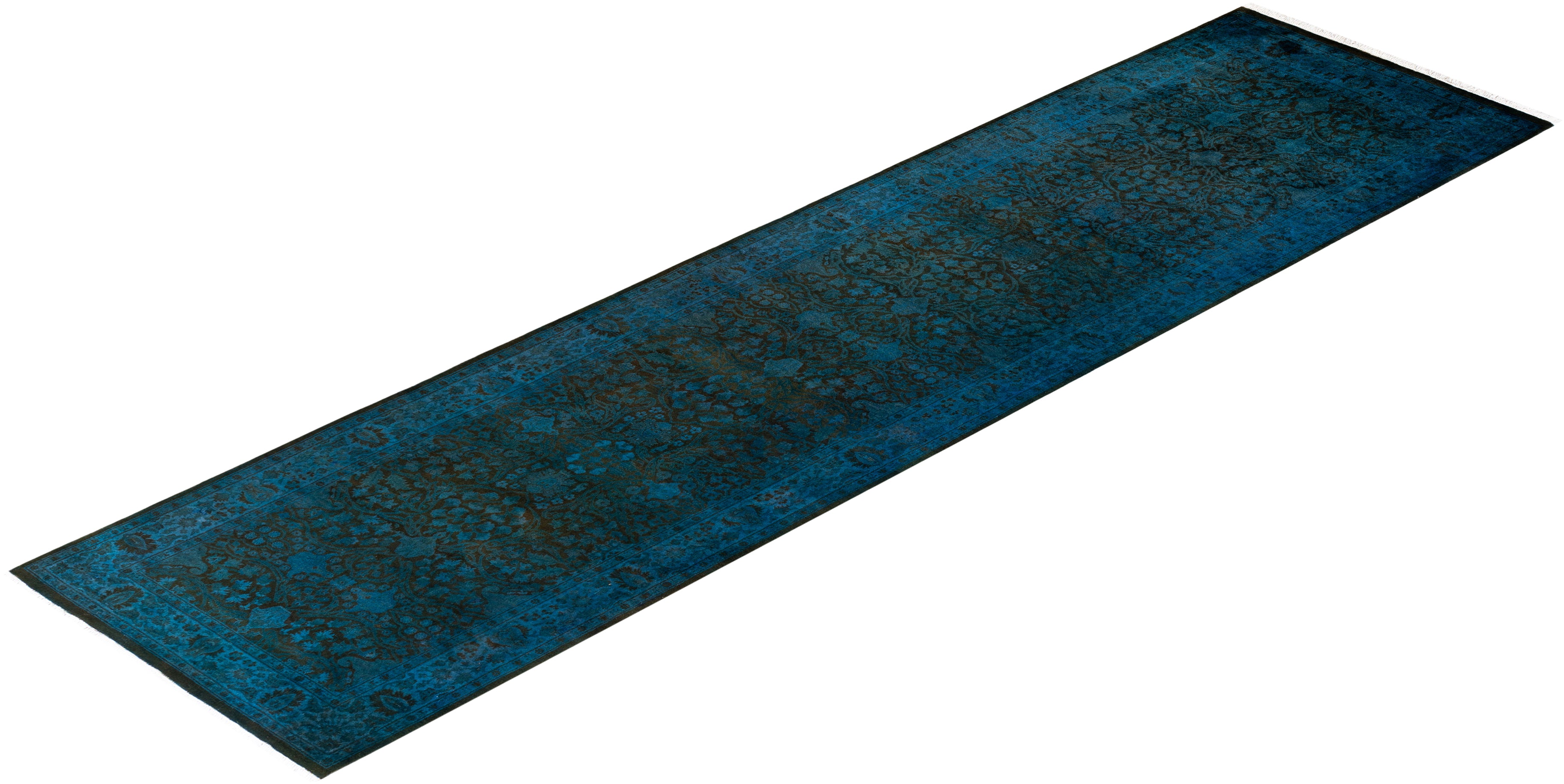 Contemporary Hand Knotted Overdyed Blue Runner 3' 1" x 12' 5"