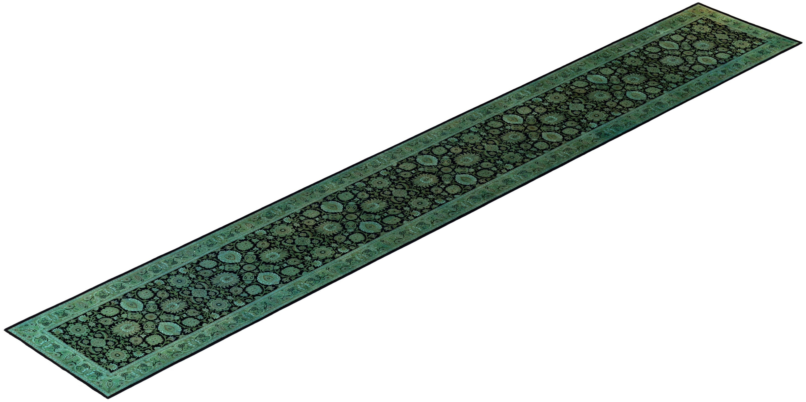 Contemporary Hand-Knotted Overdyed Black Runner 2' 7" x 17' 10"