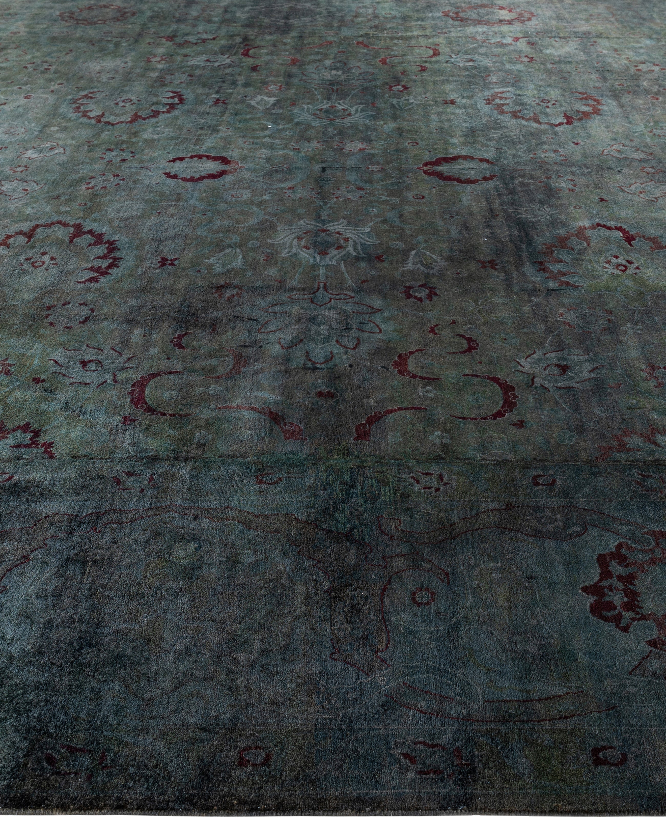 Overdyed One-of-a-Kind Wool Gray Area Rug 12' 2" x 15' 2"