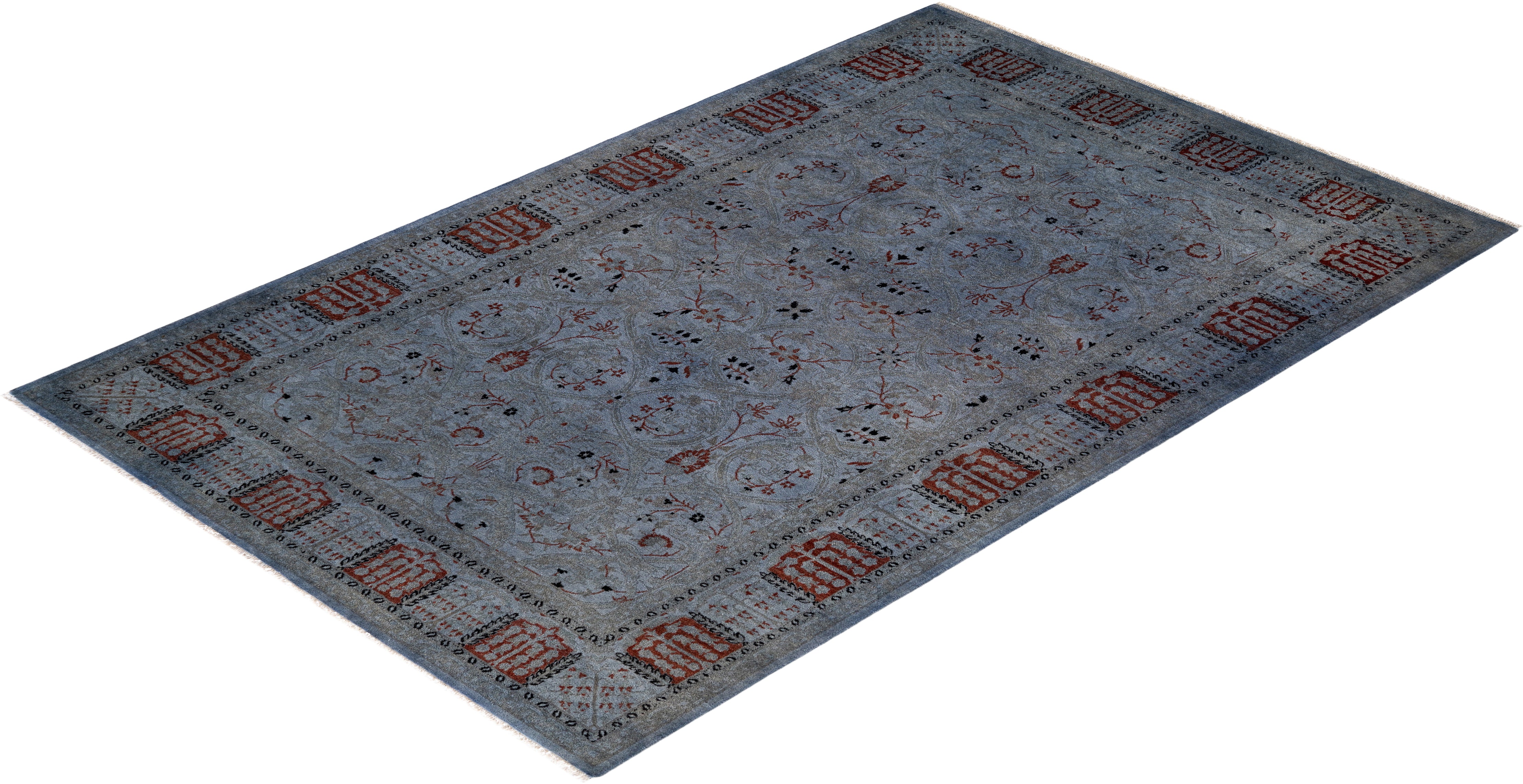 Contemporary Hand-Knotted Overdyed Gray Area Rug 5' 2" x 8' 0"