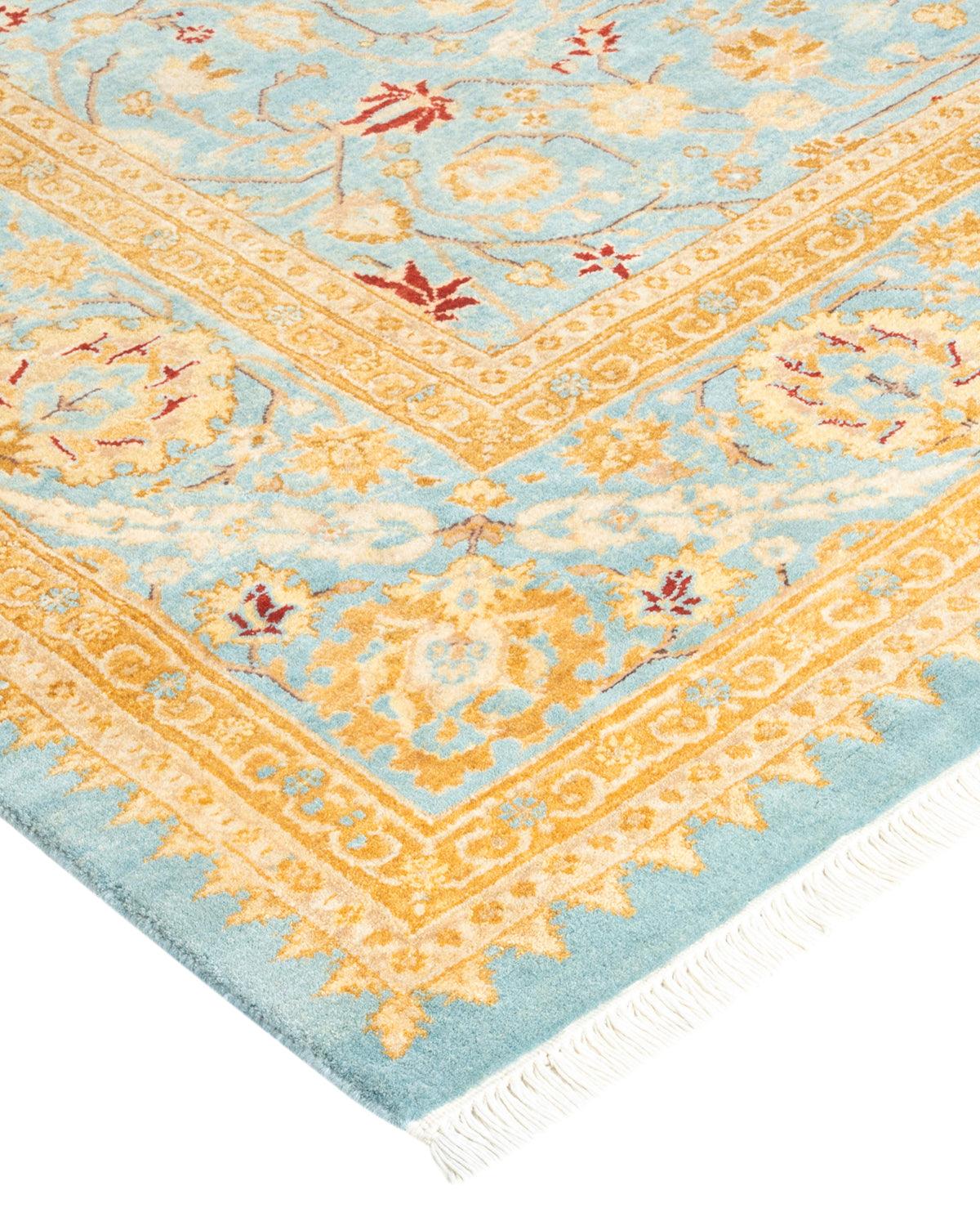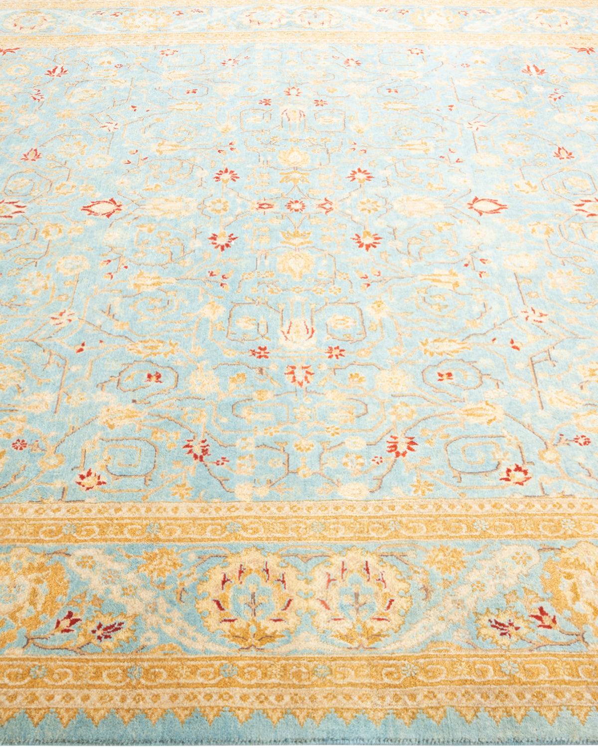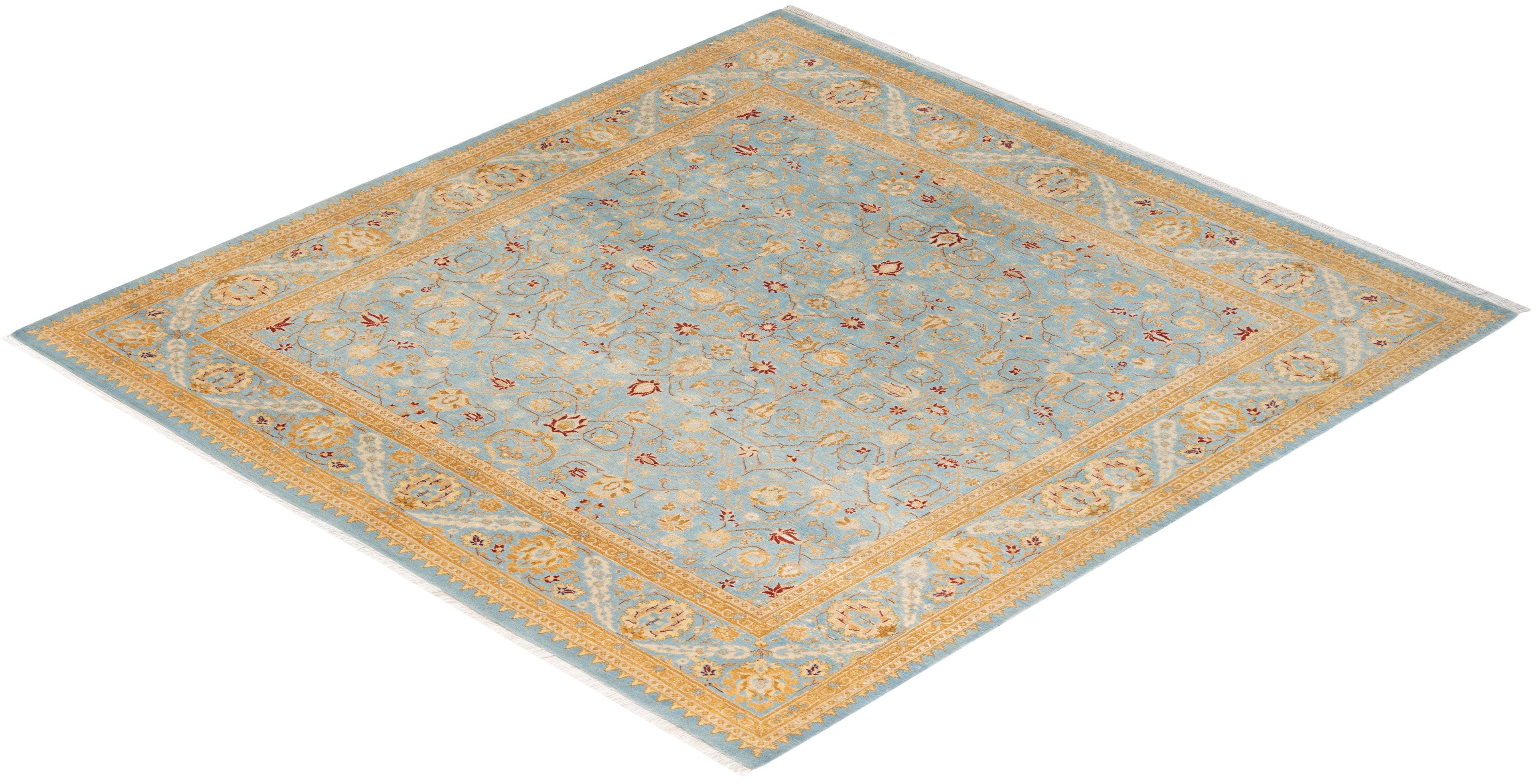 Traditional Hand Knotted Mogul Oriental Light Blue Square Area Rug 6' 2" x 6' 6"