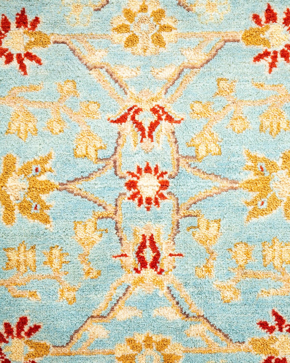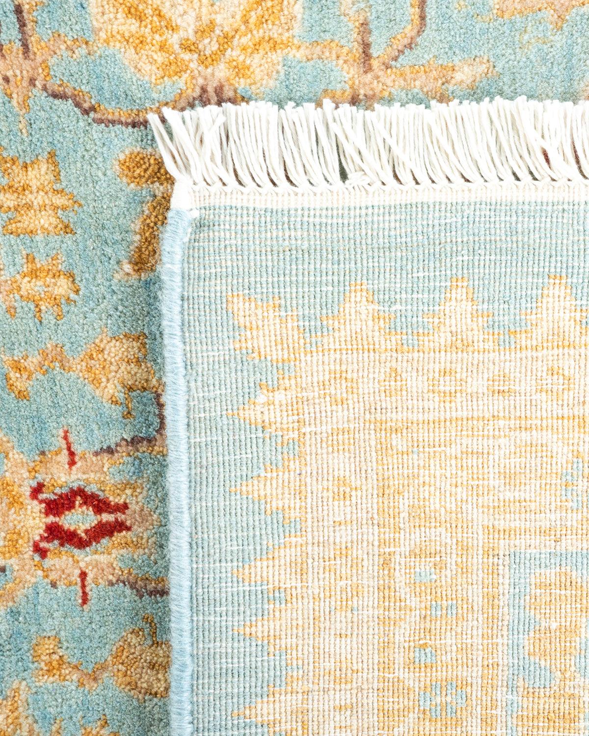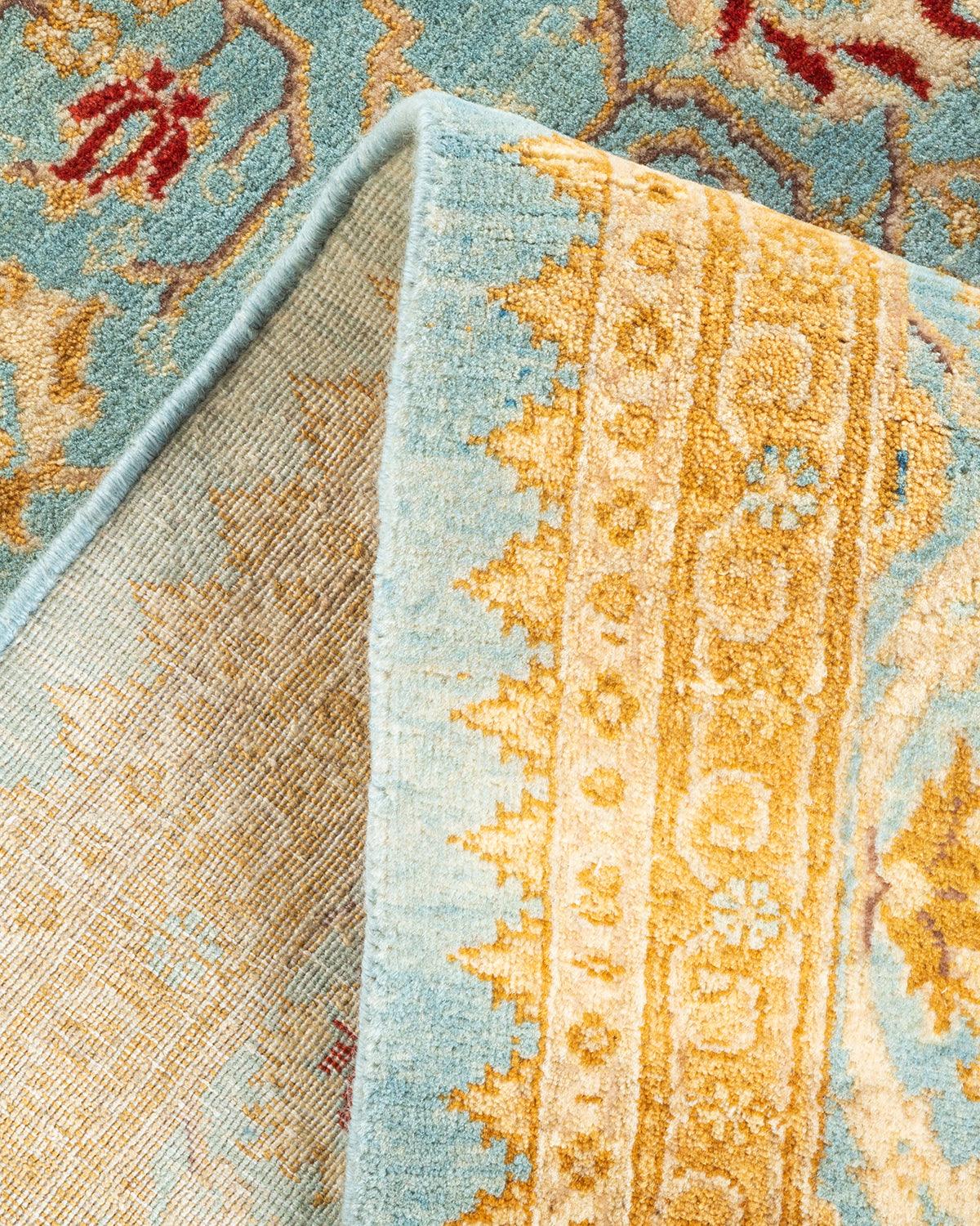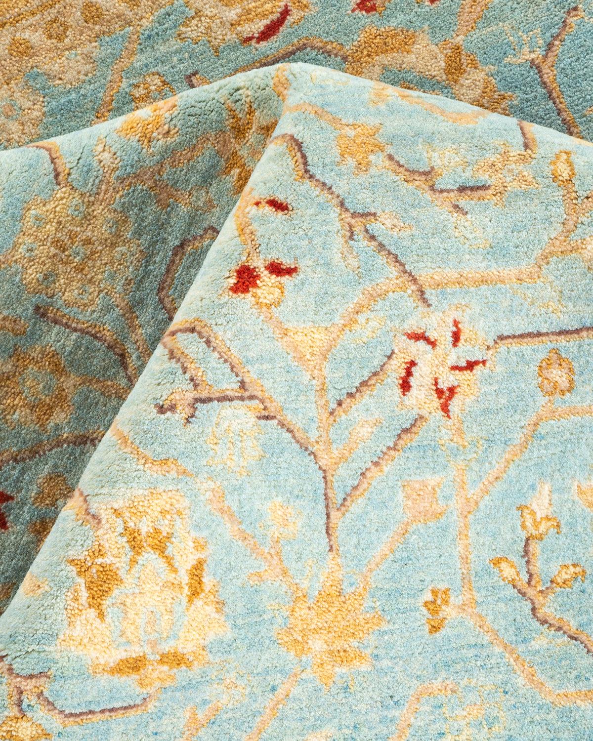 Traditional Hand Knotted Mogul Oriental Light Blue Square Area Rug 6' 2" x 6' 6"
