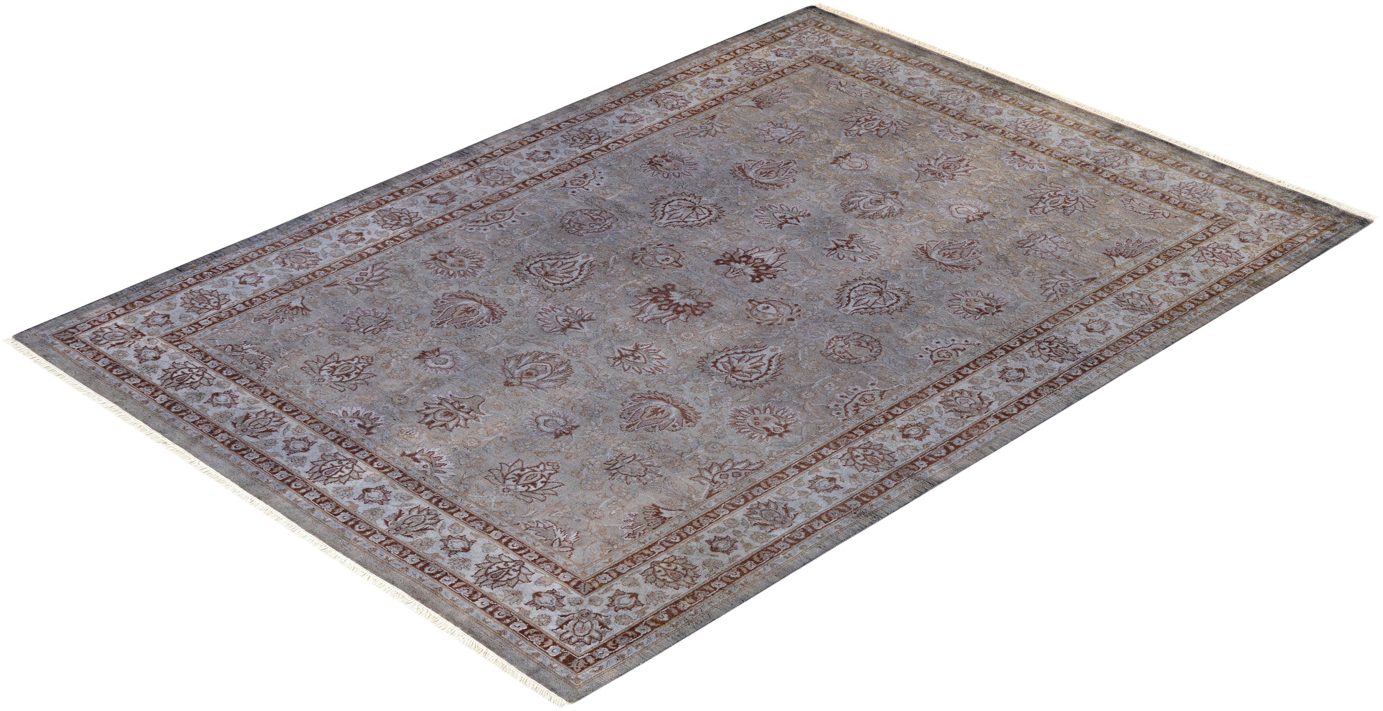 Contemporary Hand Knotted Overdyed Gray Area Rug 4' 7" x 6' 6"