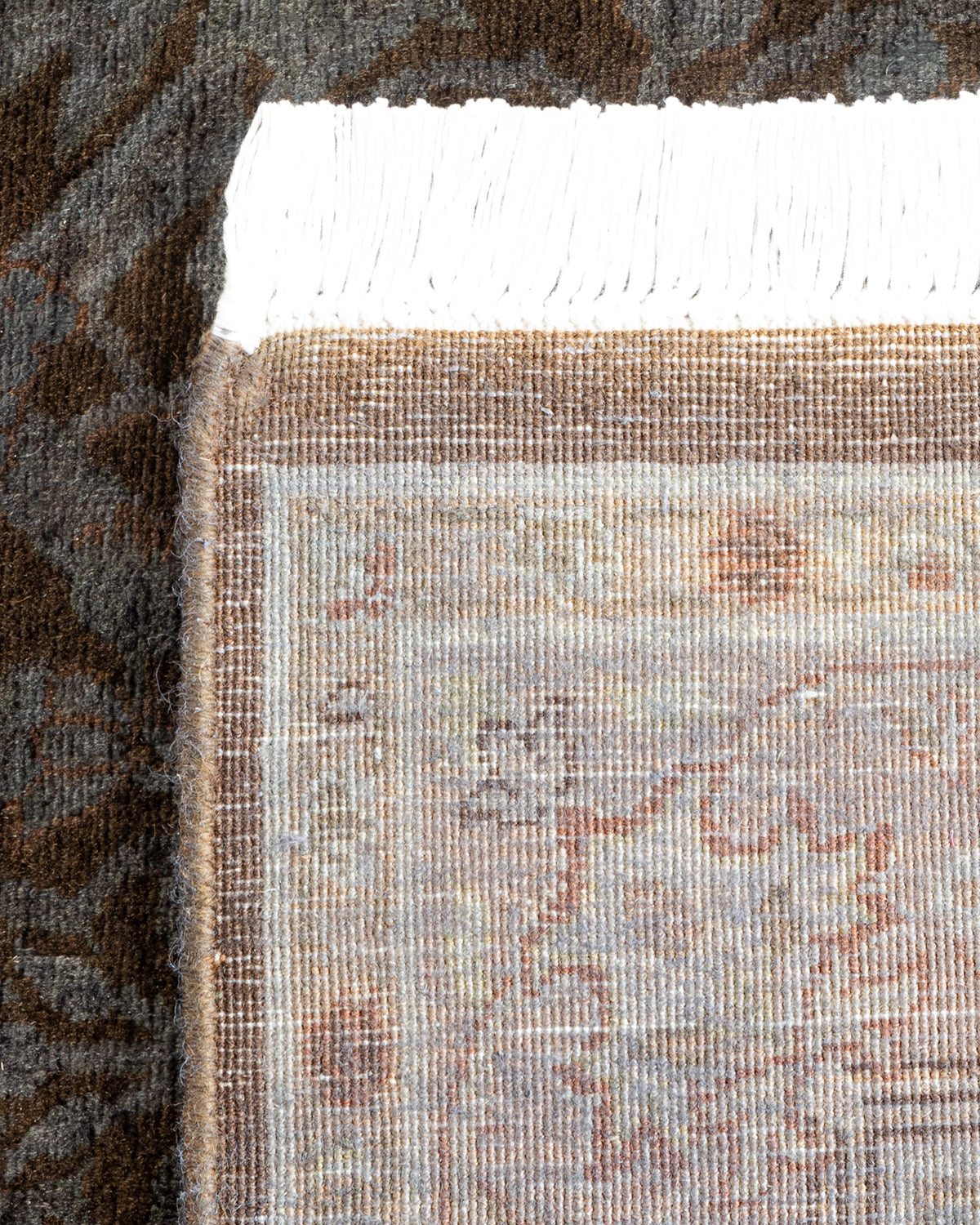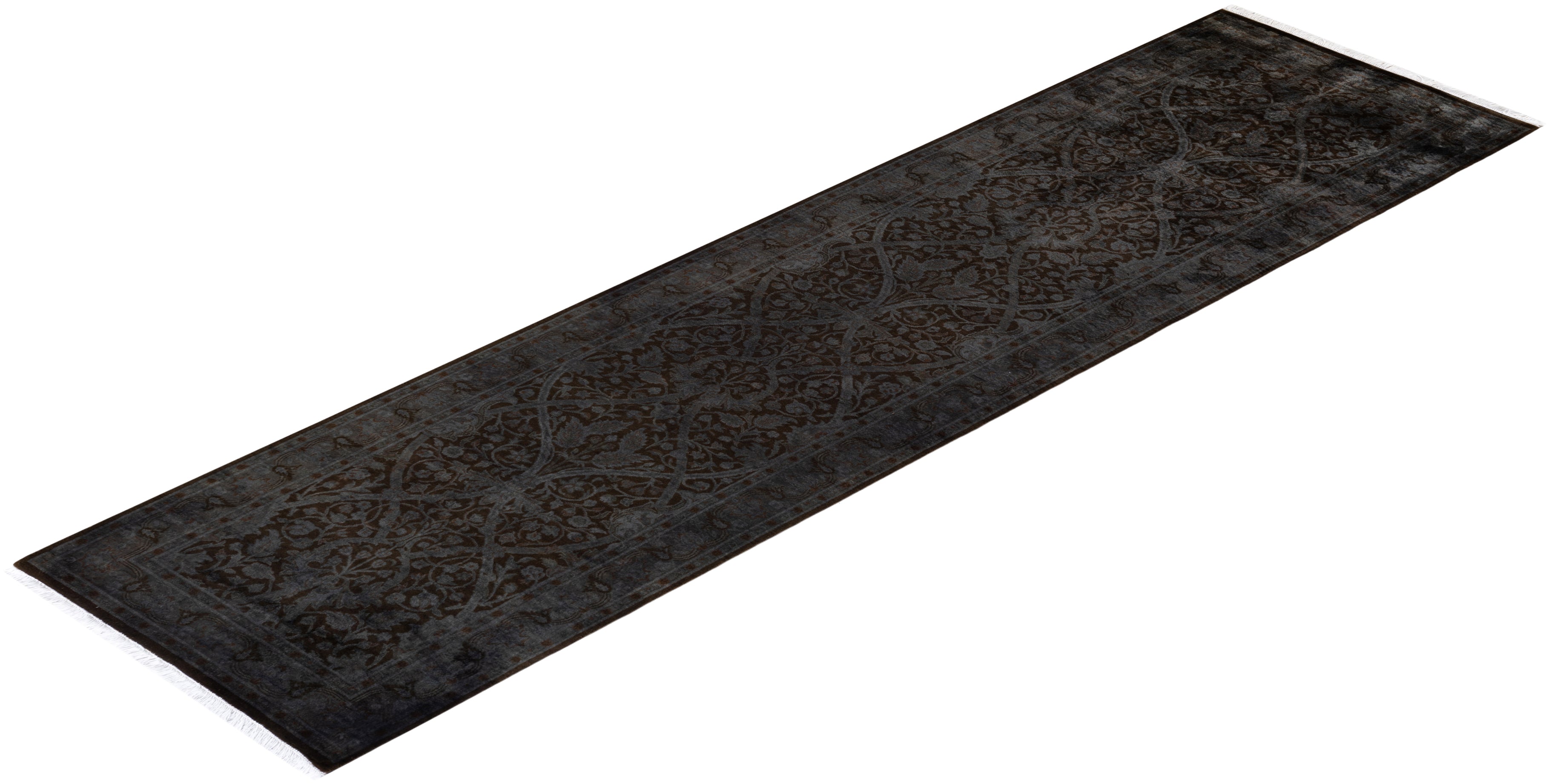 Contemporary Hand Knotted Overdyed Gray Runner 2' 7" x 10' 4"