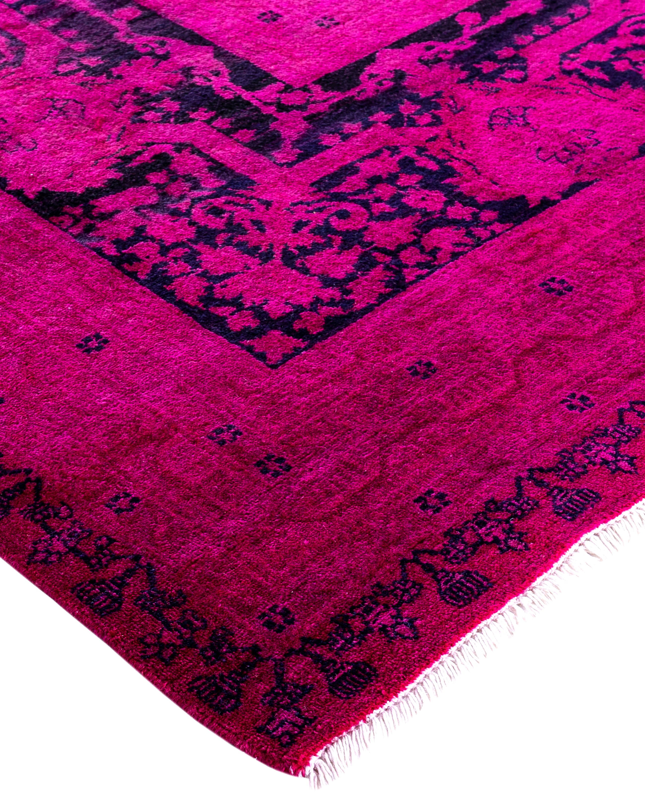 Over-dyed area rugs are created by taking vintage or traditional rugs and applying a vibrant, monochromatic dye over the existing patterns. This technique results in a bold, modern aesthetic while preserving the intricate designs beneath, blending the old with the new. The rugs are often faded and distressed before dyeing, which adds texture and depth to their appearance. The over-dye process breathes new life into worn or antique rugs, giving them a contemporary twist with rich, saturated colors like deep blues, purples, or bright reds. These rugs work well in both eclectic and modern spaces, offering a unique, artistic flair to any room. They provide a dynamic focal point, balancing between traditional craftsmanship and contemporary design trends. Over-dyed rugs are perfect for those looking to add a pop of color and character to their home decor.
