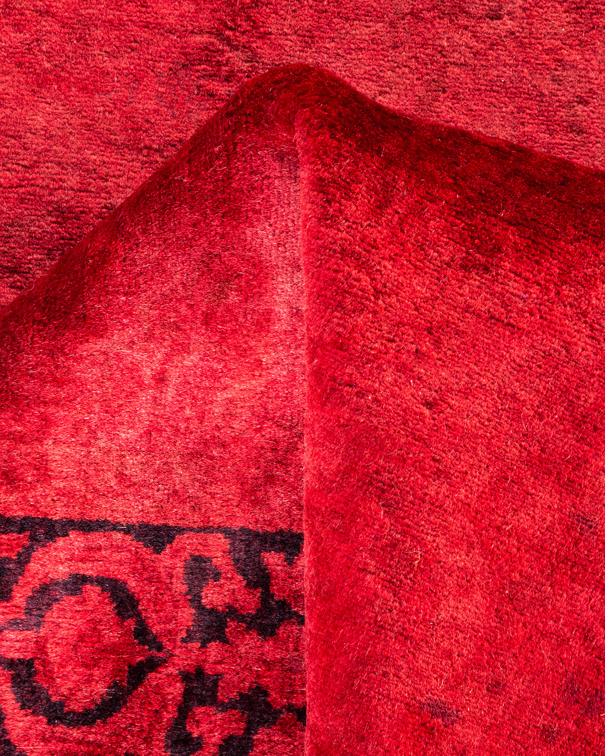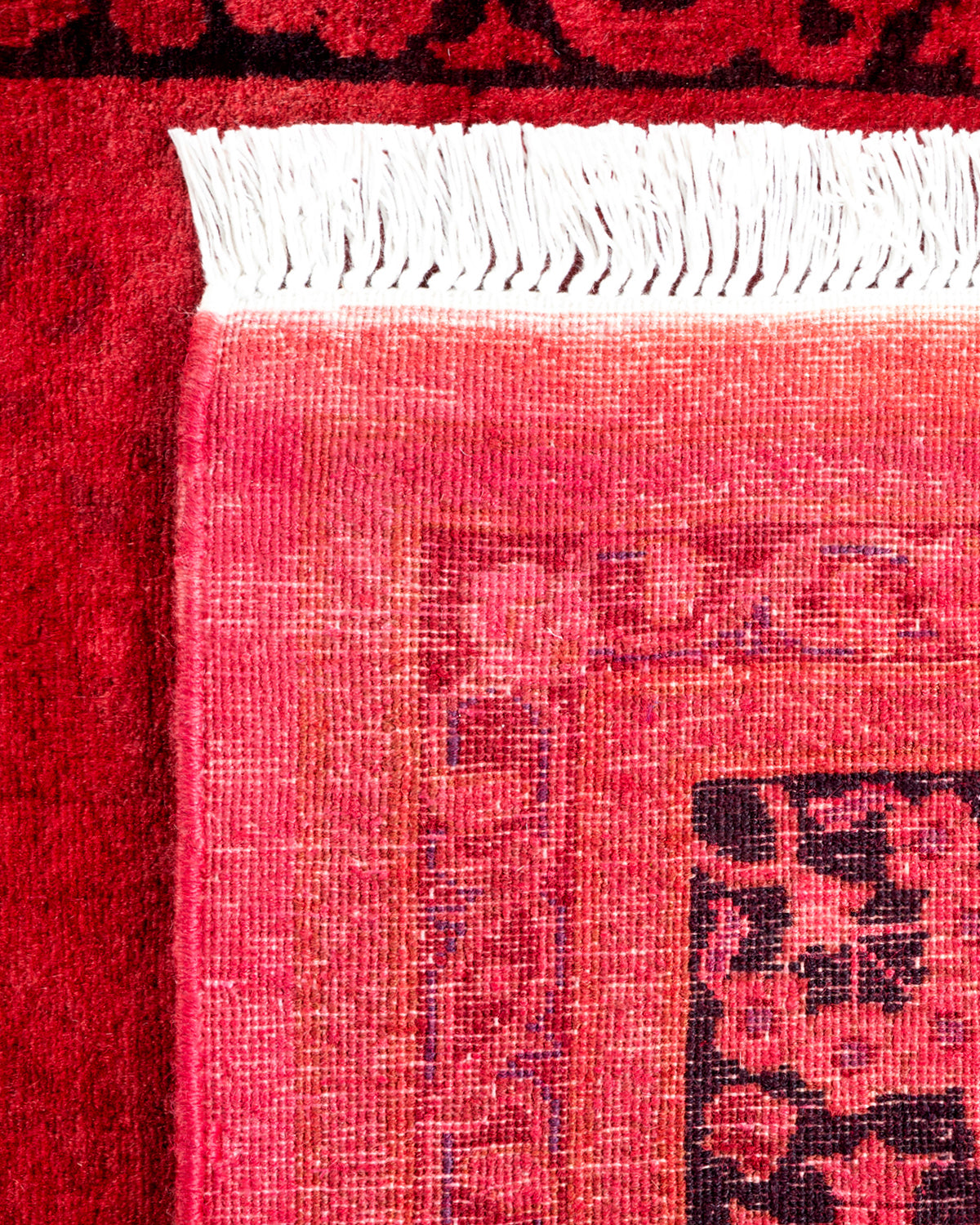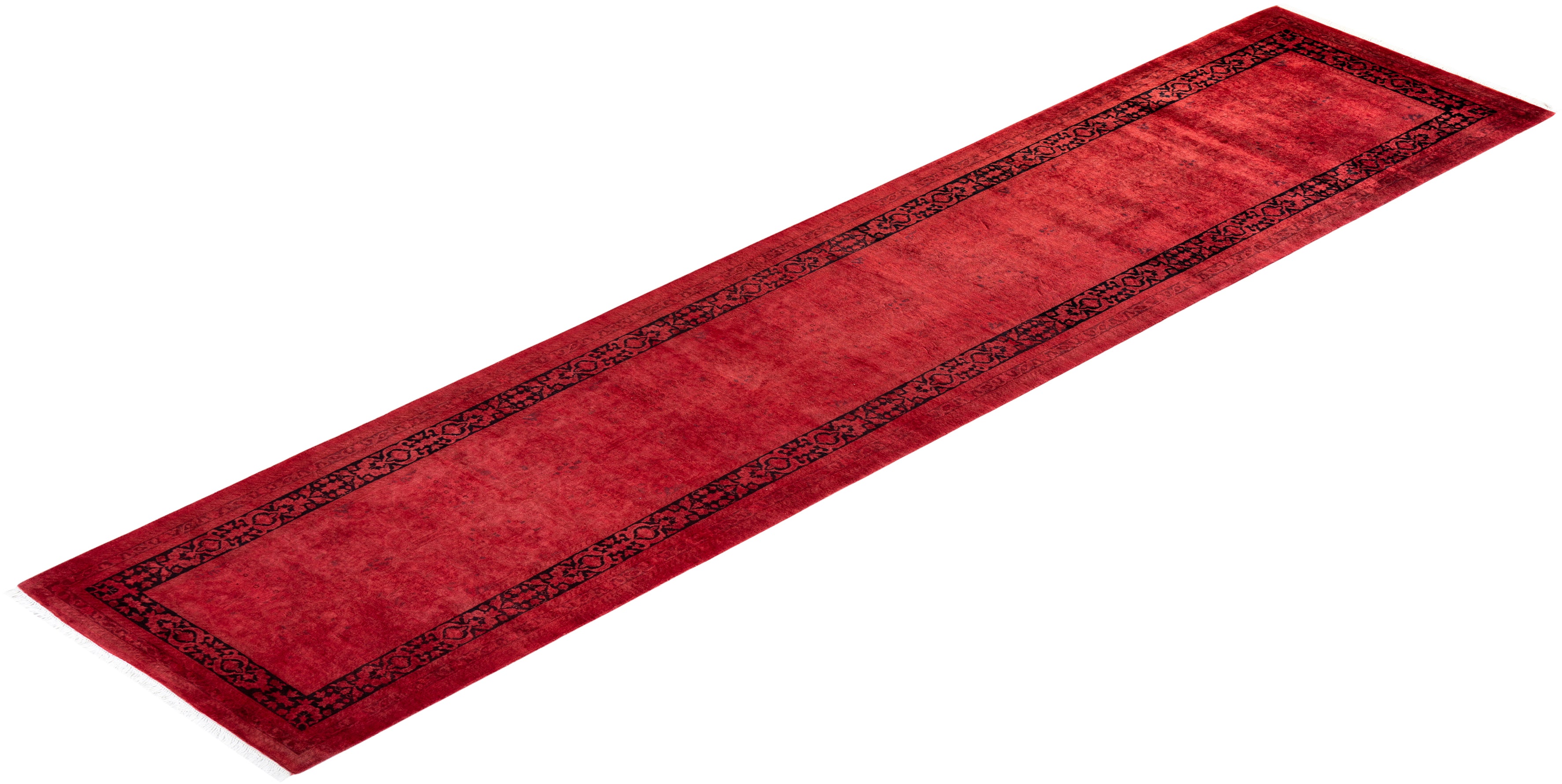 Contemporary Hand Knotted Overdyed Red Runner 2' 8" x 12' 3"