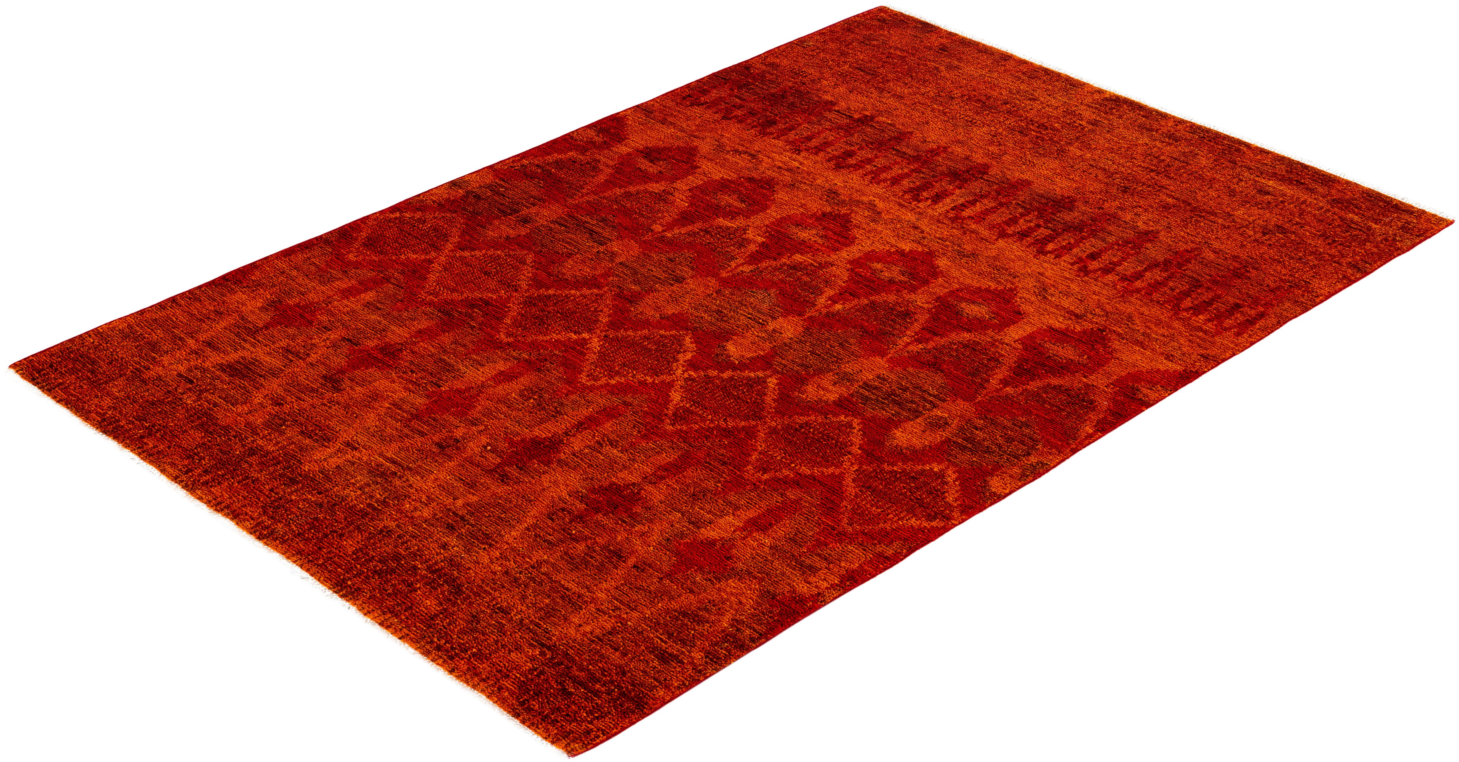 Contemporary Overdyed Wool Hand Knotted Orange Area Rug 4' 0" x 6' 1"