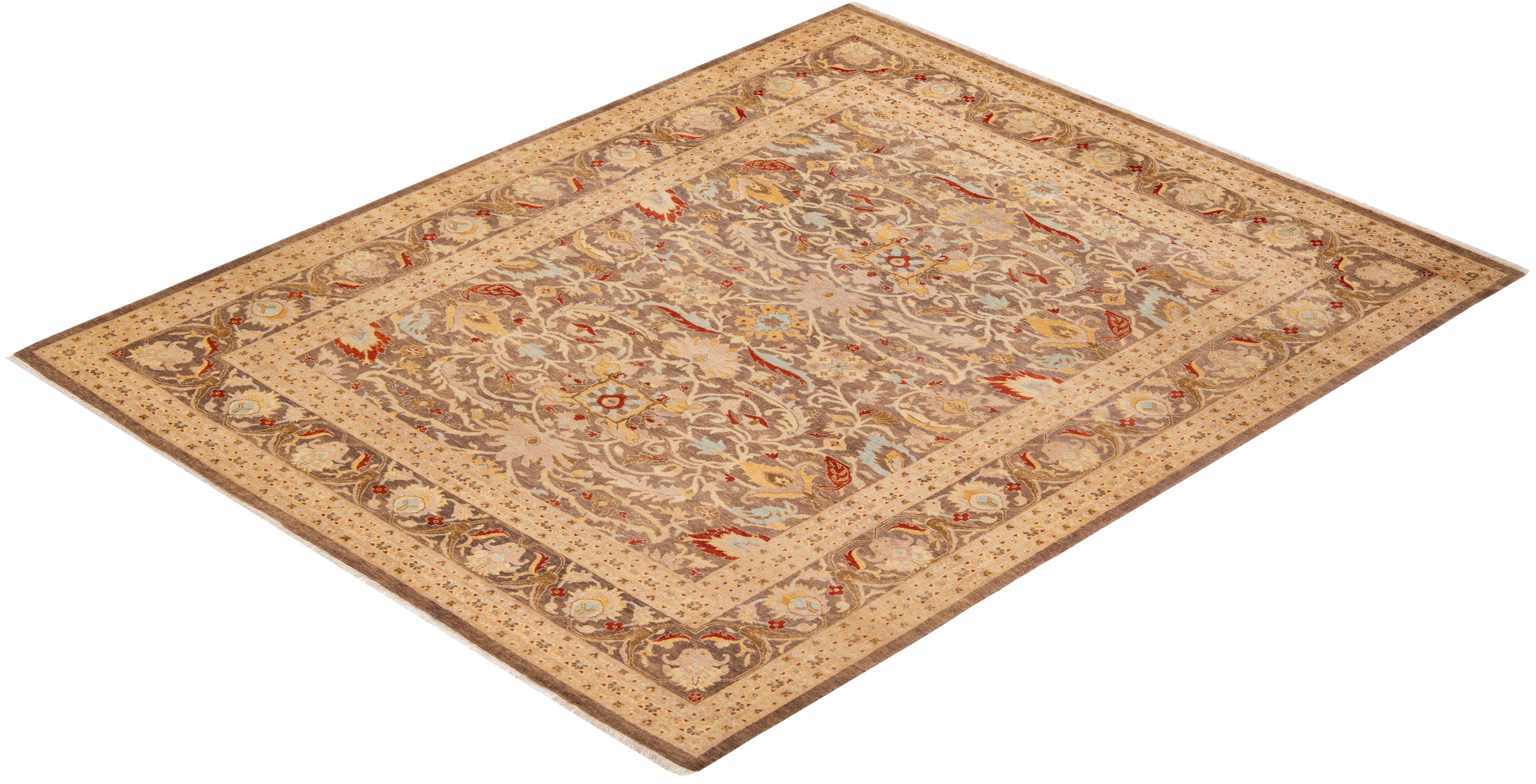 Contemporary Hand Knotted Eclectic Brown Area Rug 8' 0" x 9' 10"