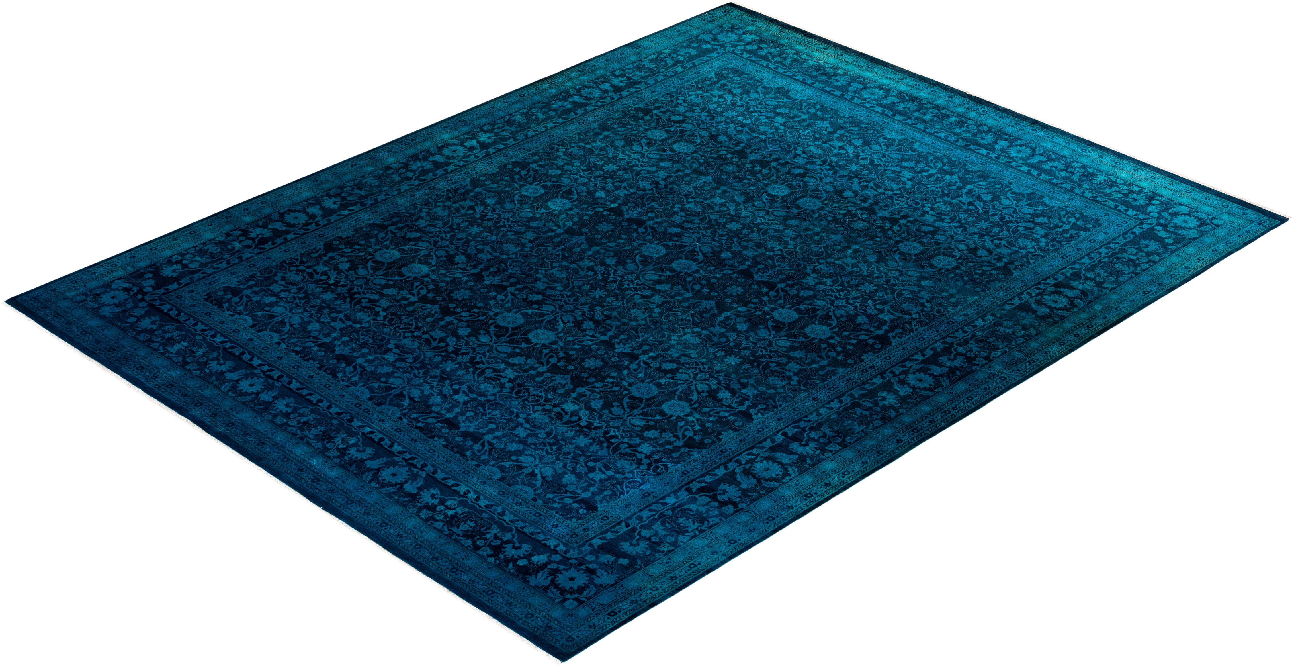 Contemporary Hand-Knotted Overdyed Blue Area Rug 8' 1" x 10' 6"