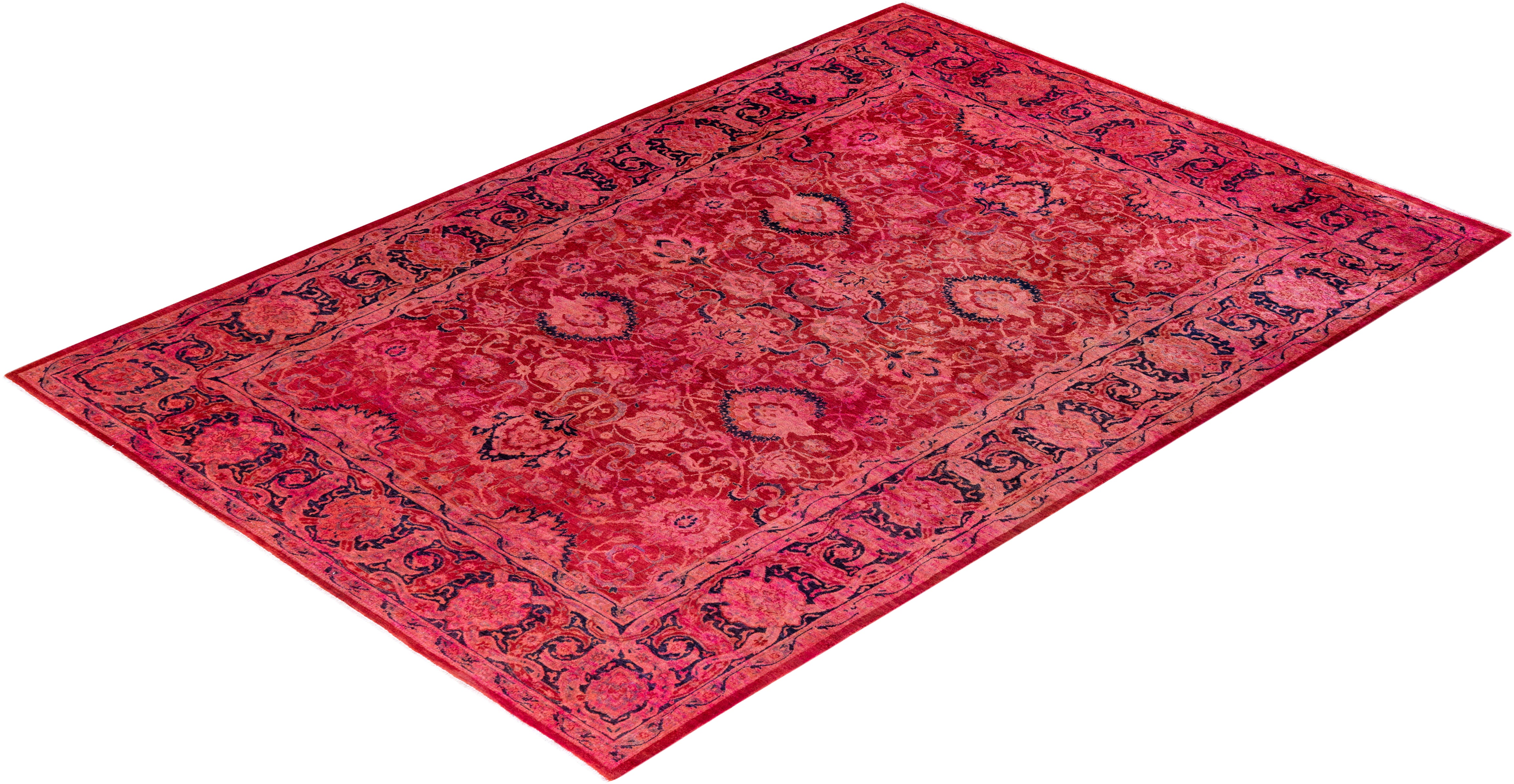 Contemporary Hand-Knotted Overdyed Pink Area Rug 6' 1" x 8' 10"