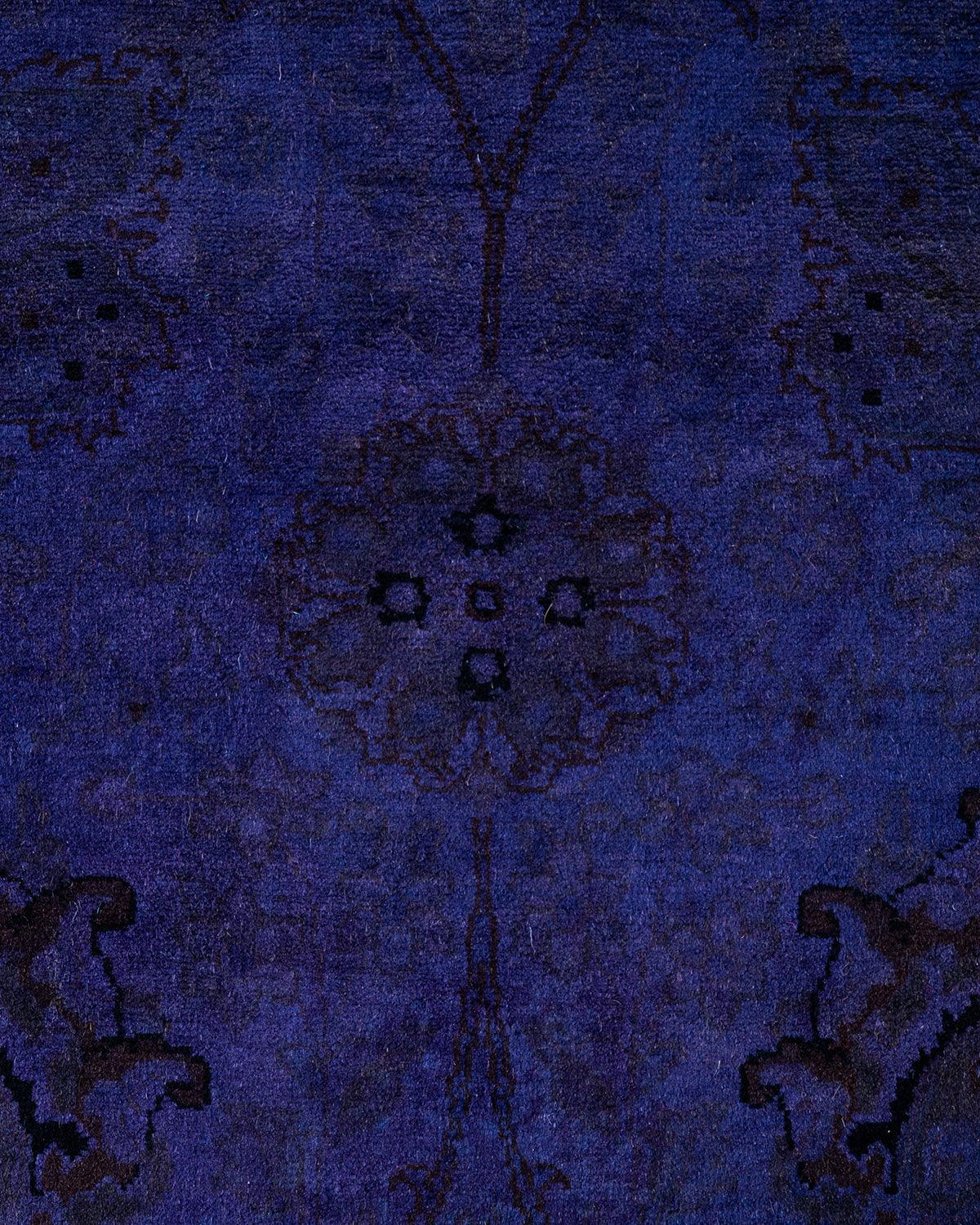 Contemporary Hand-Knotted Purple Runner 3' 1" x 8' 5"