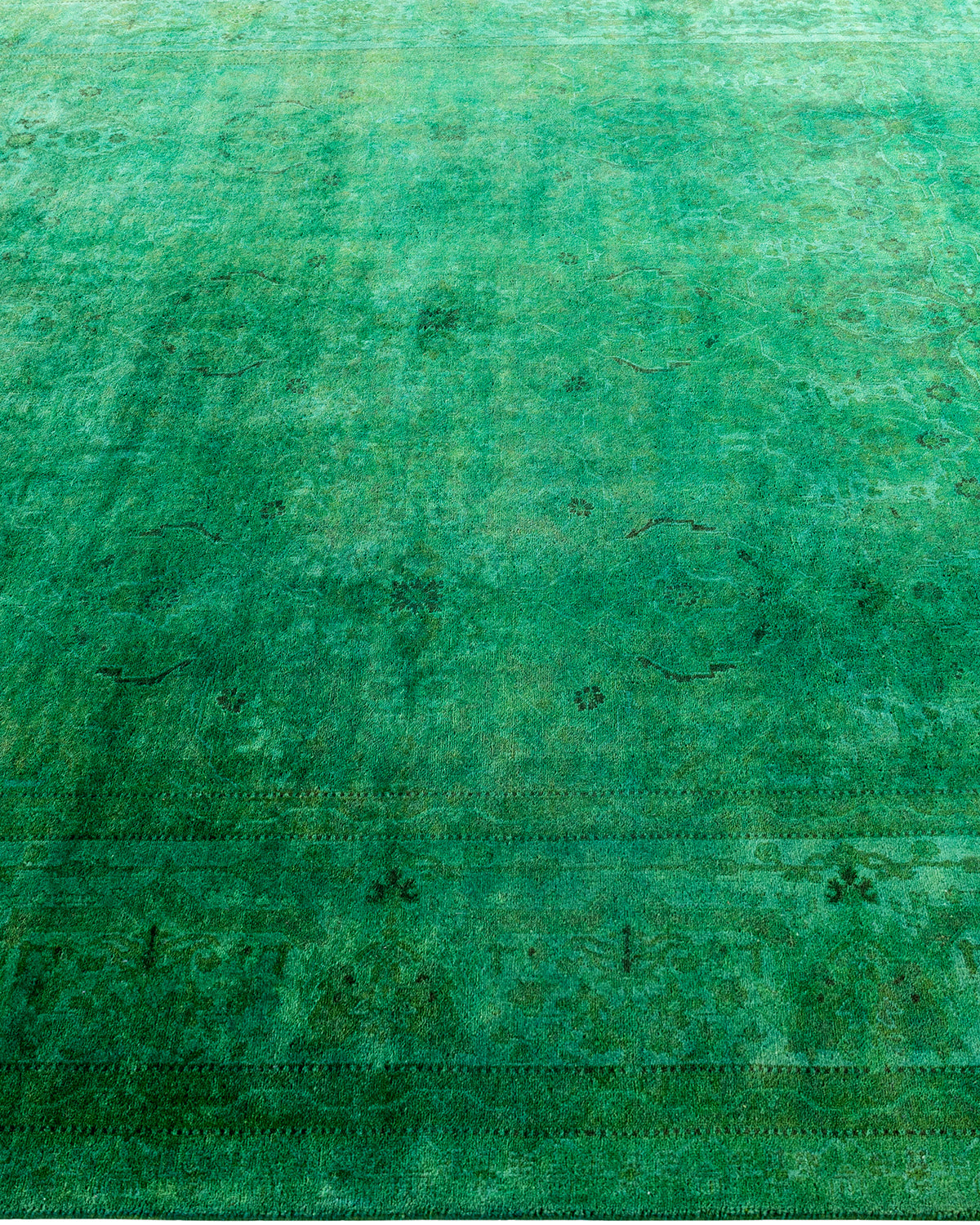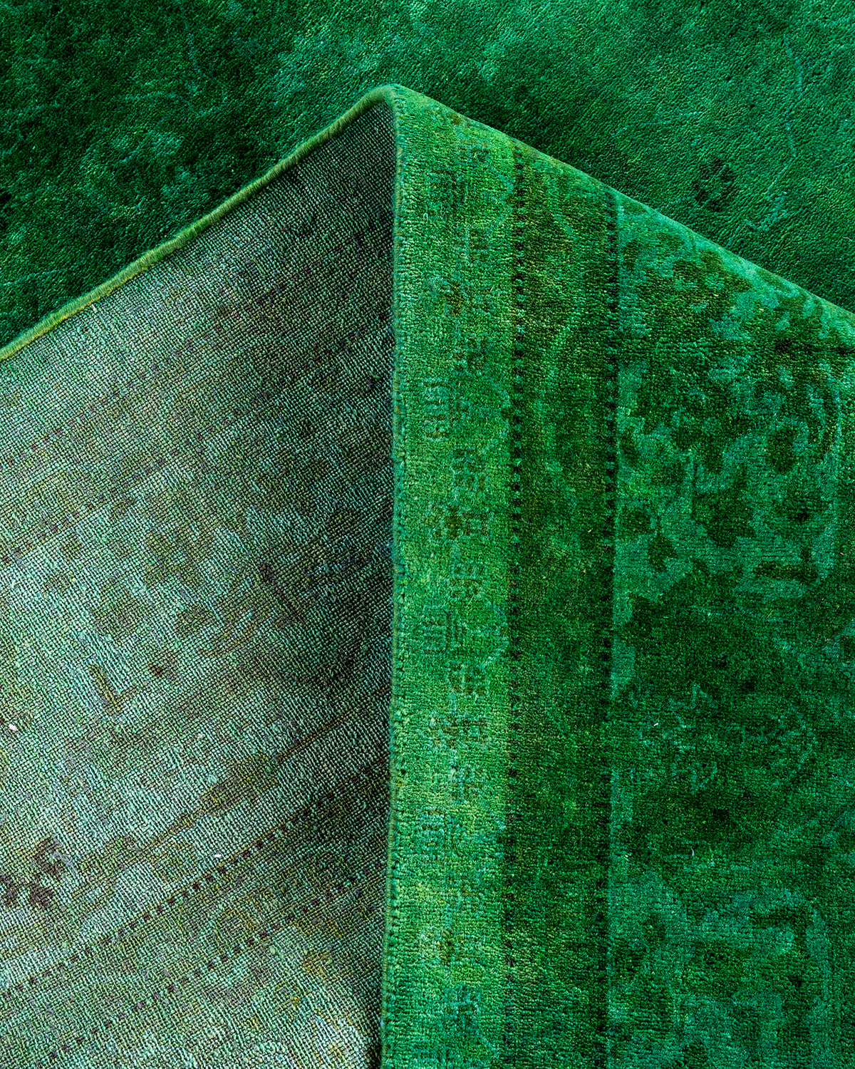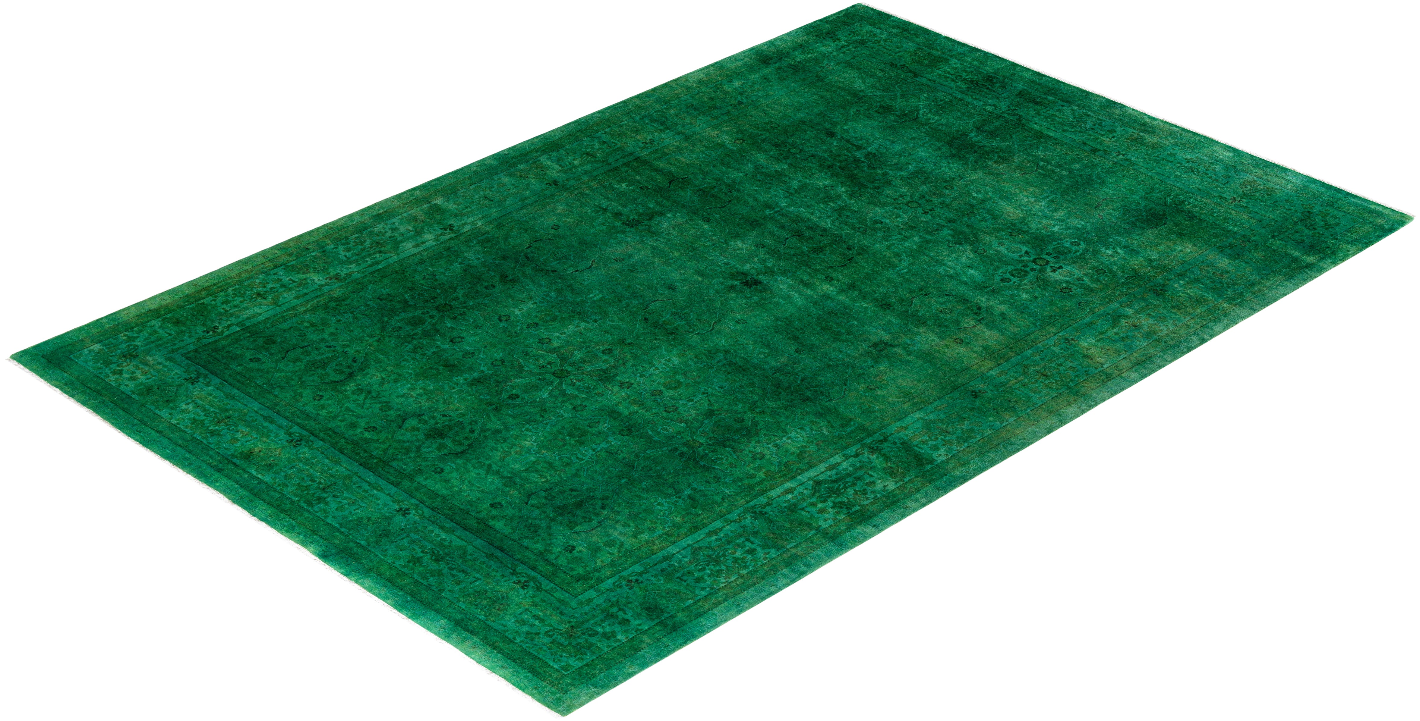 Contemporary Hand-Knotted Overdyed Green Area Rug 6' 3" x 9' 3"