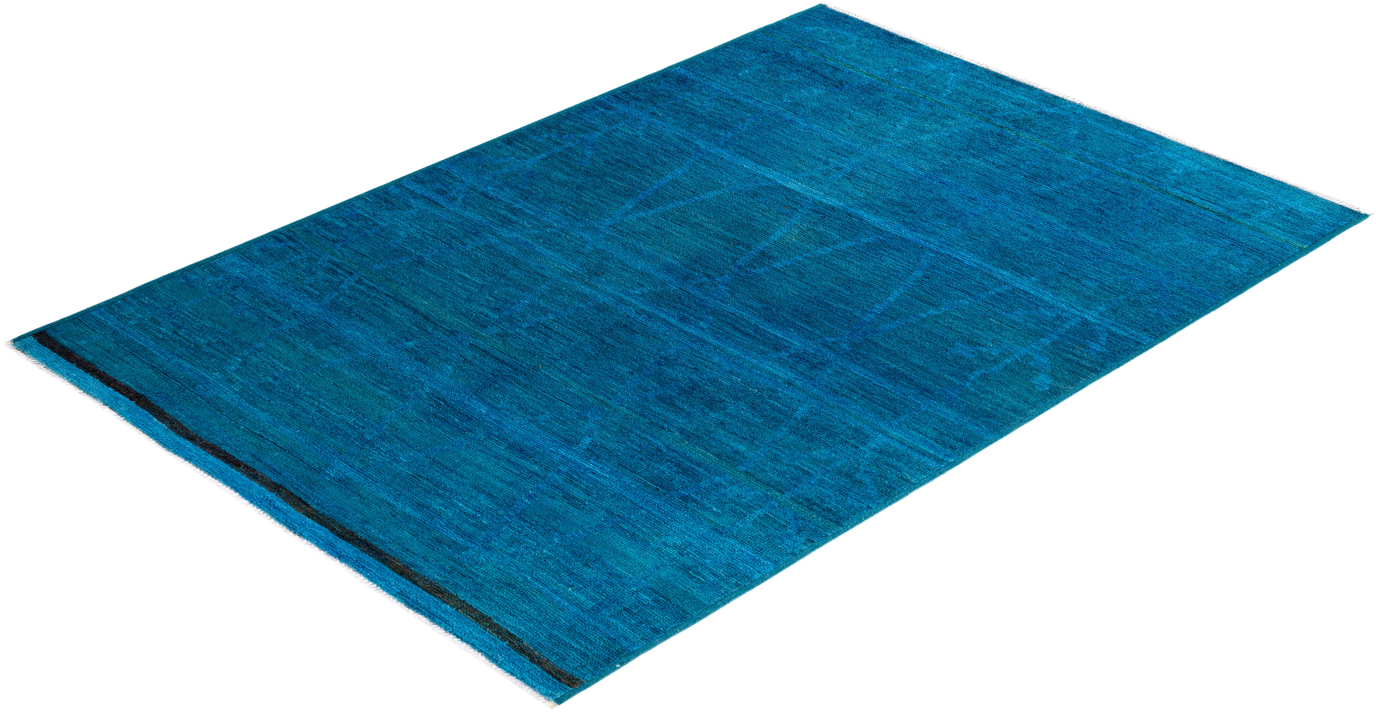 Contemporary Hand-Knotted Modern Abstract Blue Area Rug 6' 3" x 8' 10"