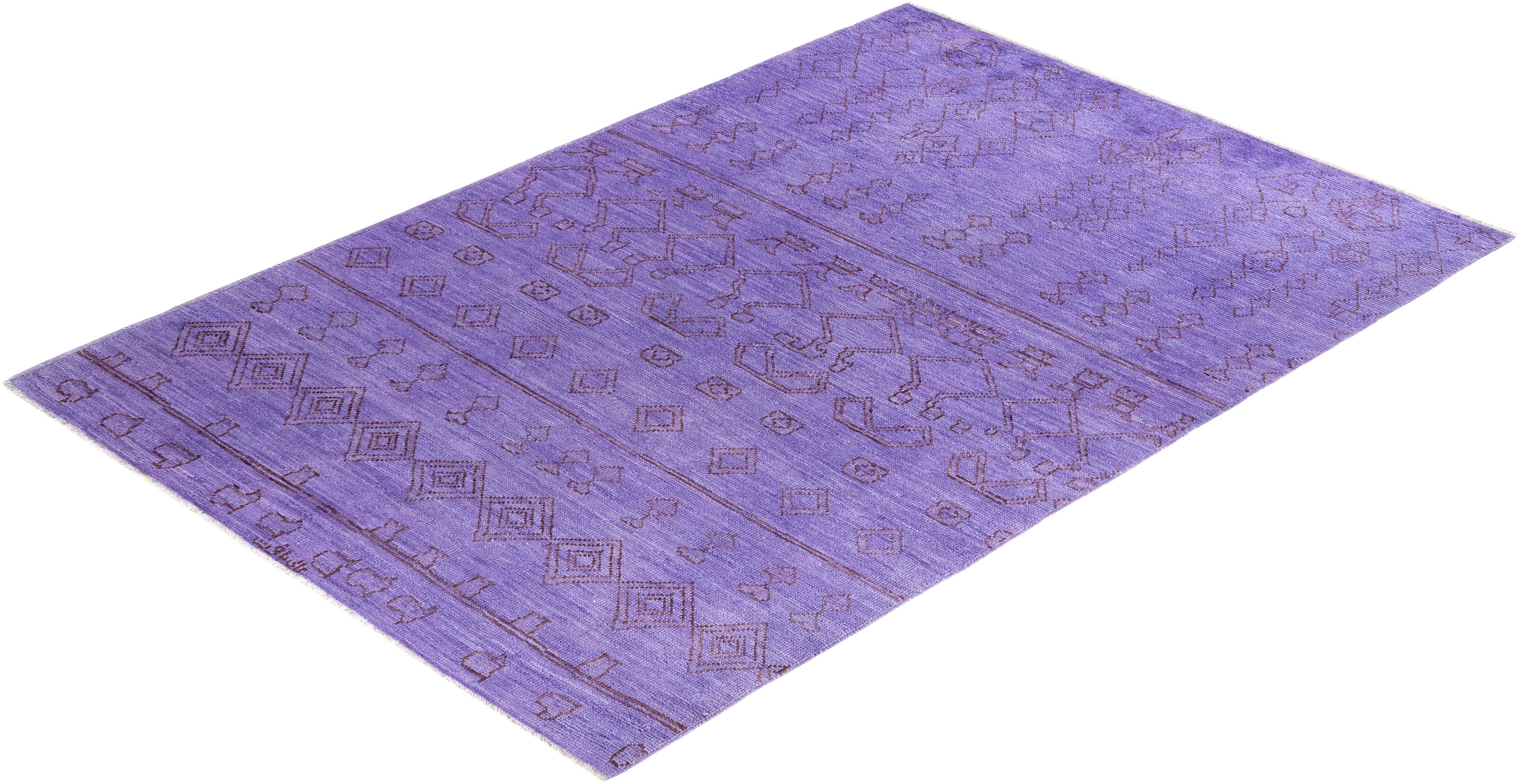Contemporary Hand-Knotted Modern Abstract Purple Area Rug 6' 1" x 8' 10"