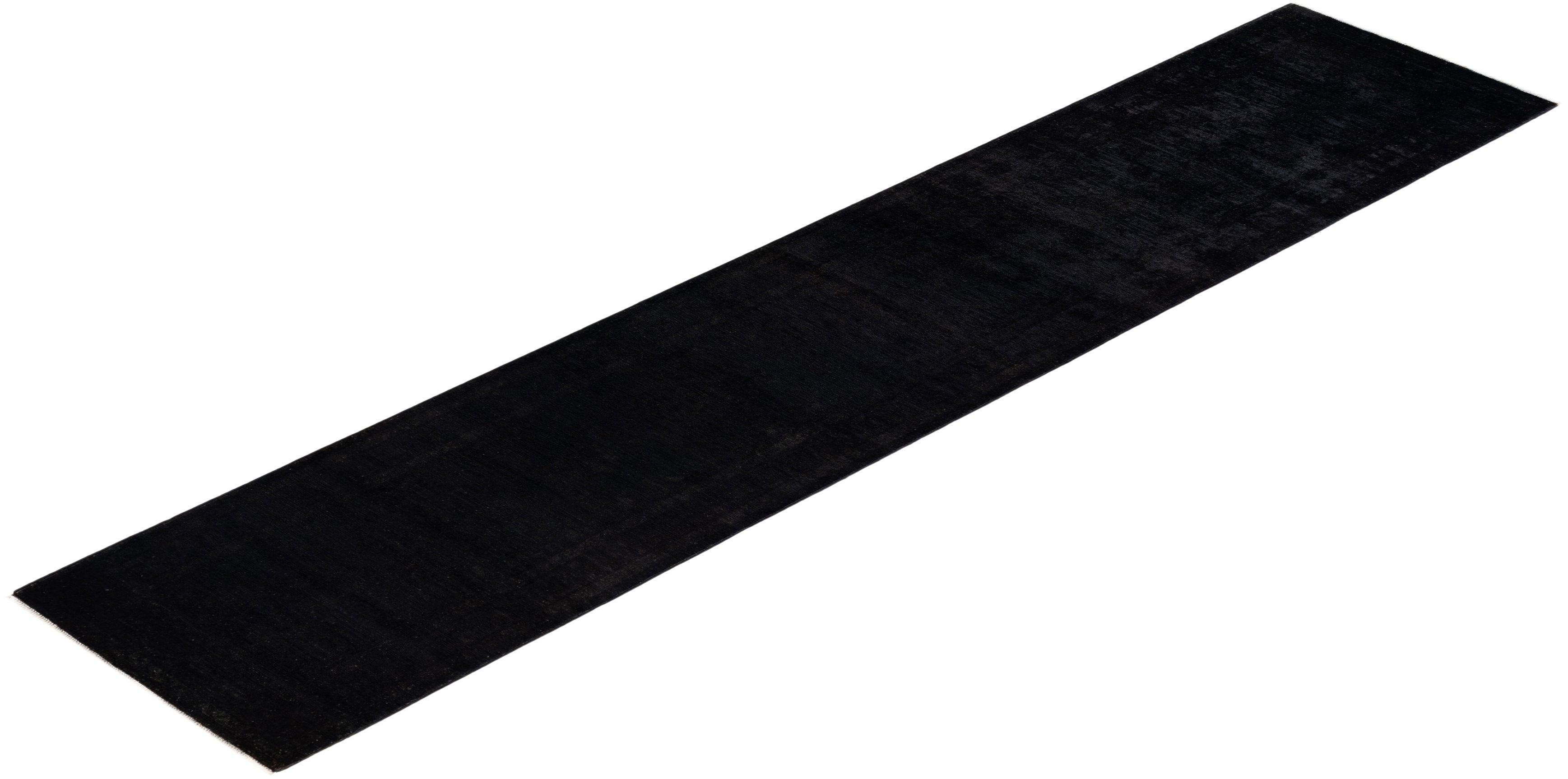 Contemporary Hand-Knotted Black Runner 3' 0" x 14' 4"