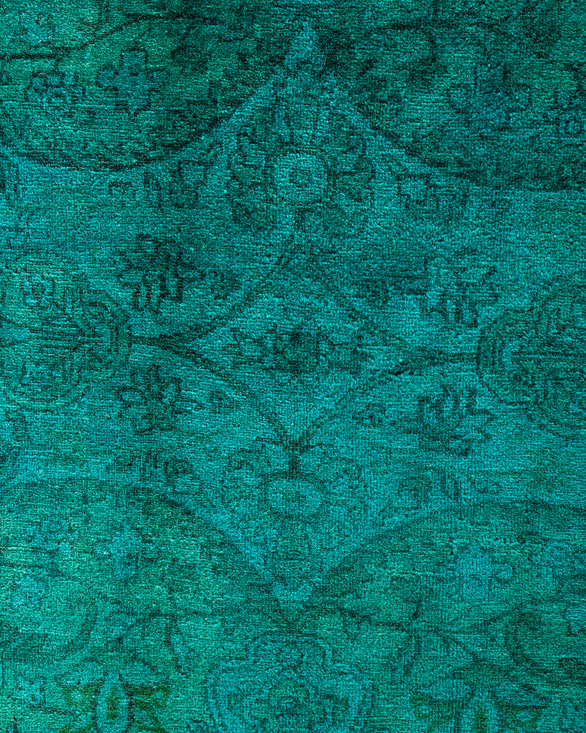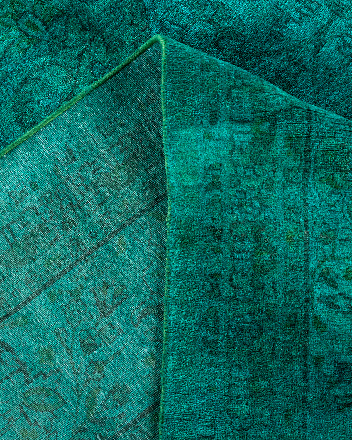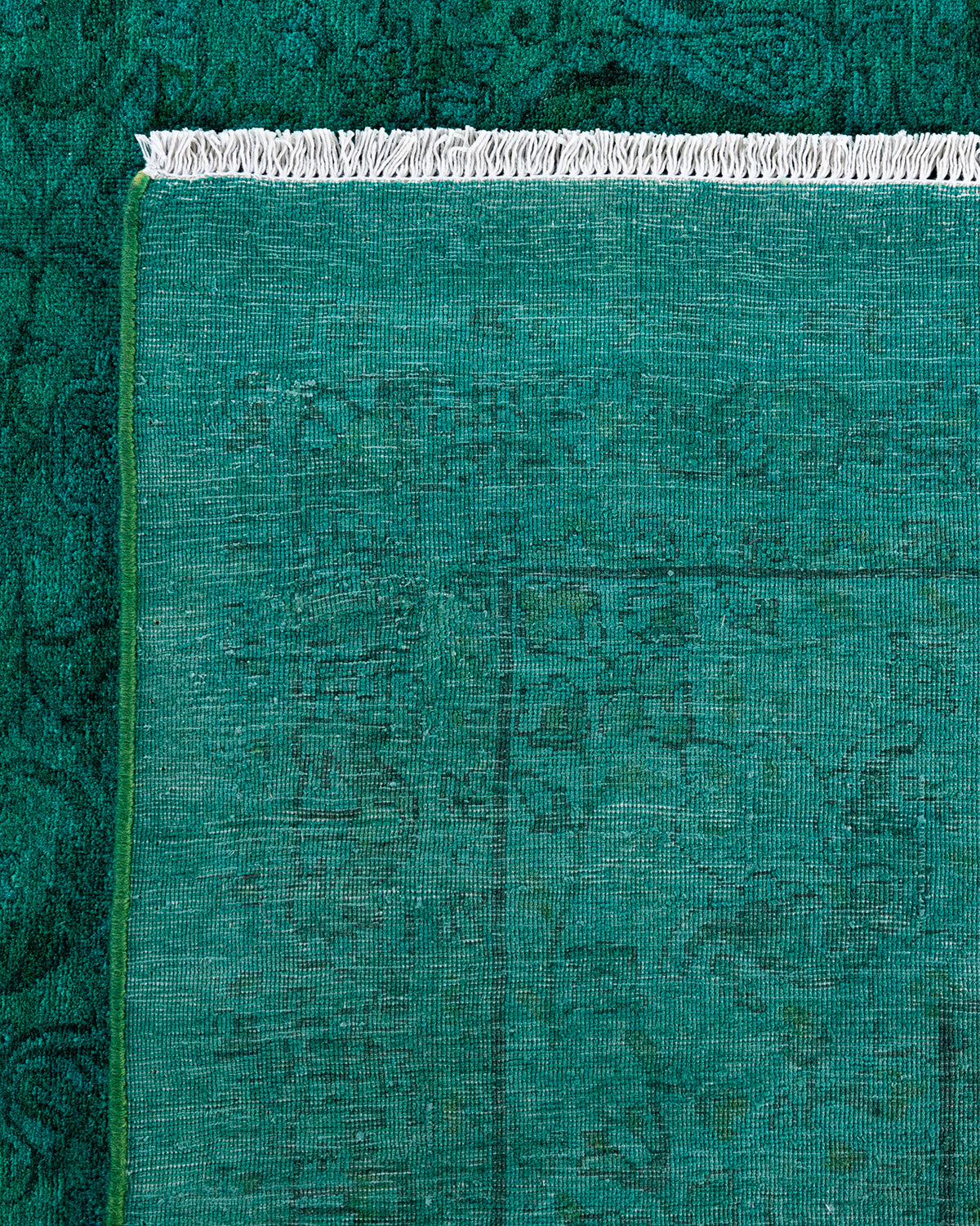 Contemporary Hand-Knotted Overdyed Green Area Rug 8' 2" x 10' 2"