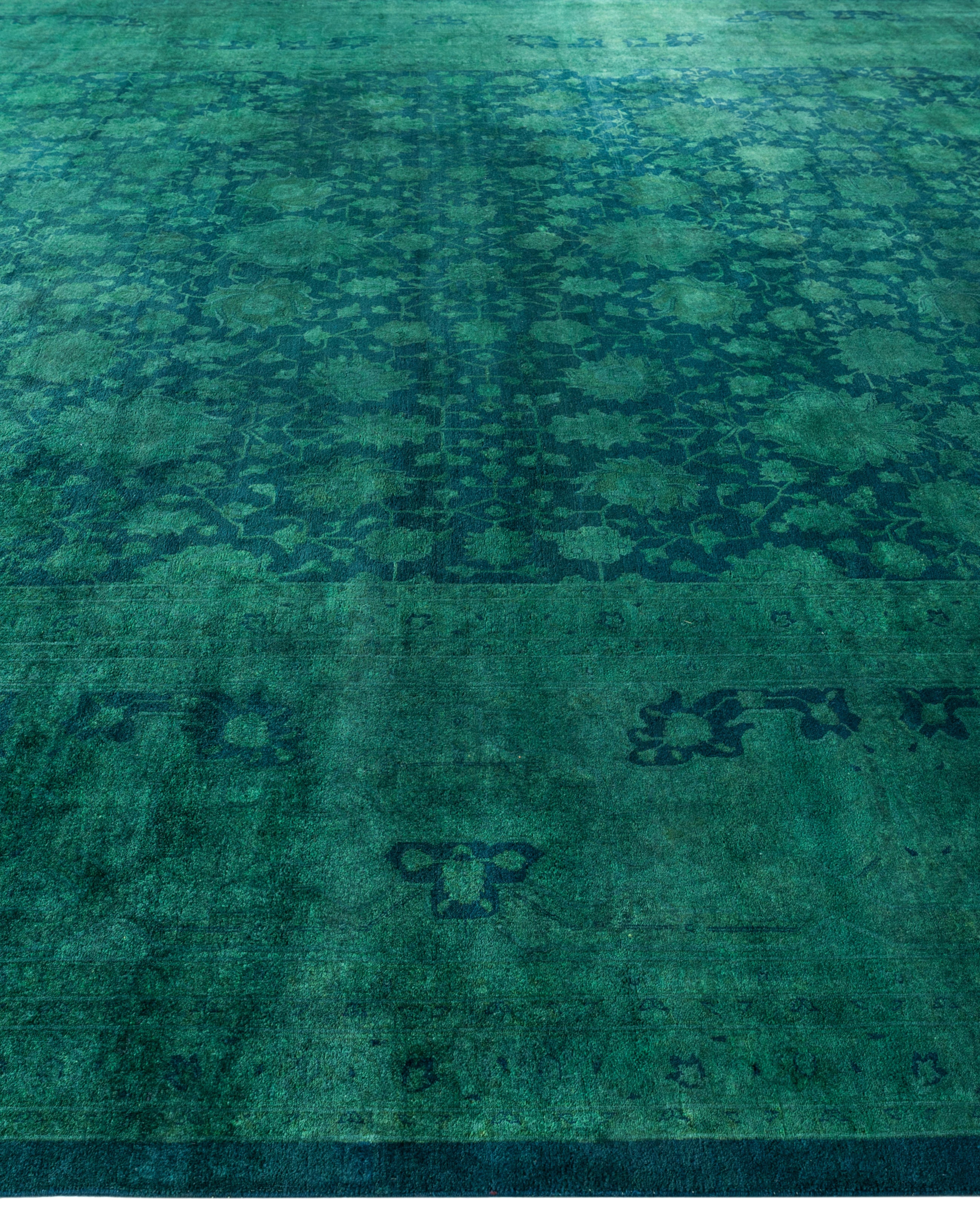 Overdyed One-of-a-Kind Wool Green Area Rug 12' 0" x 17' 6"