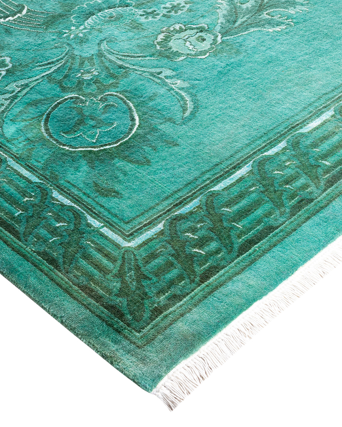 Contemporary Hand-Knotted Overdyed Blue Area Rug 8' 3" x 11' 5"