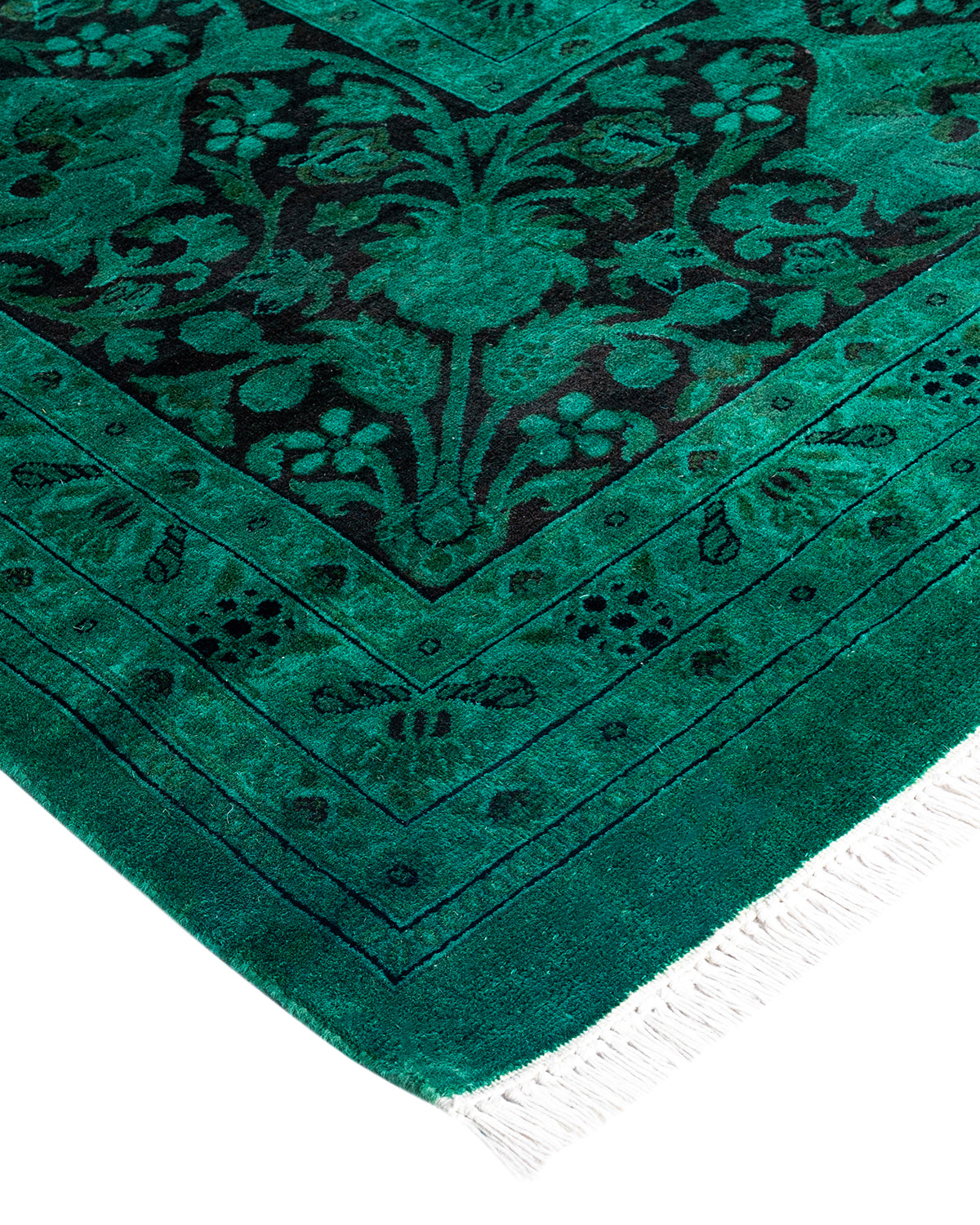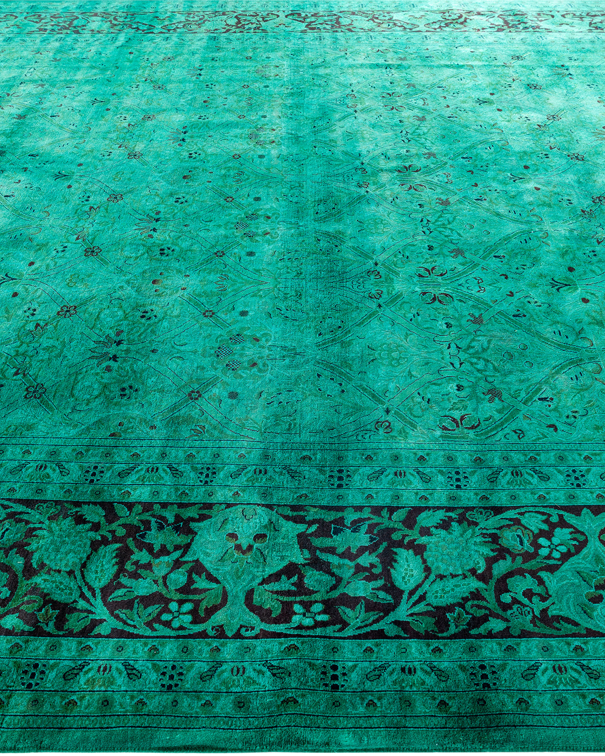 Contemporary Hand-Knotted Overdyed Green Area Rug 10' 1" x 13' 6"
