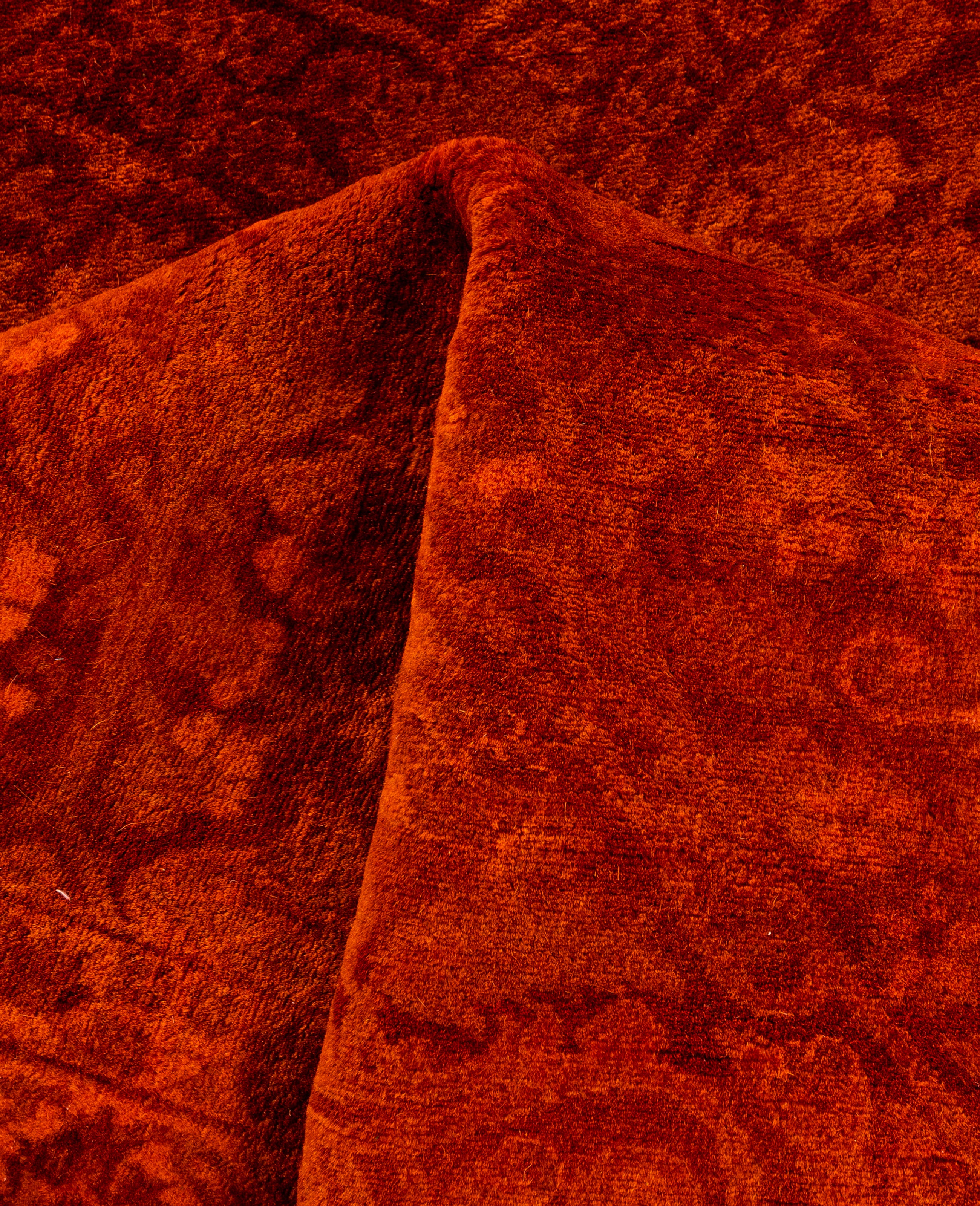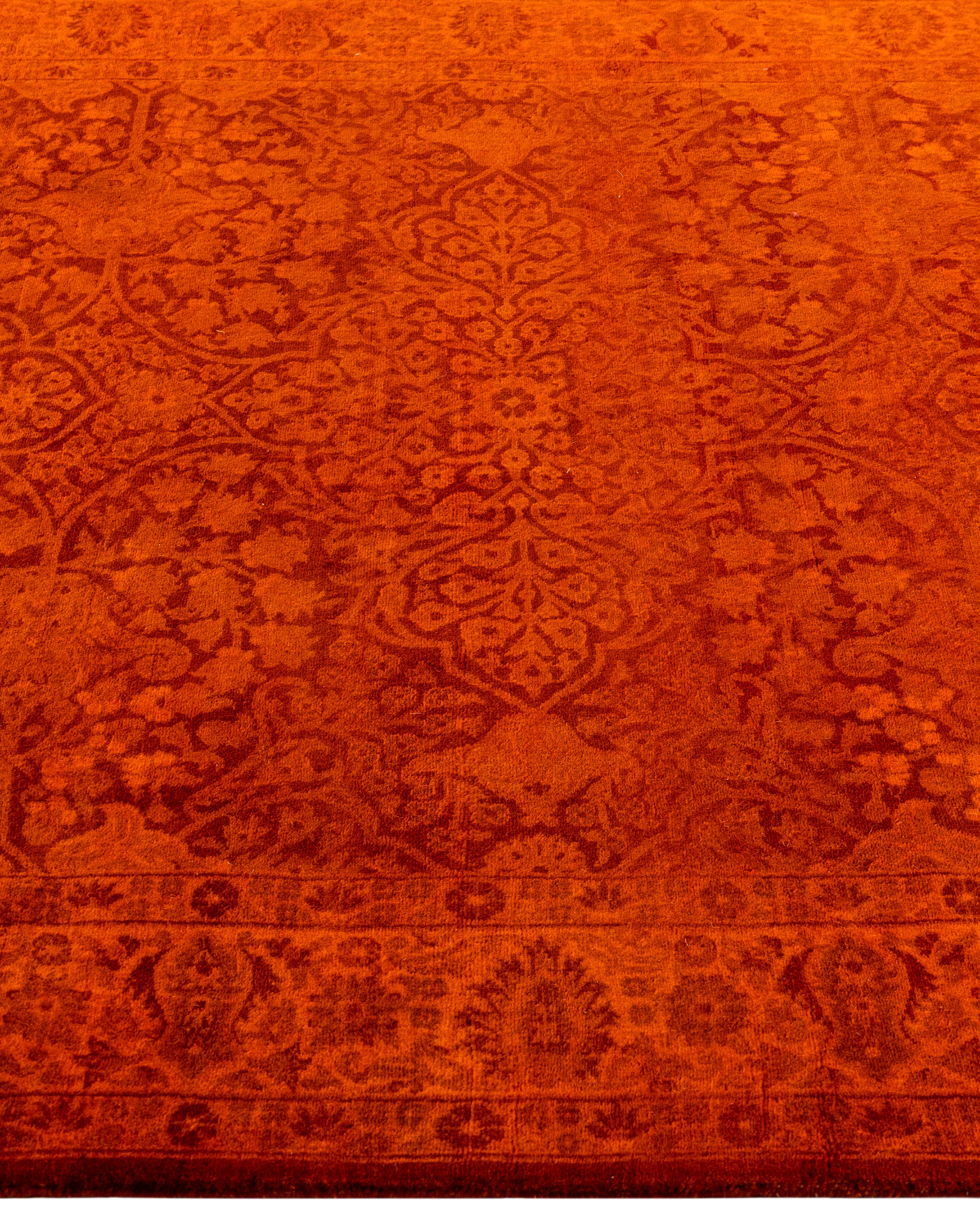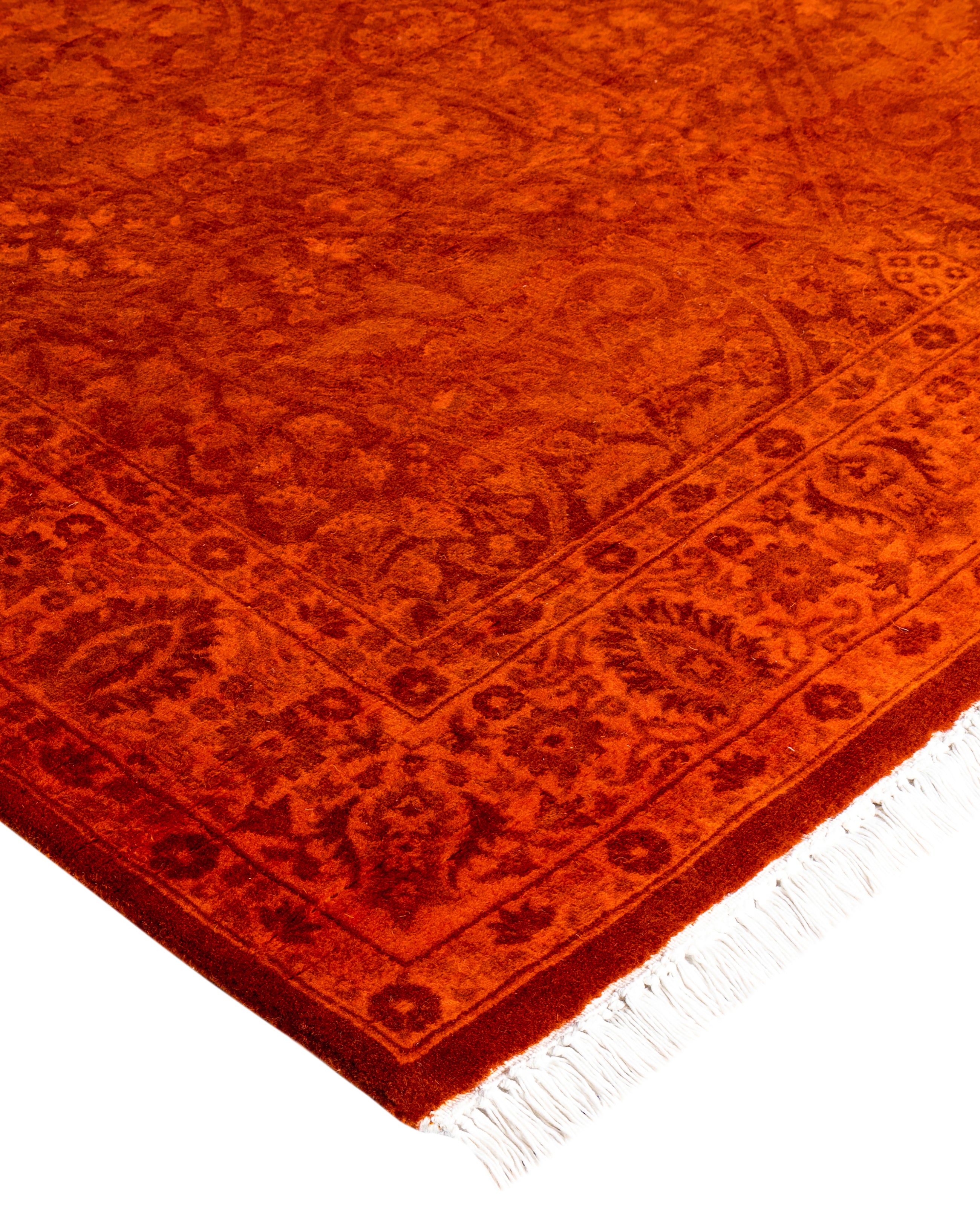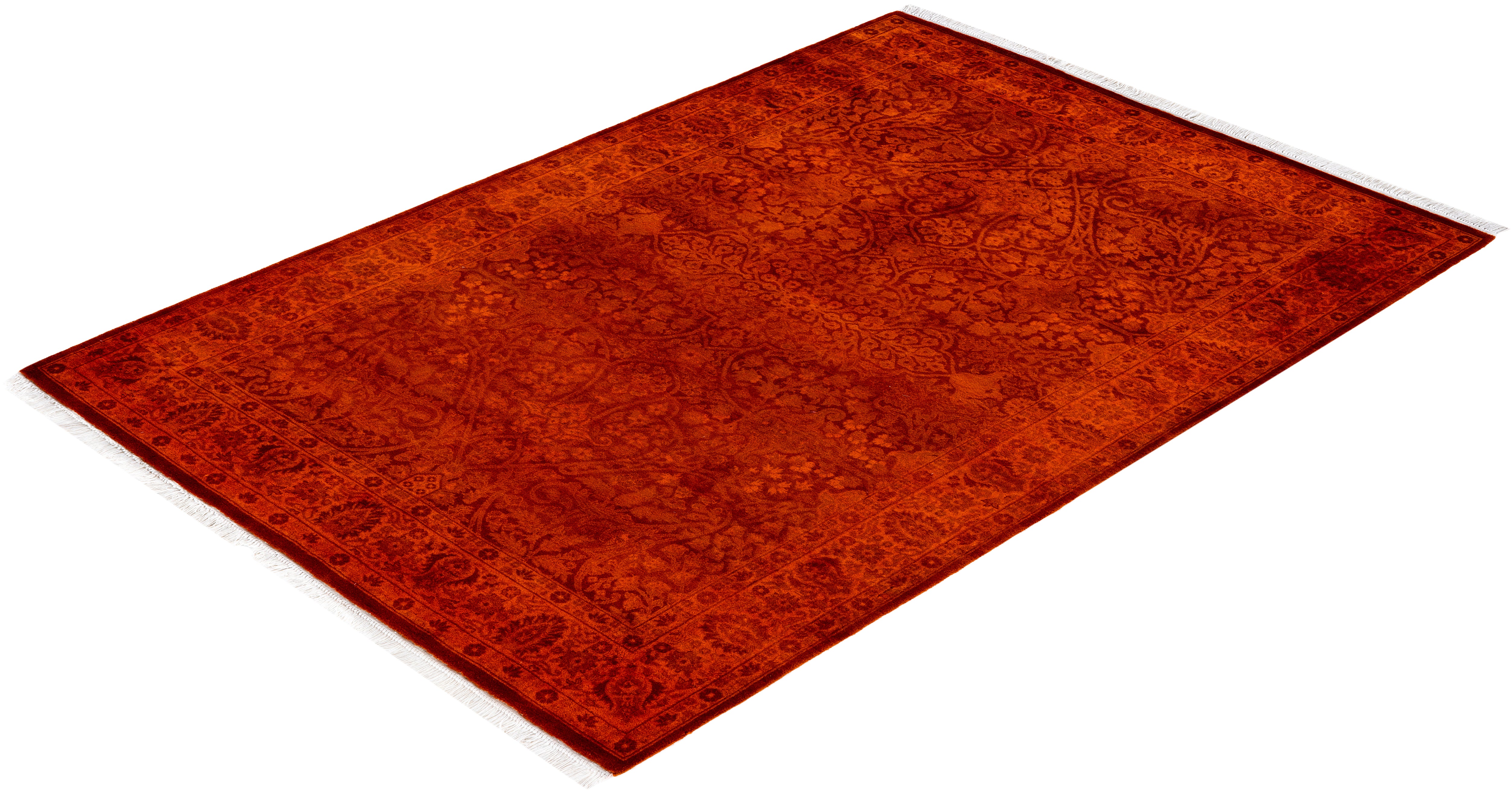Contemporary Overdyed Wool Hand Knotted Orange Area Rug 4' 2" x 6' 0"