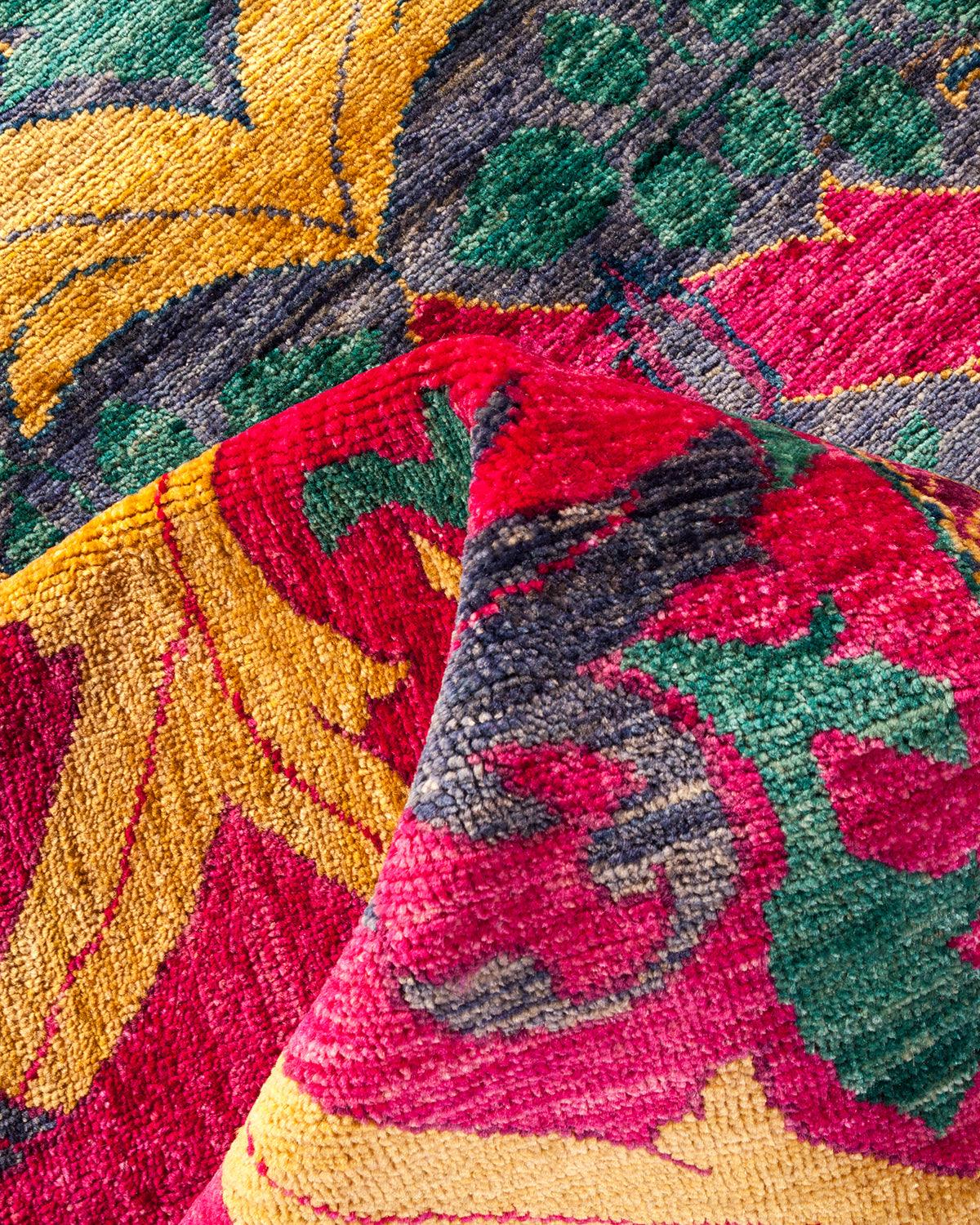 With simple, bold, yet informal designs and a broad palette of colors that ranges from earthy hues to brilliant gems, the rugs in the Arts & Crafts collection infuse a room with a sense of sophisticated rebellion. Nature-inspired motifs are the focal point in lieu of more traditional motifs. Skillfully made with sumptuous wool piles, these rugs bring a harmonious freedom and charming irreverence to any space.