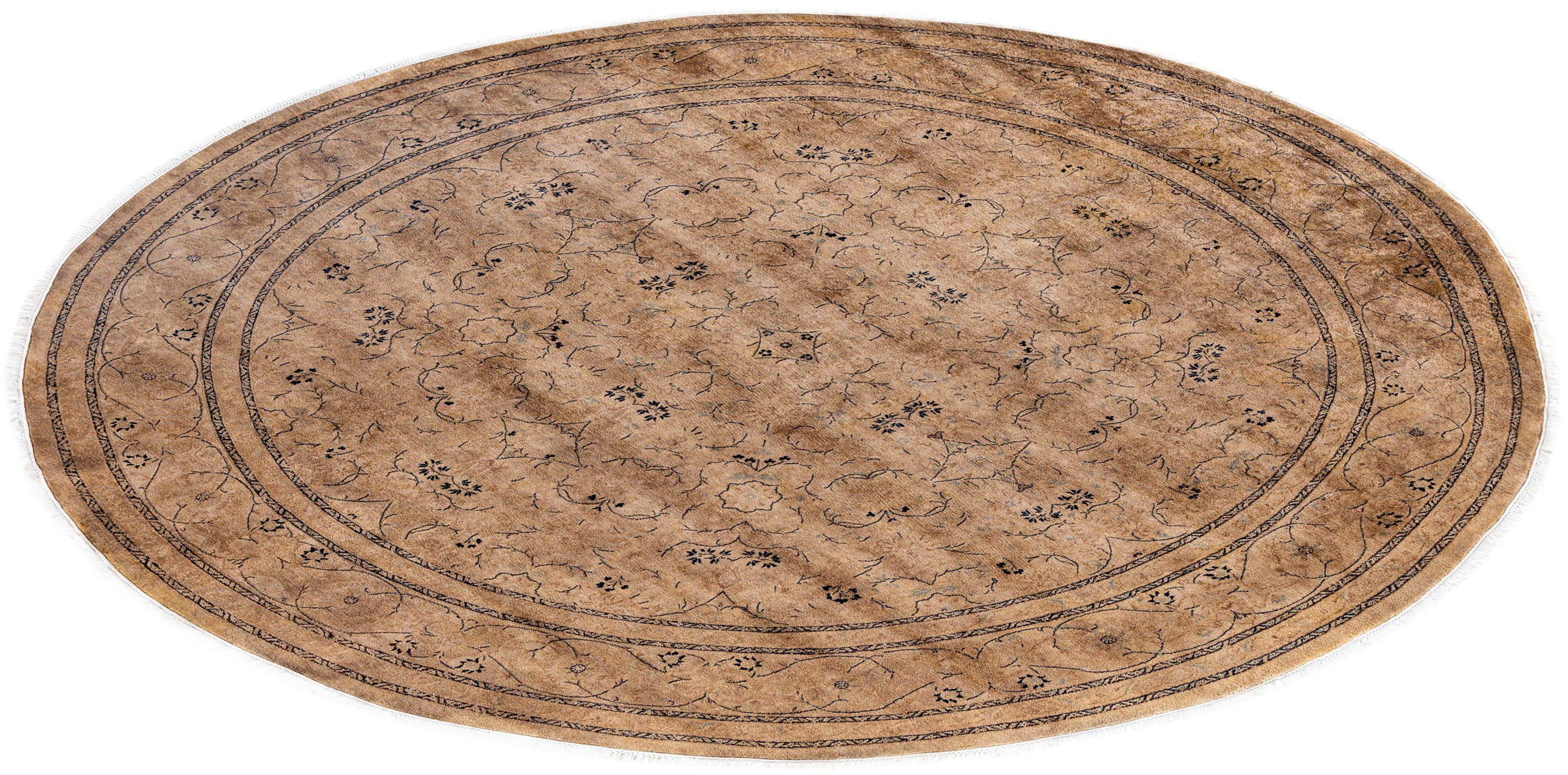 Overdyed One-of-a-Kind Wool Beige Round Area Rug 8' 1" x 8' 1"