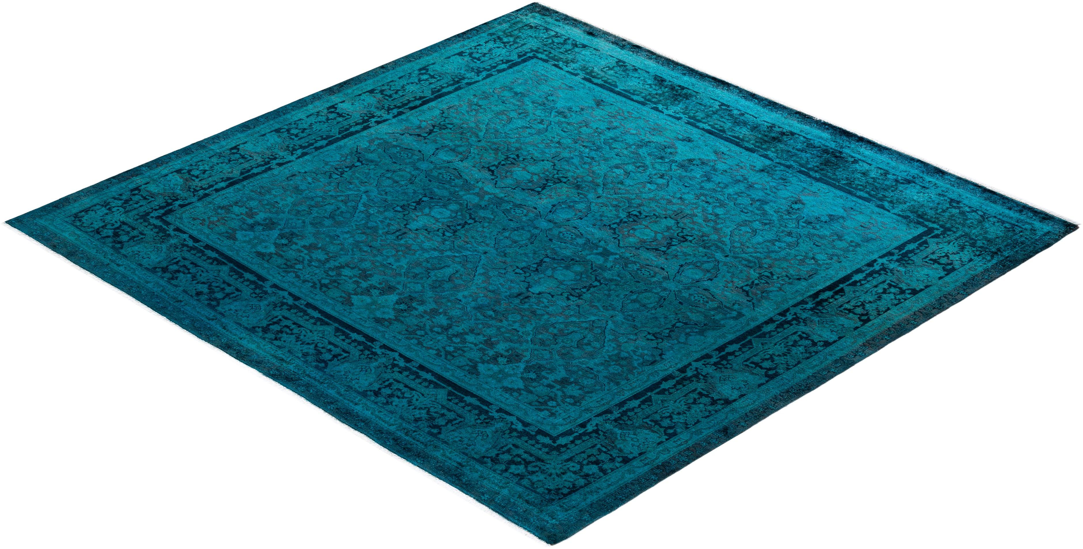 Contemporary Hand-Knotted Blue Square Area Rug 6' 1" x 6' 2"