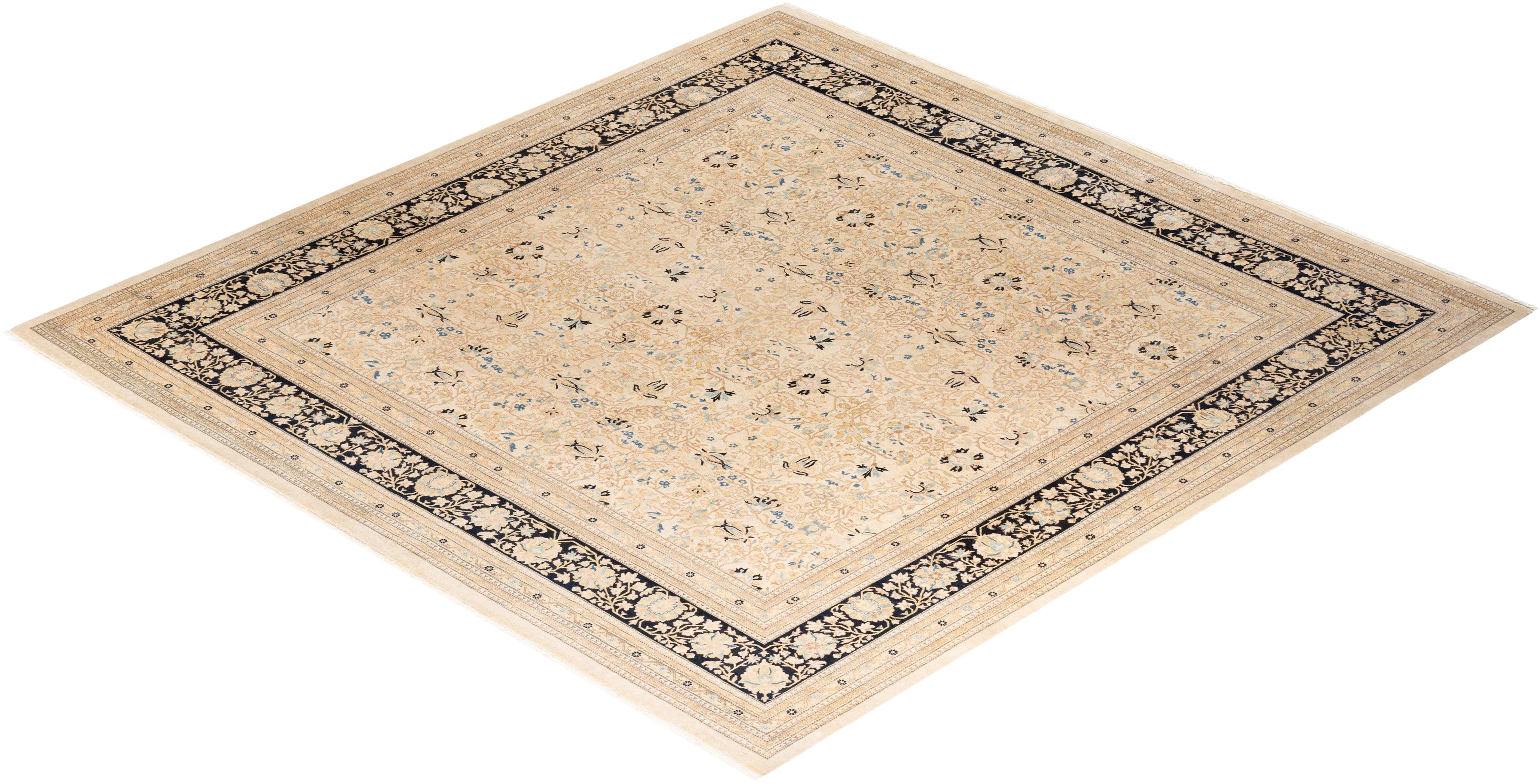 Traditional Hand Knotted Mogul Oriental Ivory Square Area Rug 9' 2" x 9' 6"