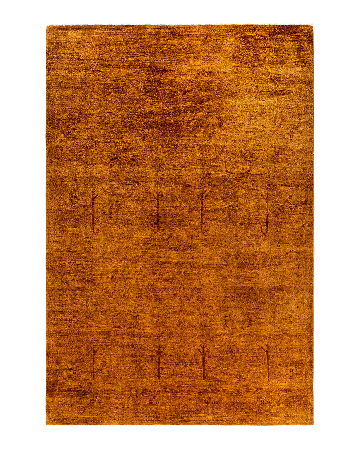 Contemporary Hand-Knotted Overdyed Gold Area Rug 6' 0" x 8' 8"