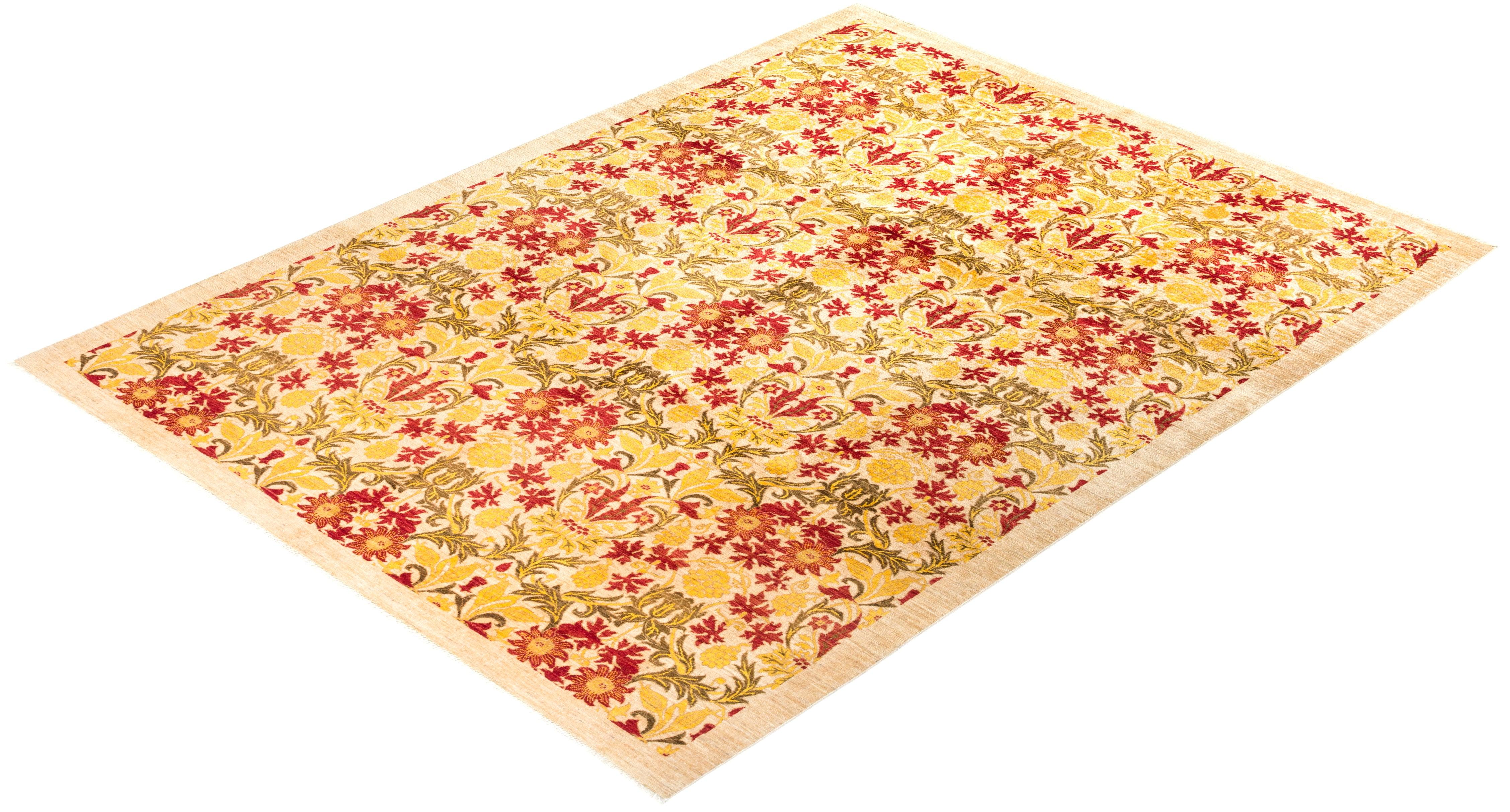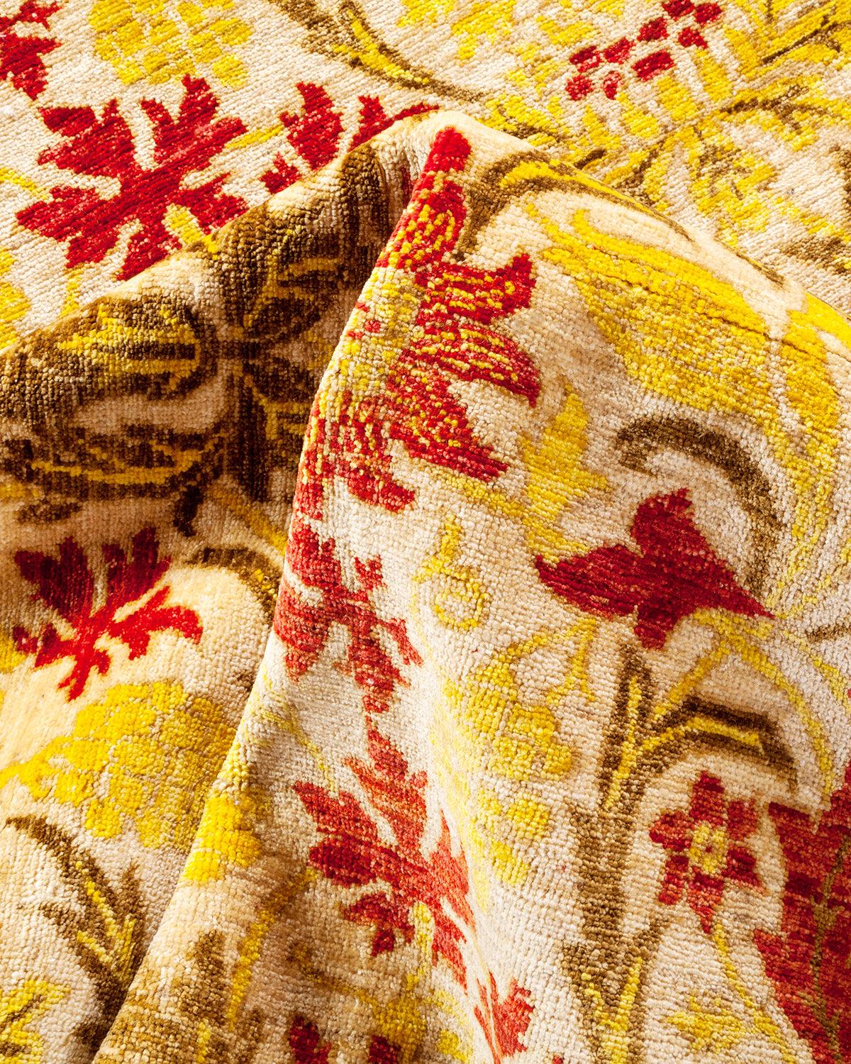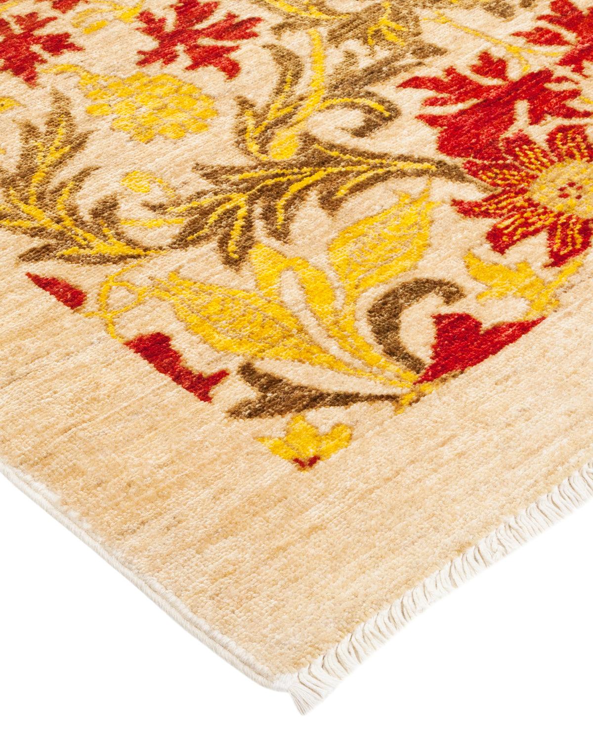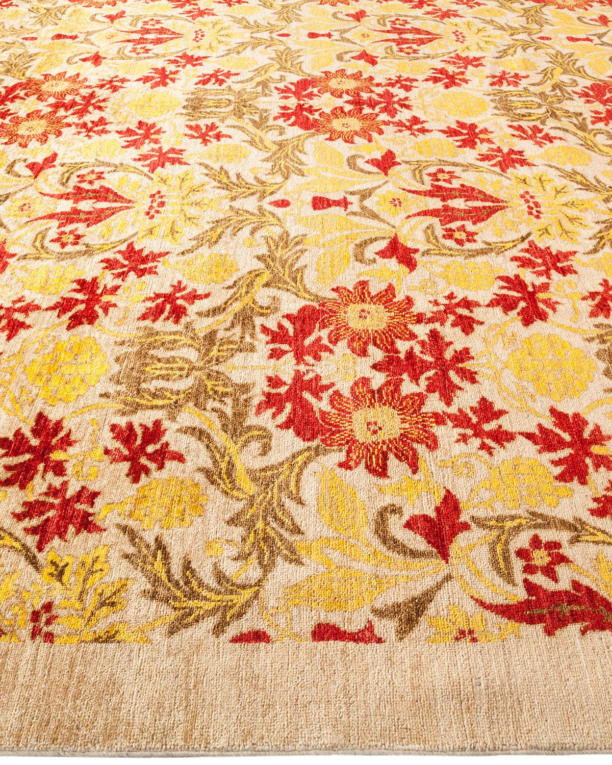 Contemporary Hand Knotted Arts & Crafts Floral Ivory Area Rug 8' 10" x 11' 7"