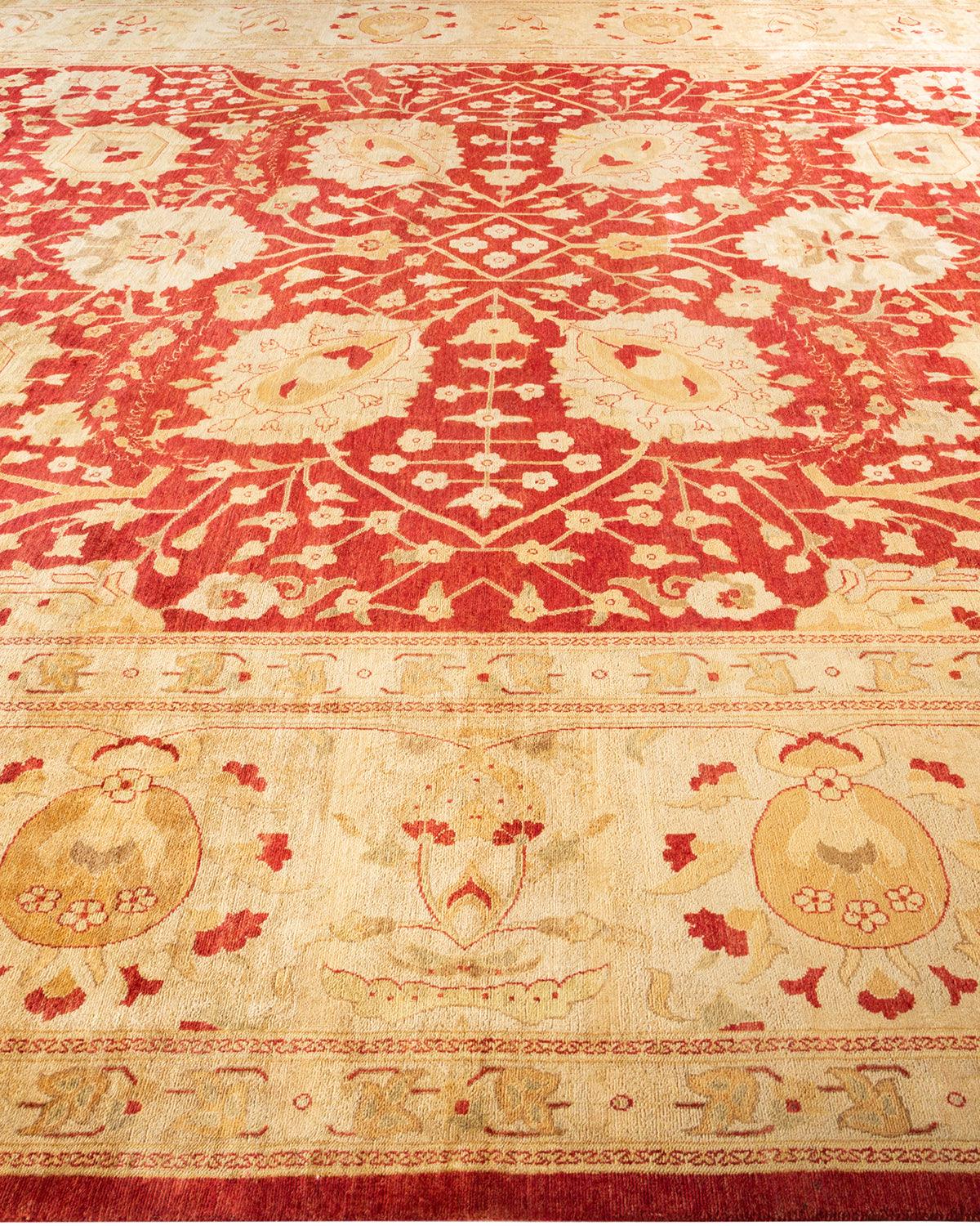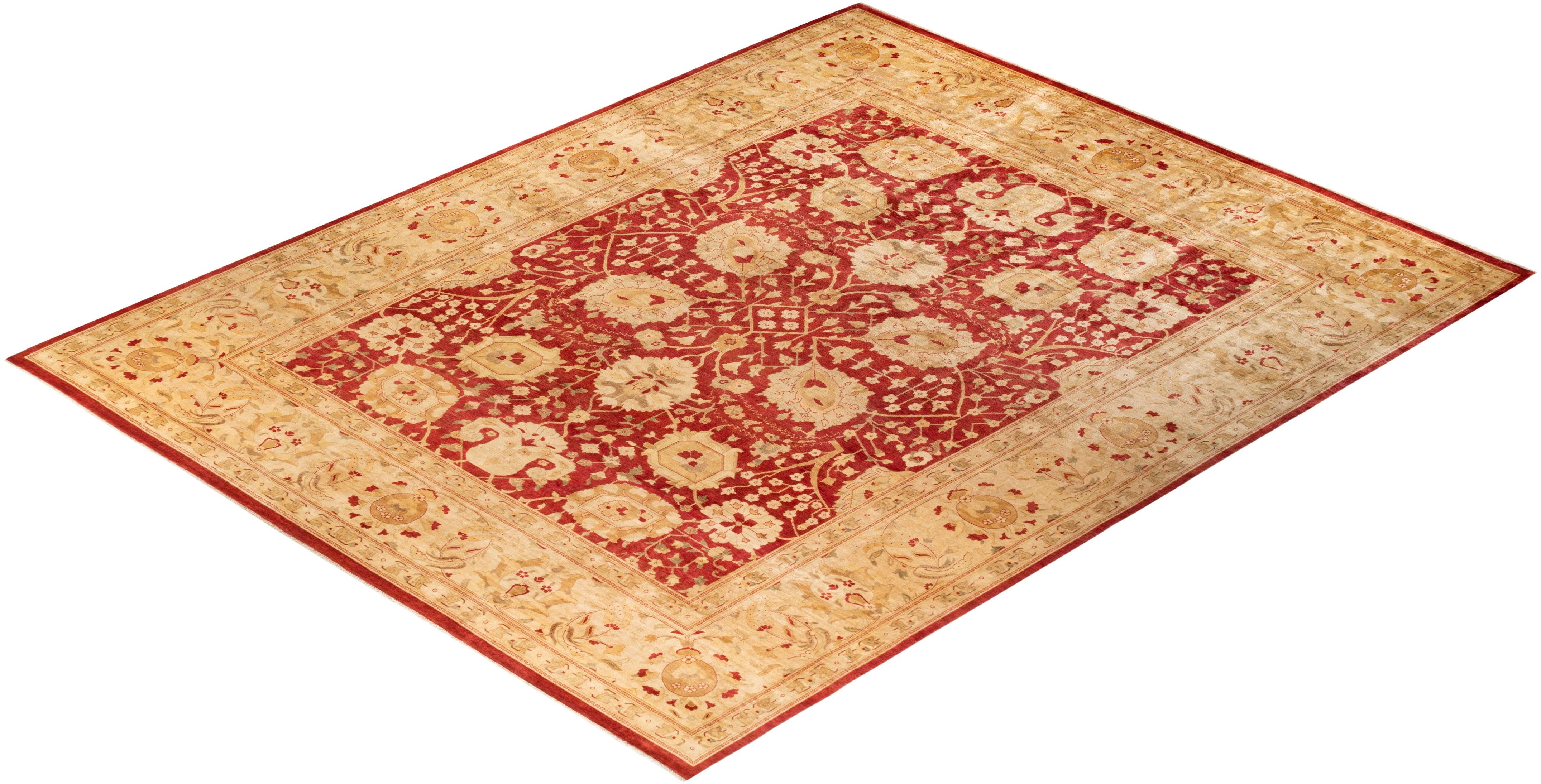 Contemporary Hand Knotted Eclectic Floral Red Area Rug 11' 10" x 15' 2"