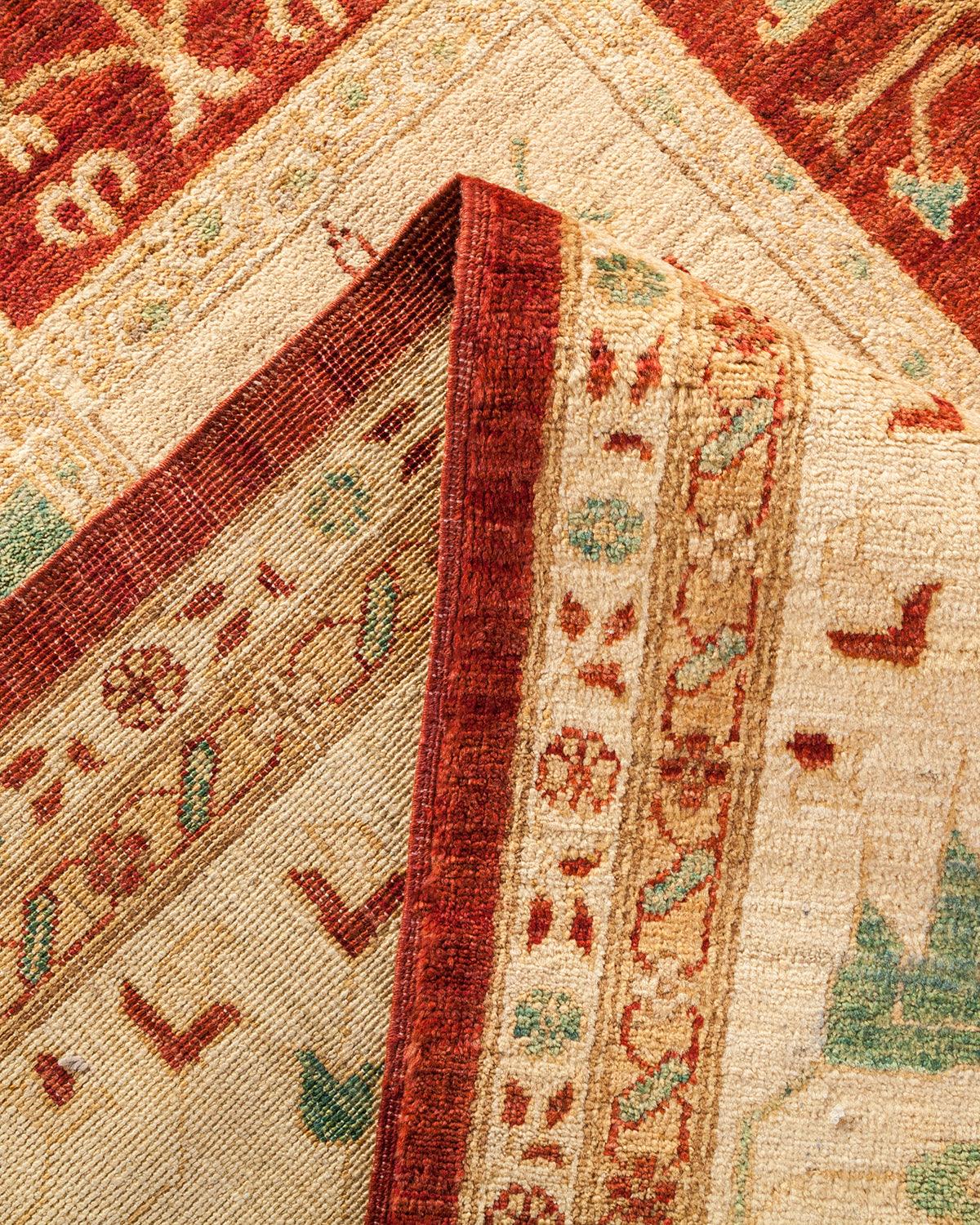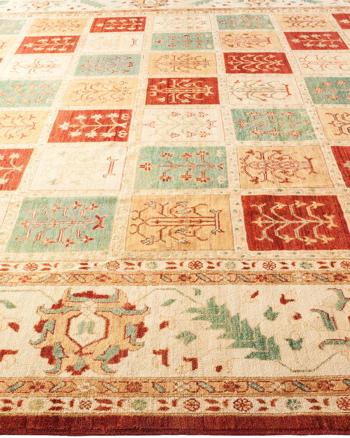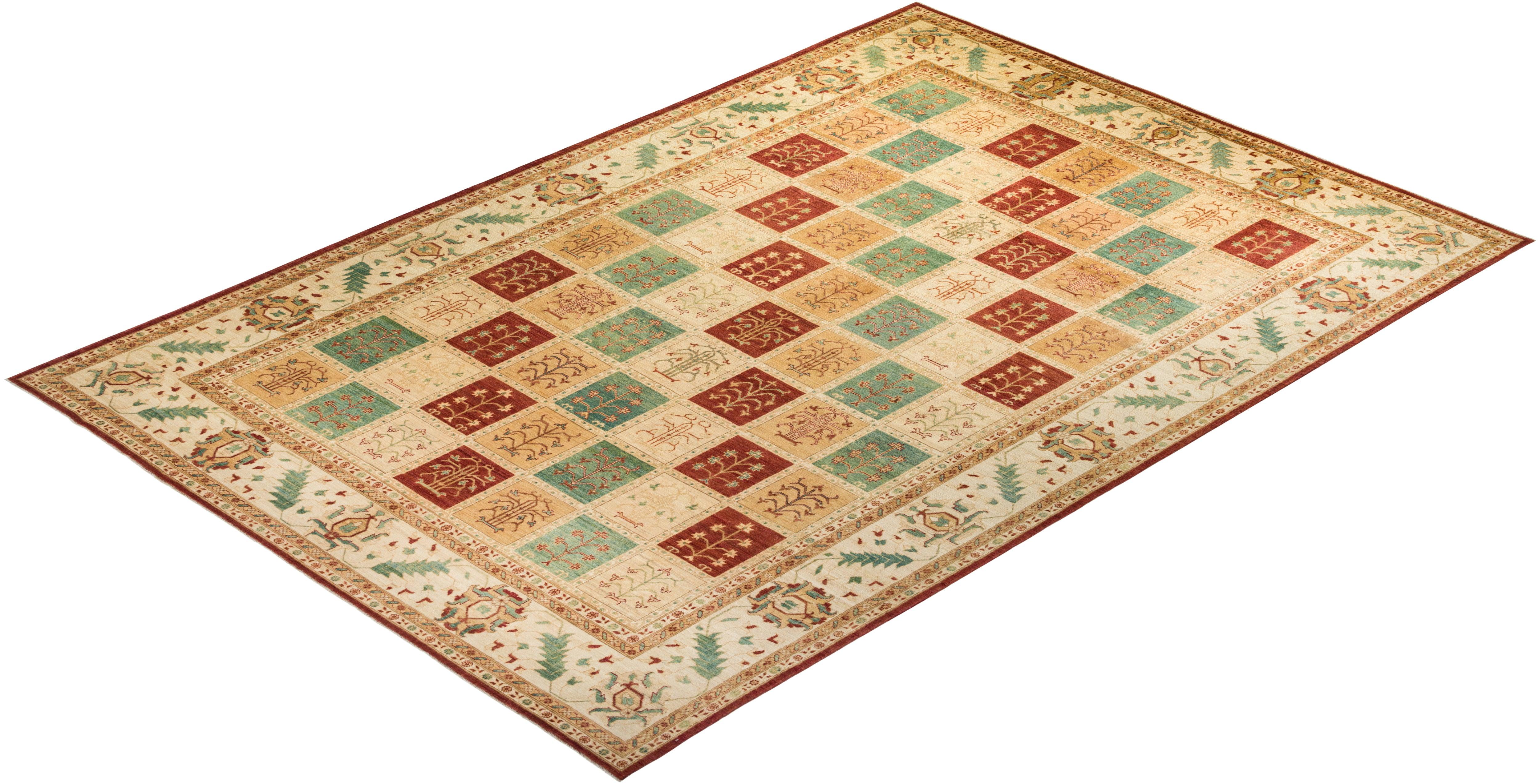 Contemporary Hand Knotted Eclectic Floral Red Area Rug 10' 1" x 14' 9"