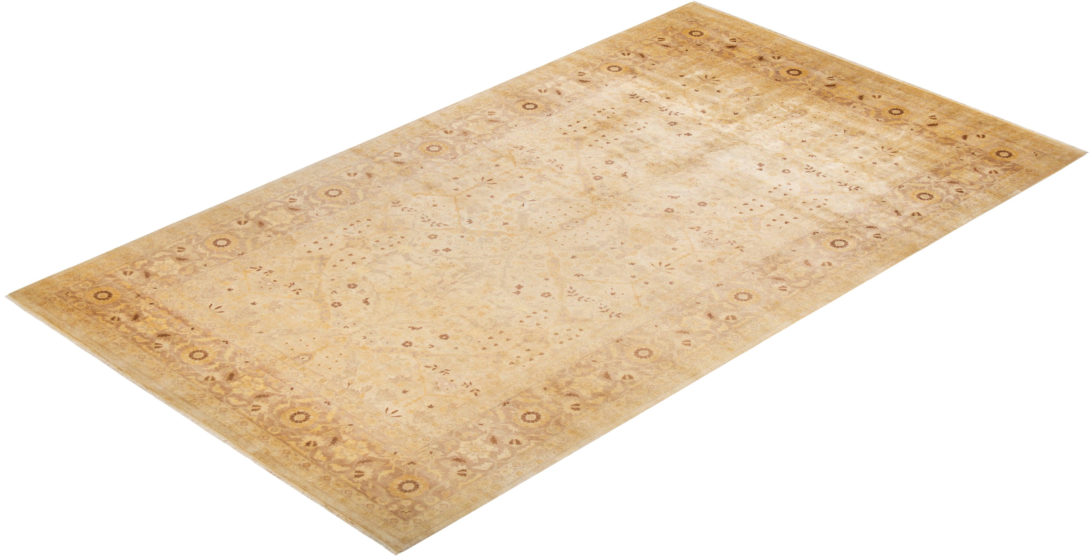 Contemporary Hand Knotted Eclectic Ivory Area Rug 8' 2" x 14' 1"