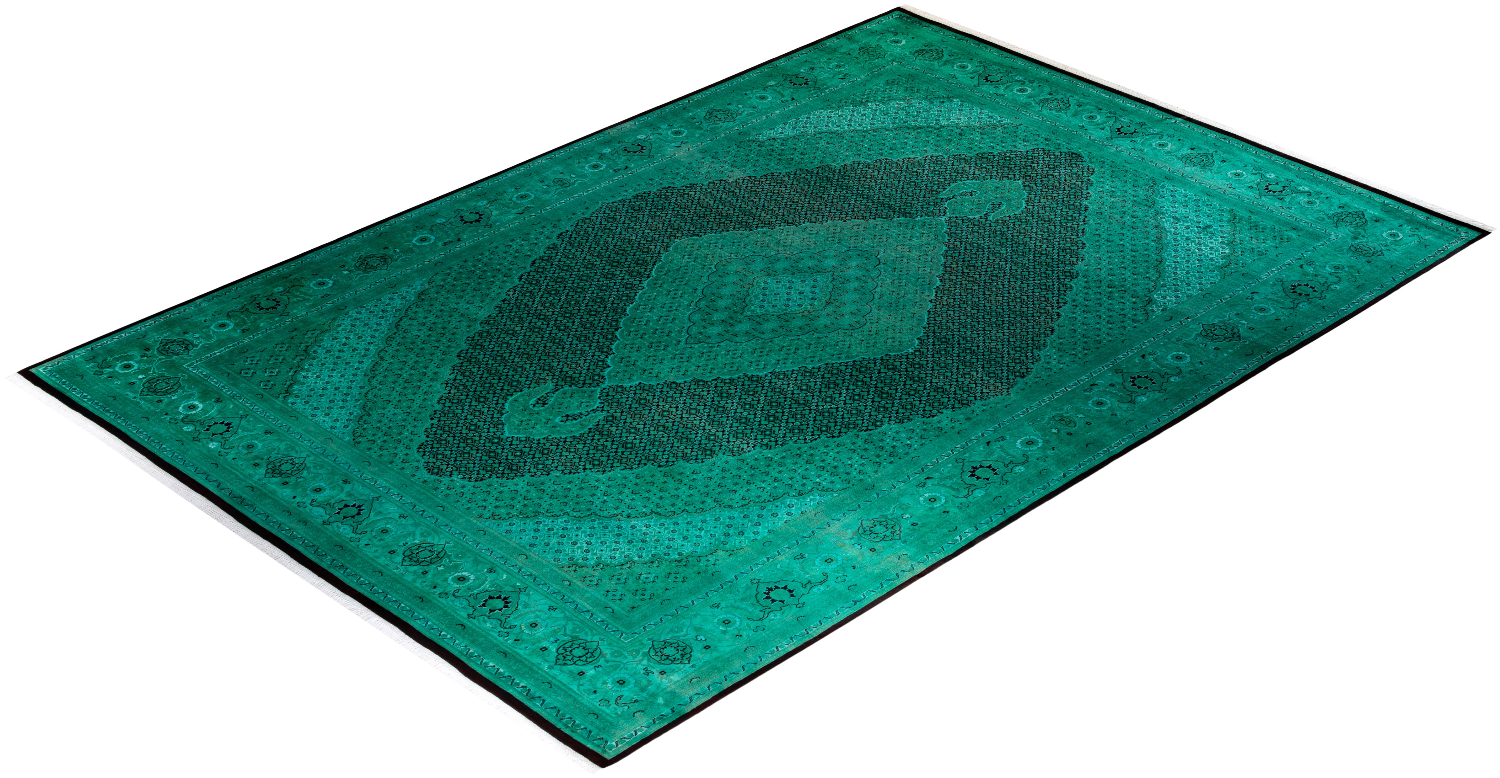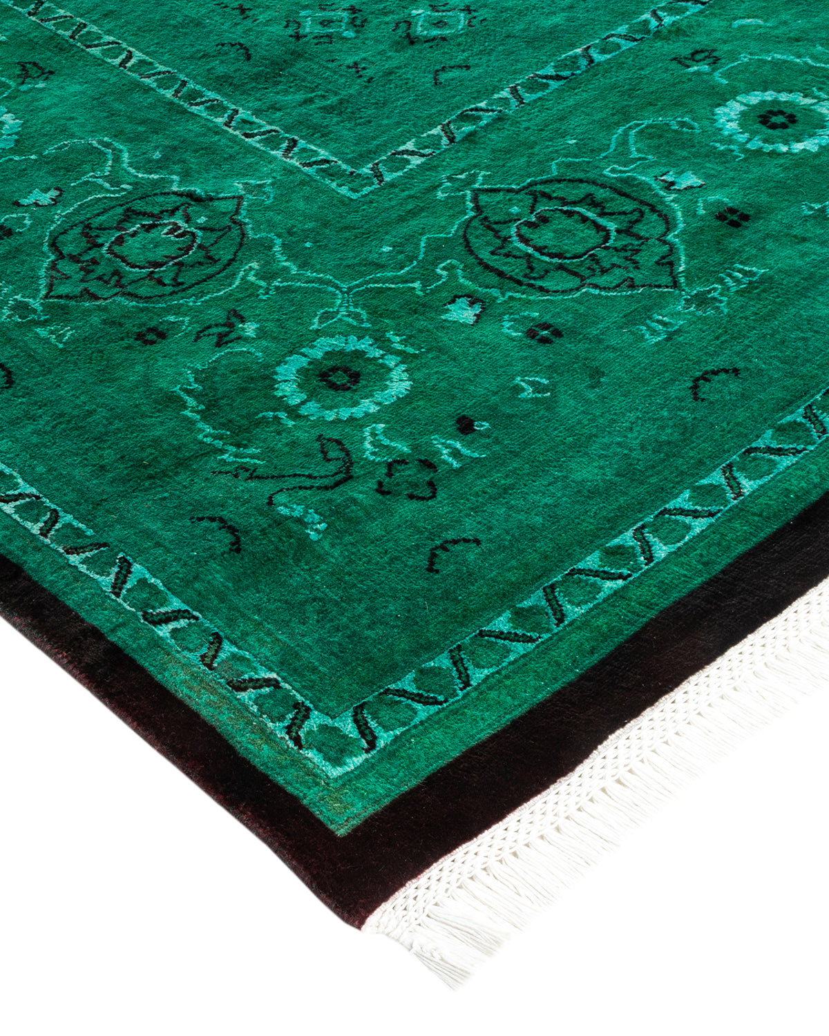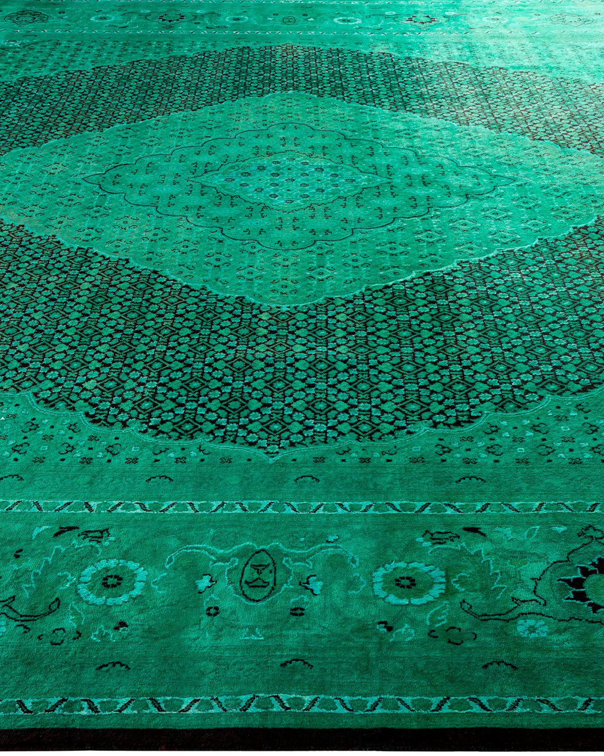 Contemporary Hand Knotted Overdyed Green Area Rug 9' 10" x 14' 8"