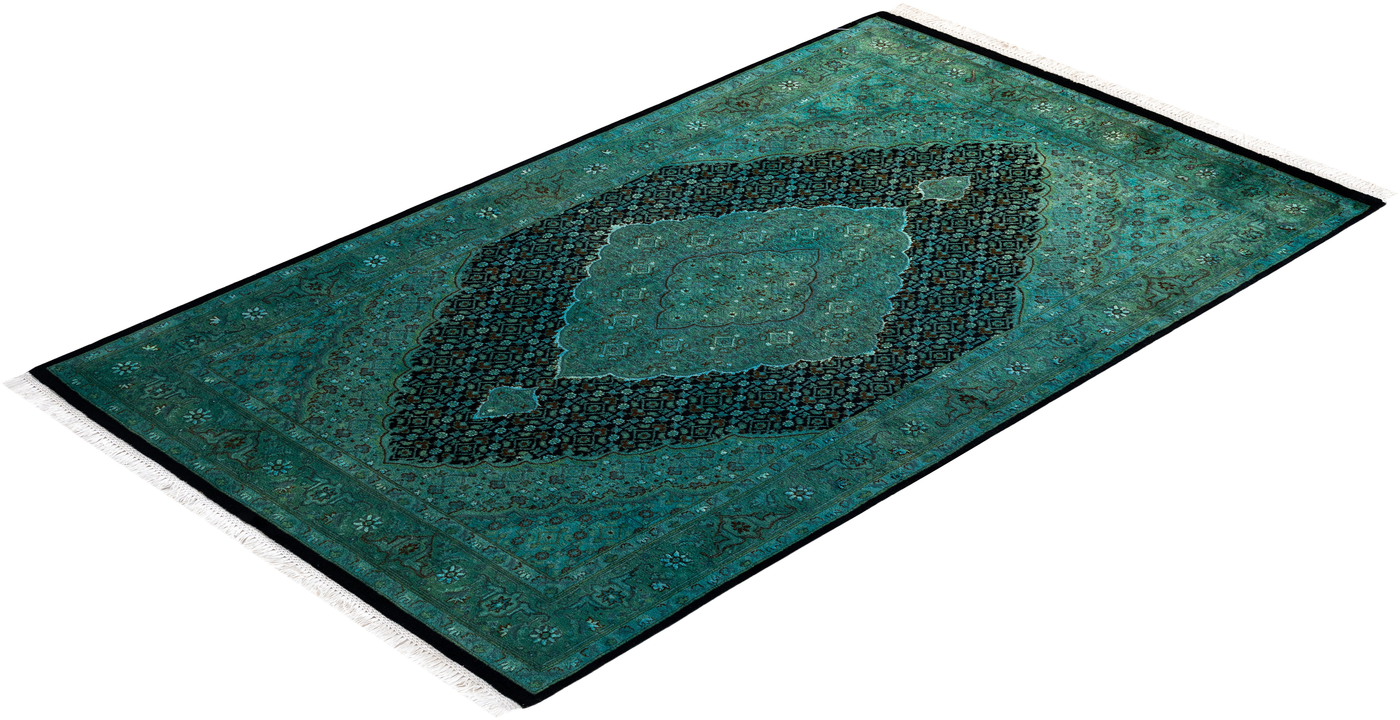 Contemporary Hand-Knotted Overdyed Blue Area Rug 4' 1" x 6' 9"