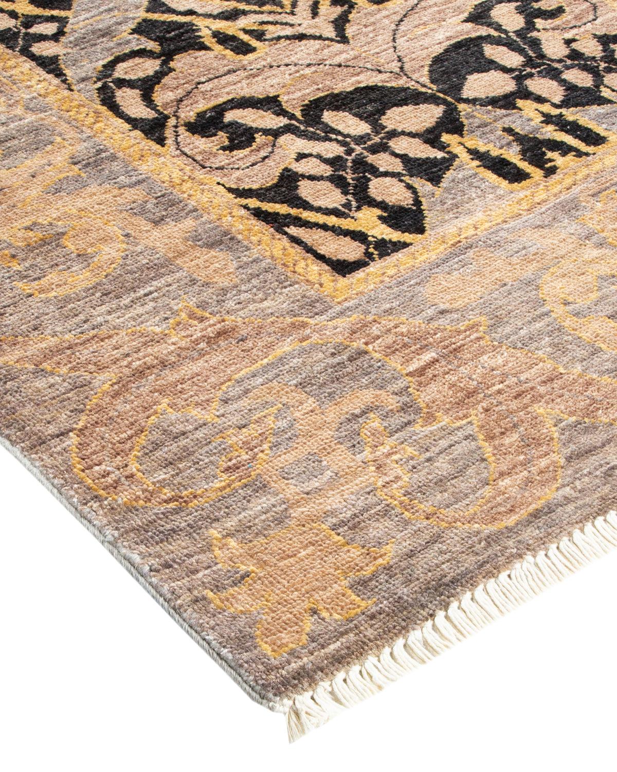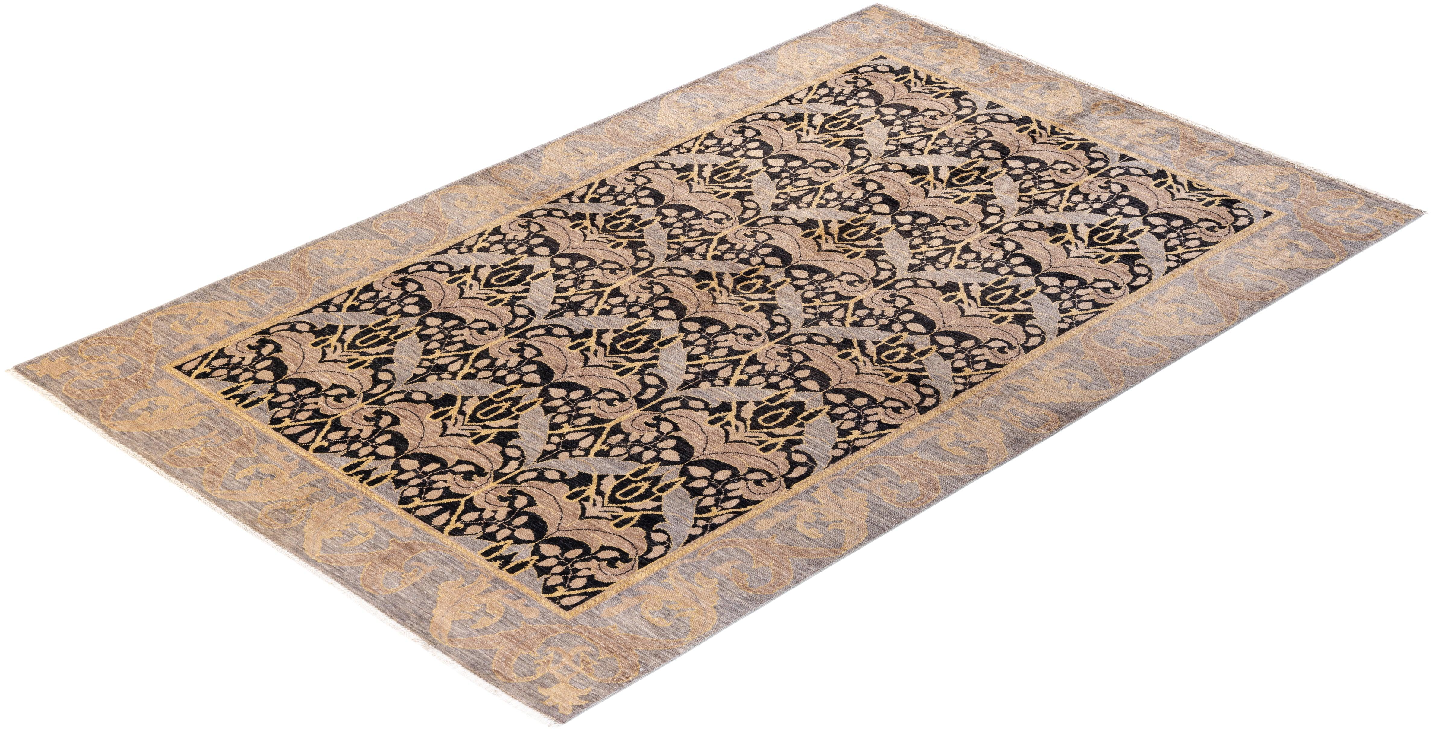 Contemporary Hand Knotted Arts & Crafts Black Area Rug 5' 10" x 9' 3"